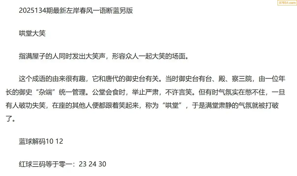 左岸春风另版双色球25年134期一语断蓝