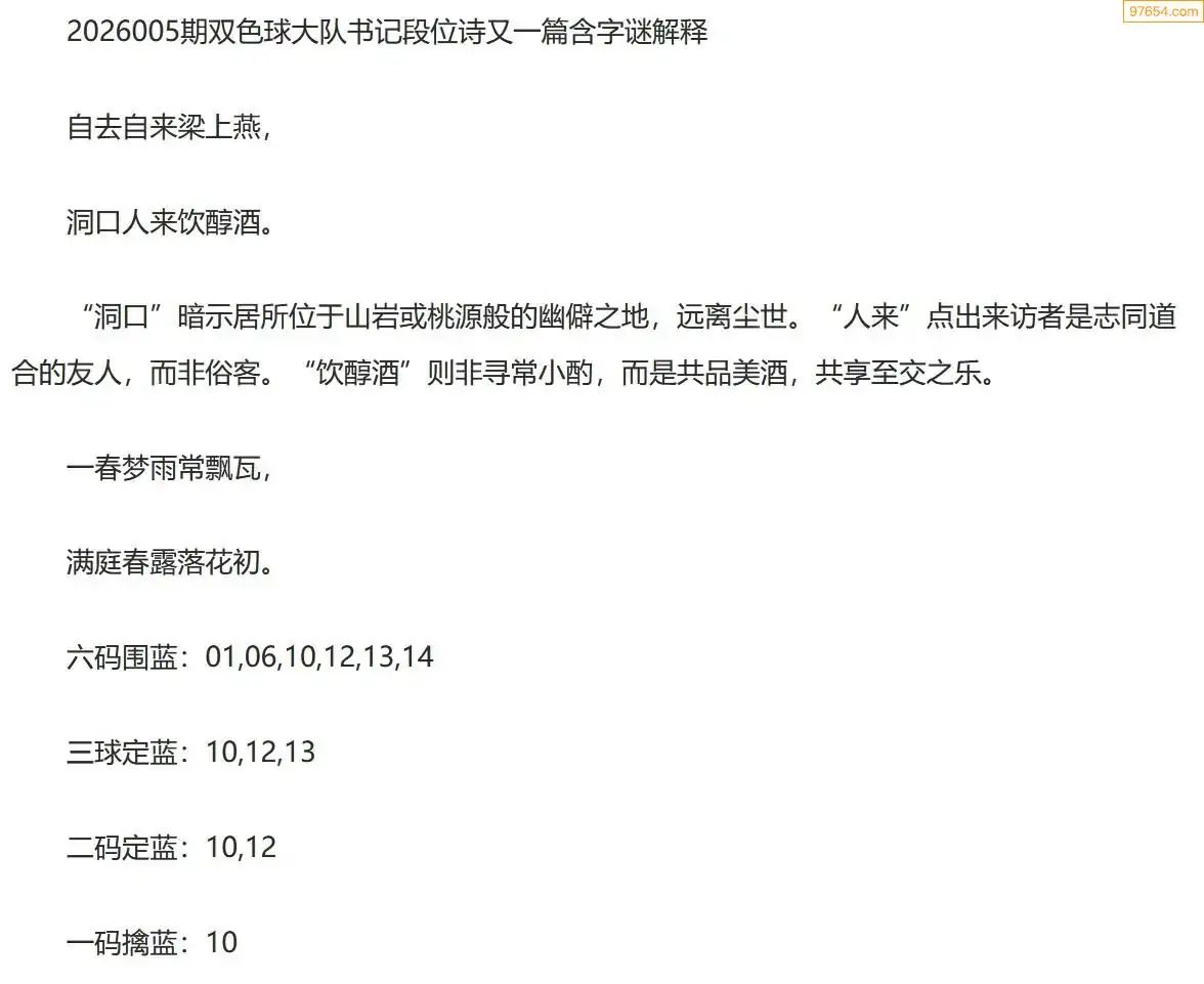 大队书记双色球26年005期段位诗谜