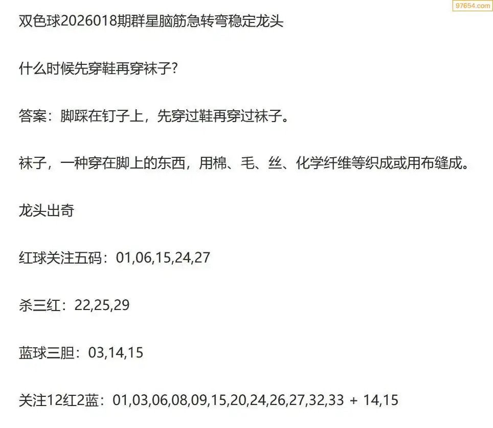群星双色球26年018期脑筋急转弯龙头谜语