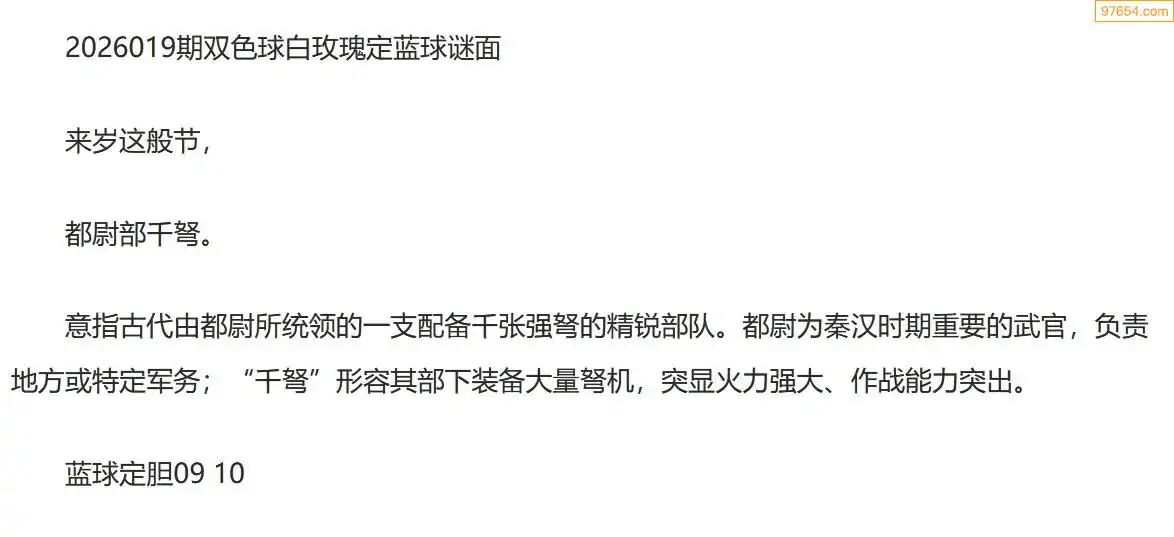 白玫瑰双色球26年019期定蓝球字谜