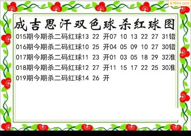 26年双色球019期成吉思汗杀二码红球图迷