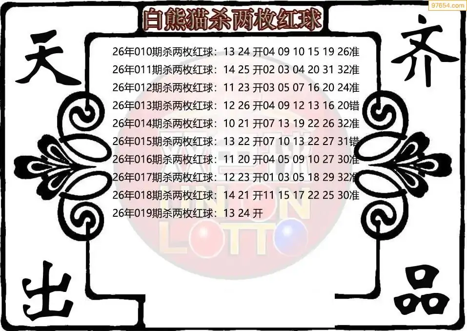 26年双色球019期白熊猫杀两枚红球图谜