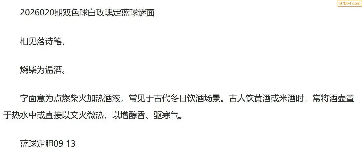白玫瑰双色球26年020期定蓝球字谜