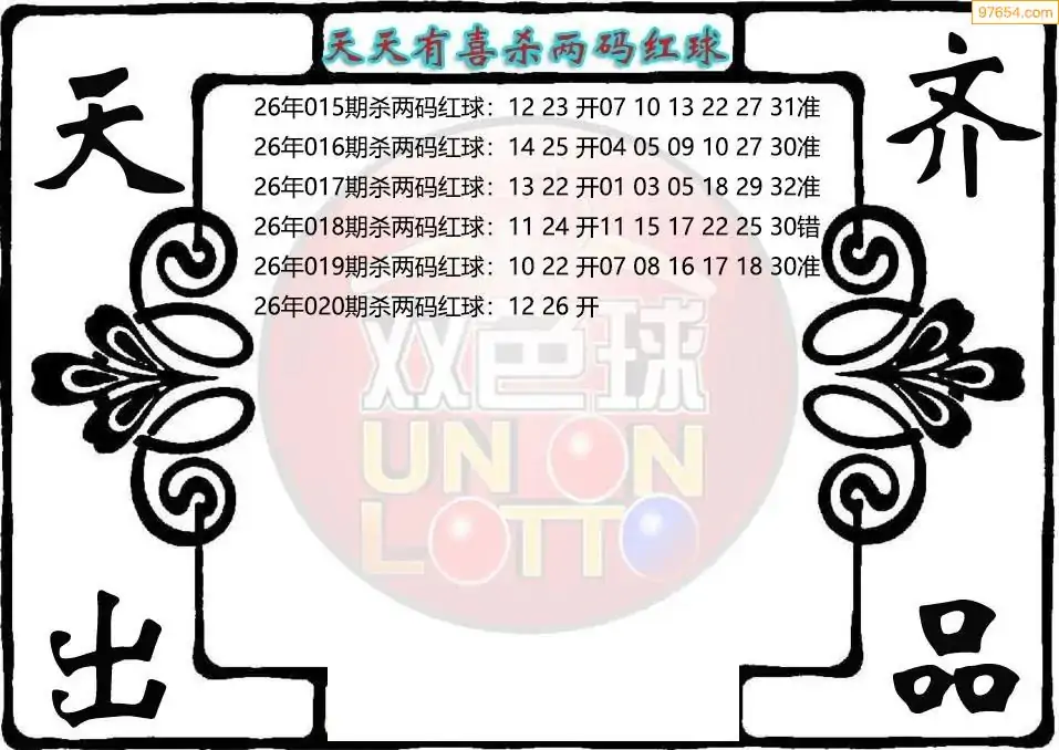 26年双色球020期天天有喜杀红图迷