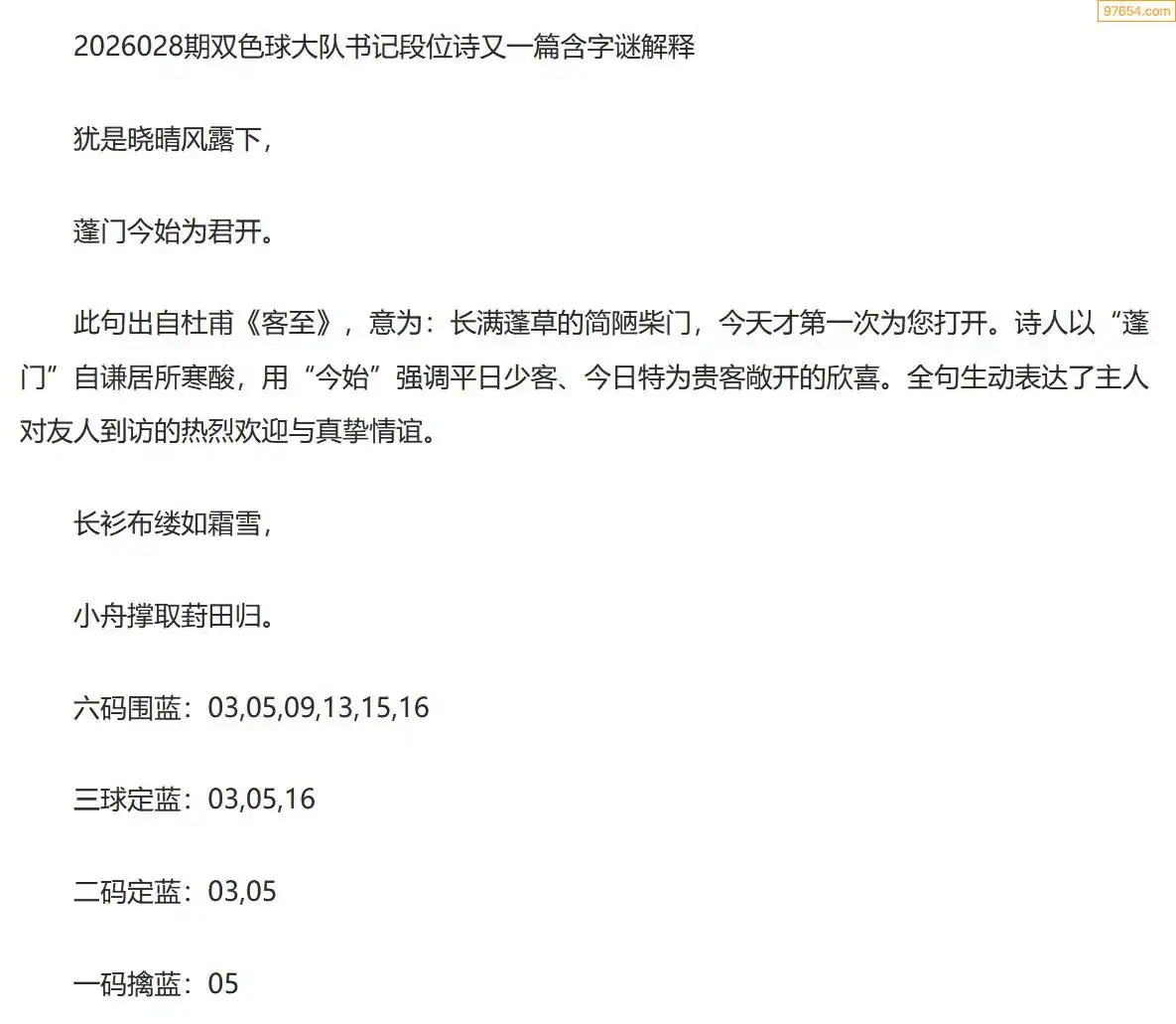 028期牛彩双色球字迷诗迷汇总(天中整理)