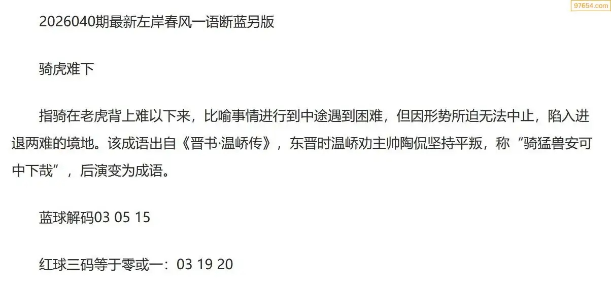 左岸春风另版双色球26年040期一语断蓝