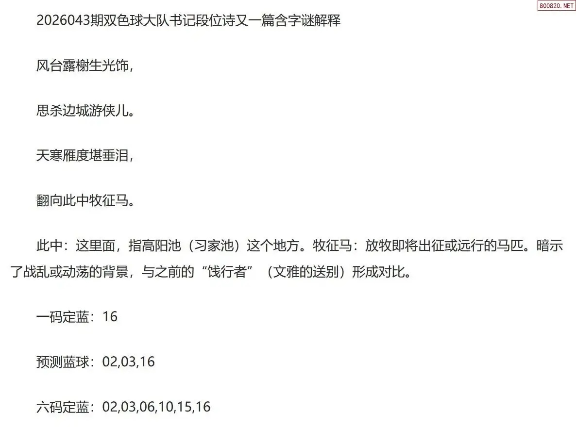 043期牛彩双色球字迷诗迷汇总(天中整理)