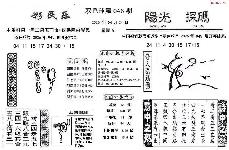26年双色球046期彩民乐+阳光探码图谜