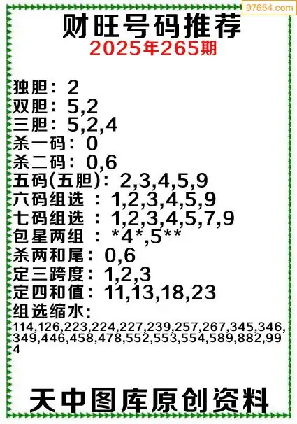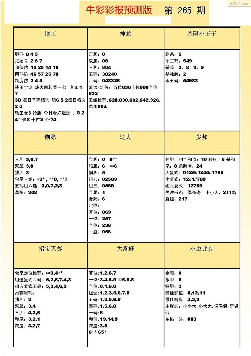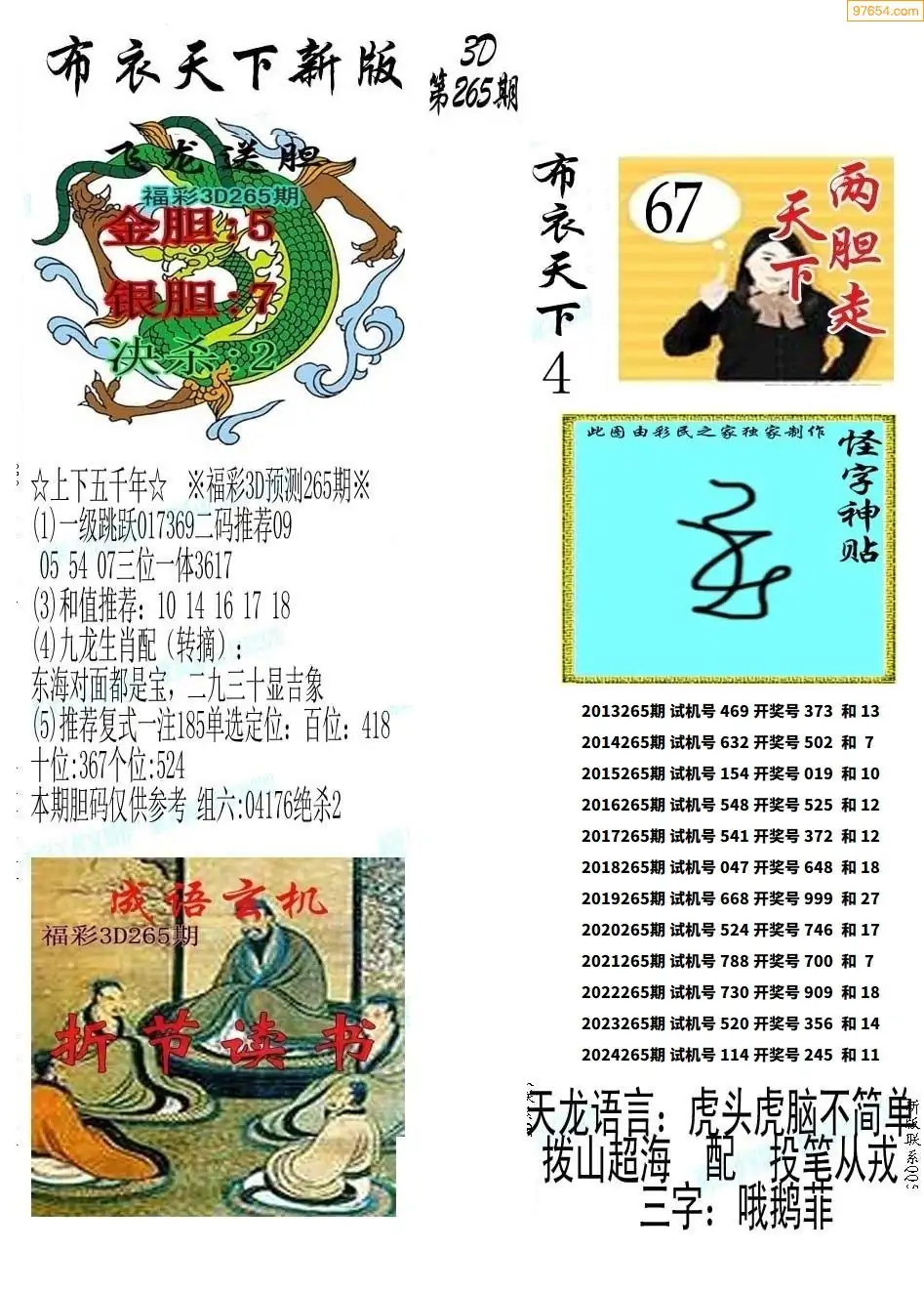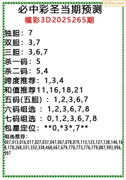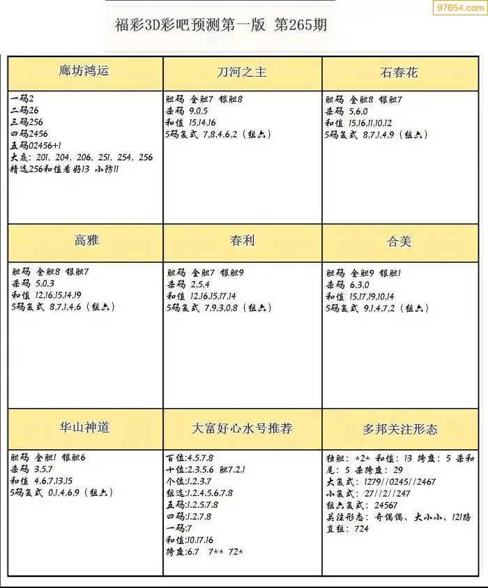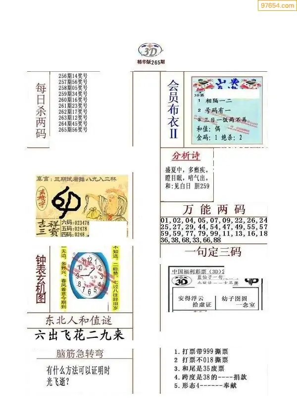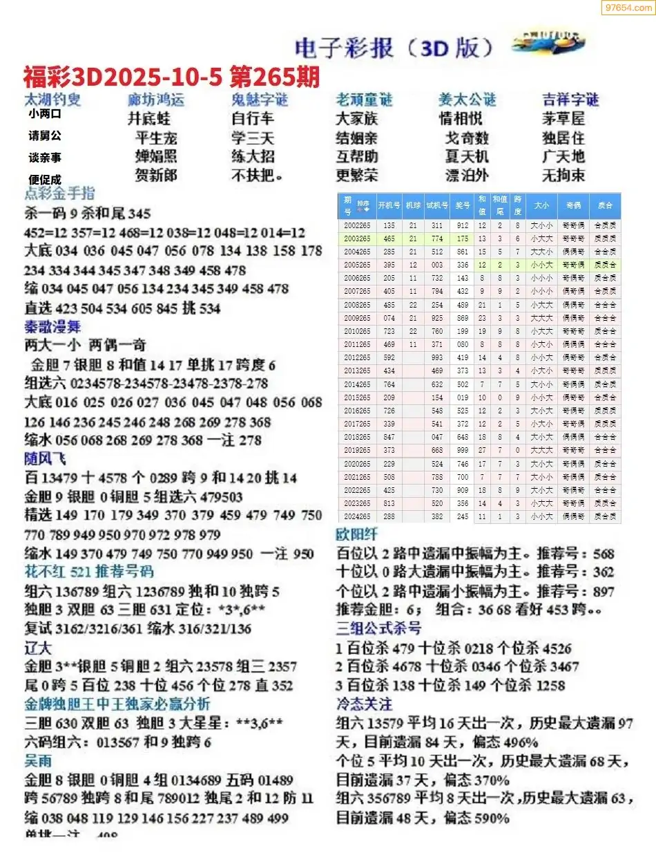(8)25年265期今日3d各类彩报汇总