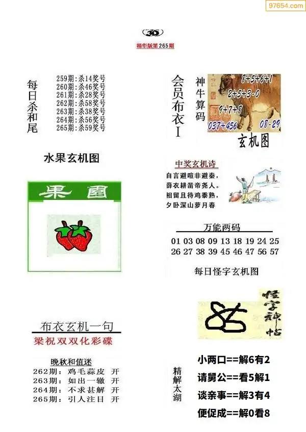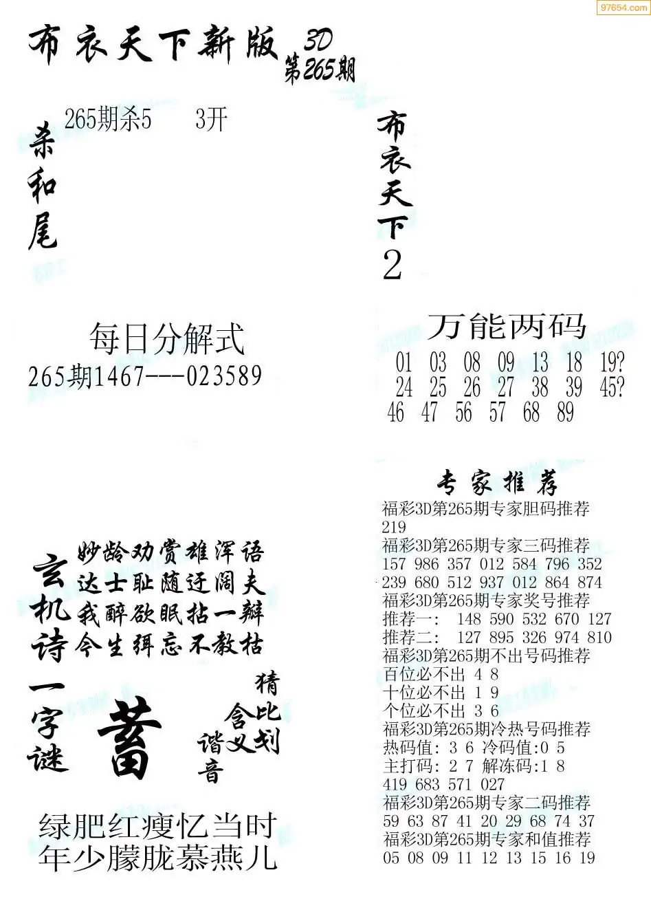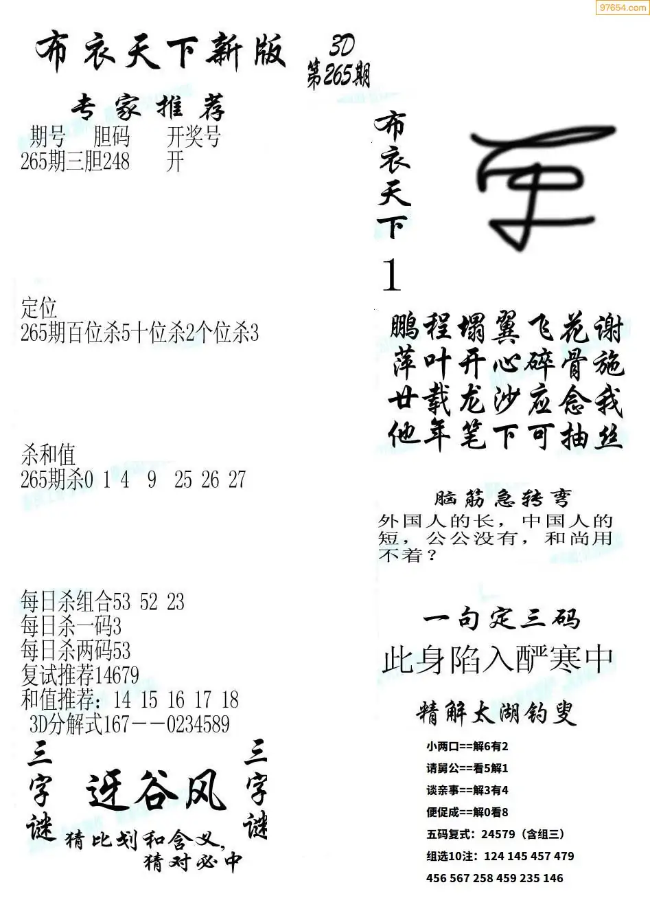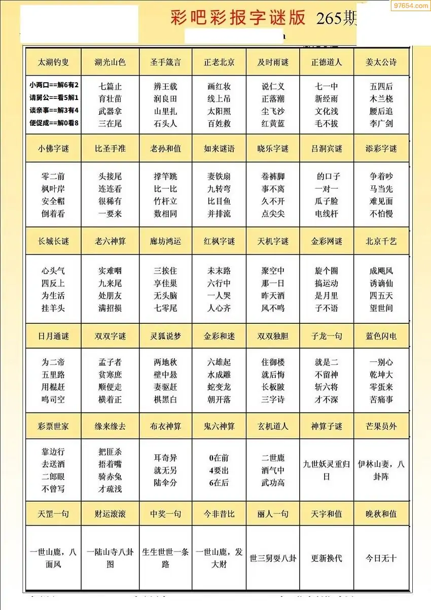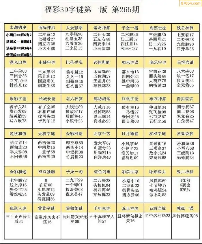 (5)25年265期福彩字谜图谜总汇