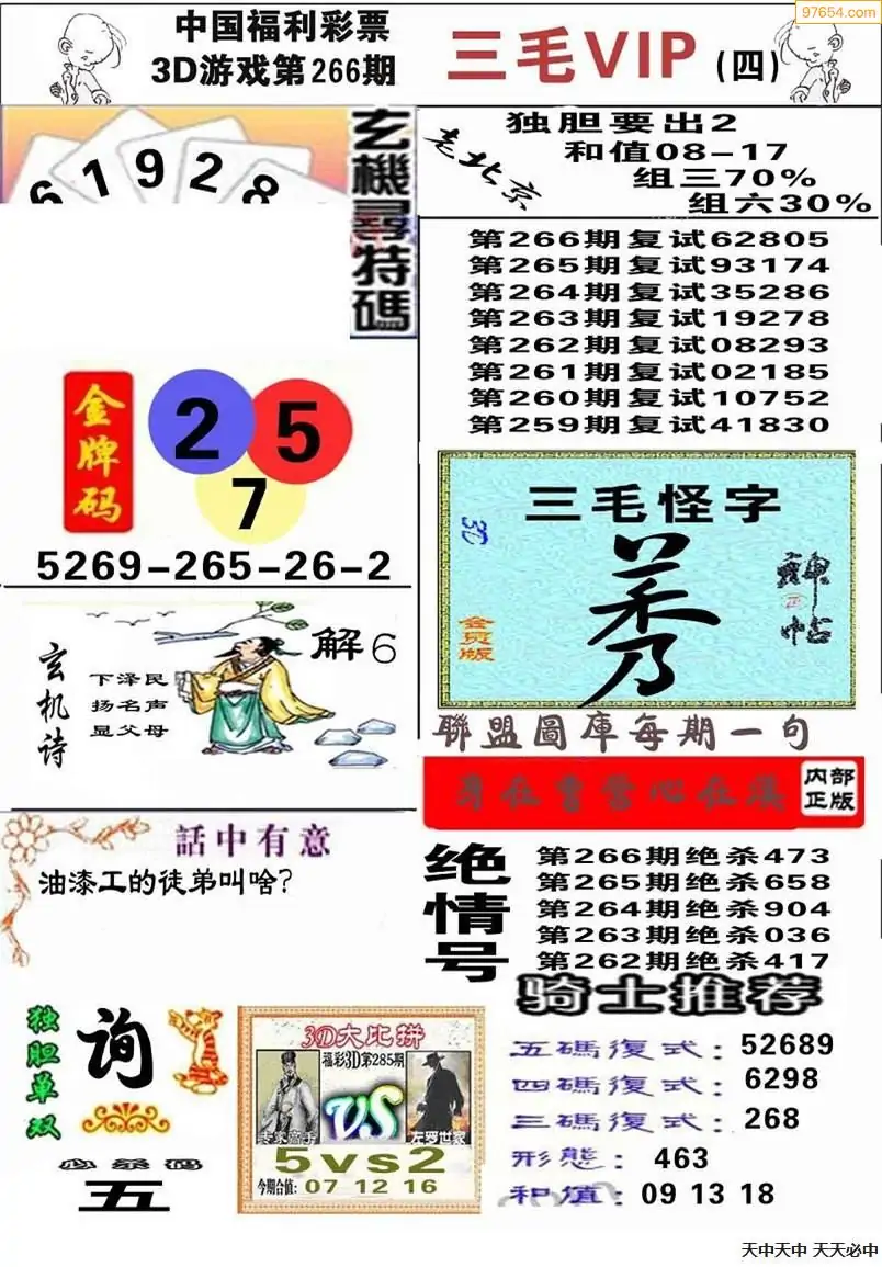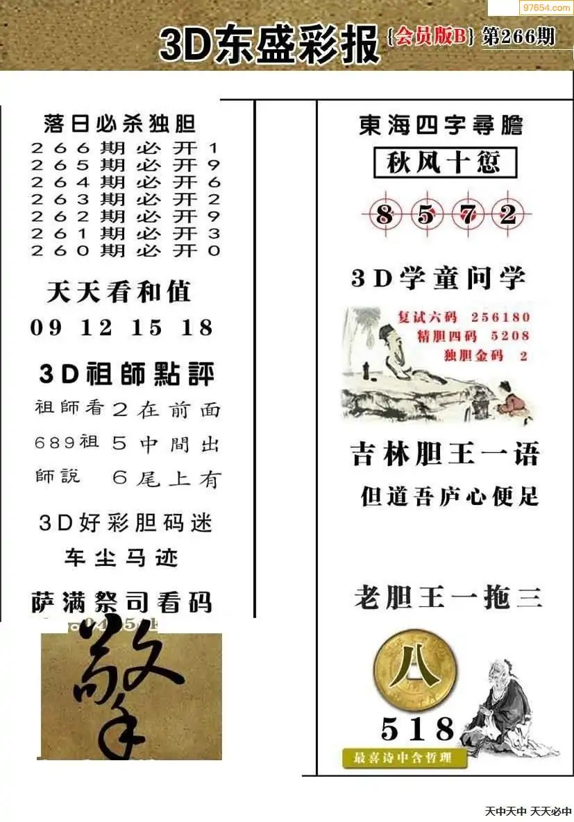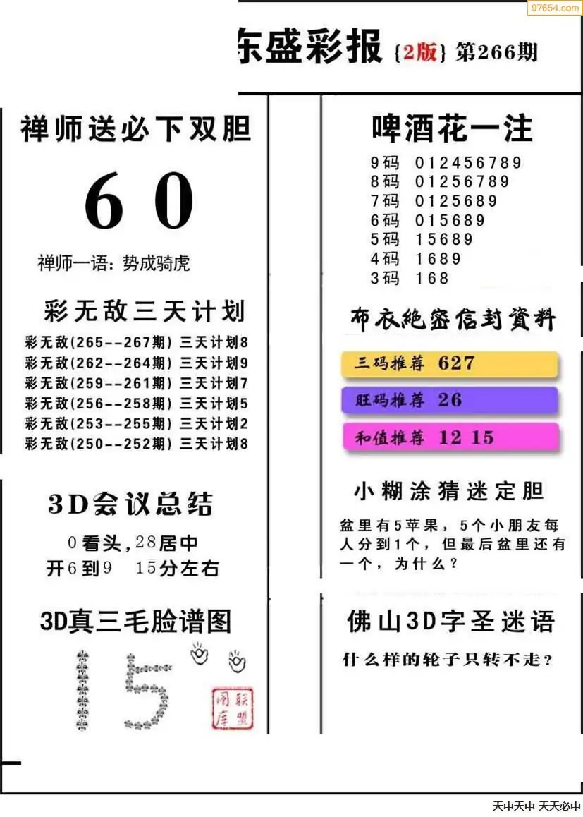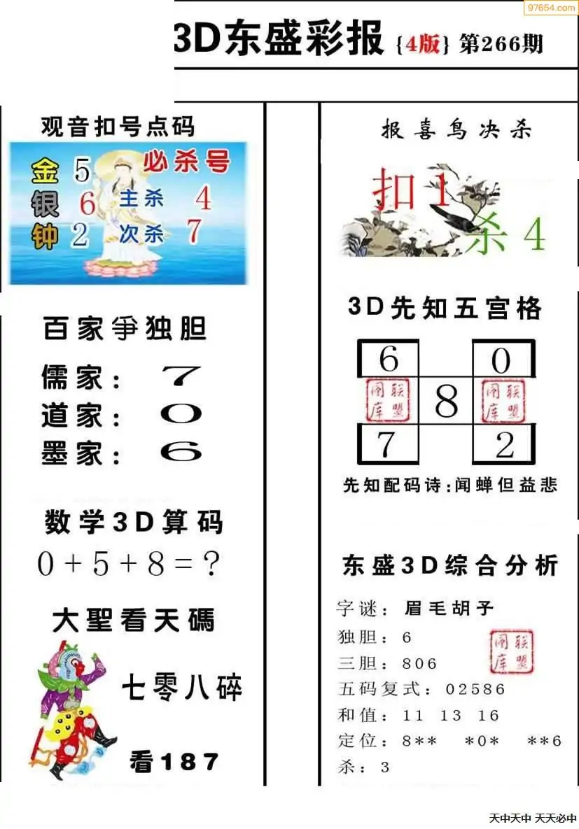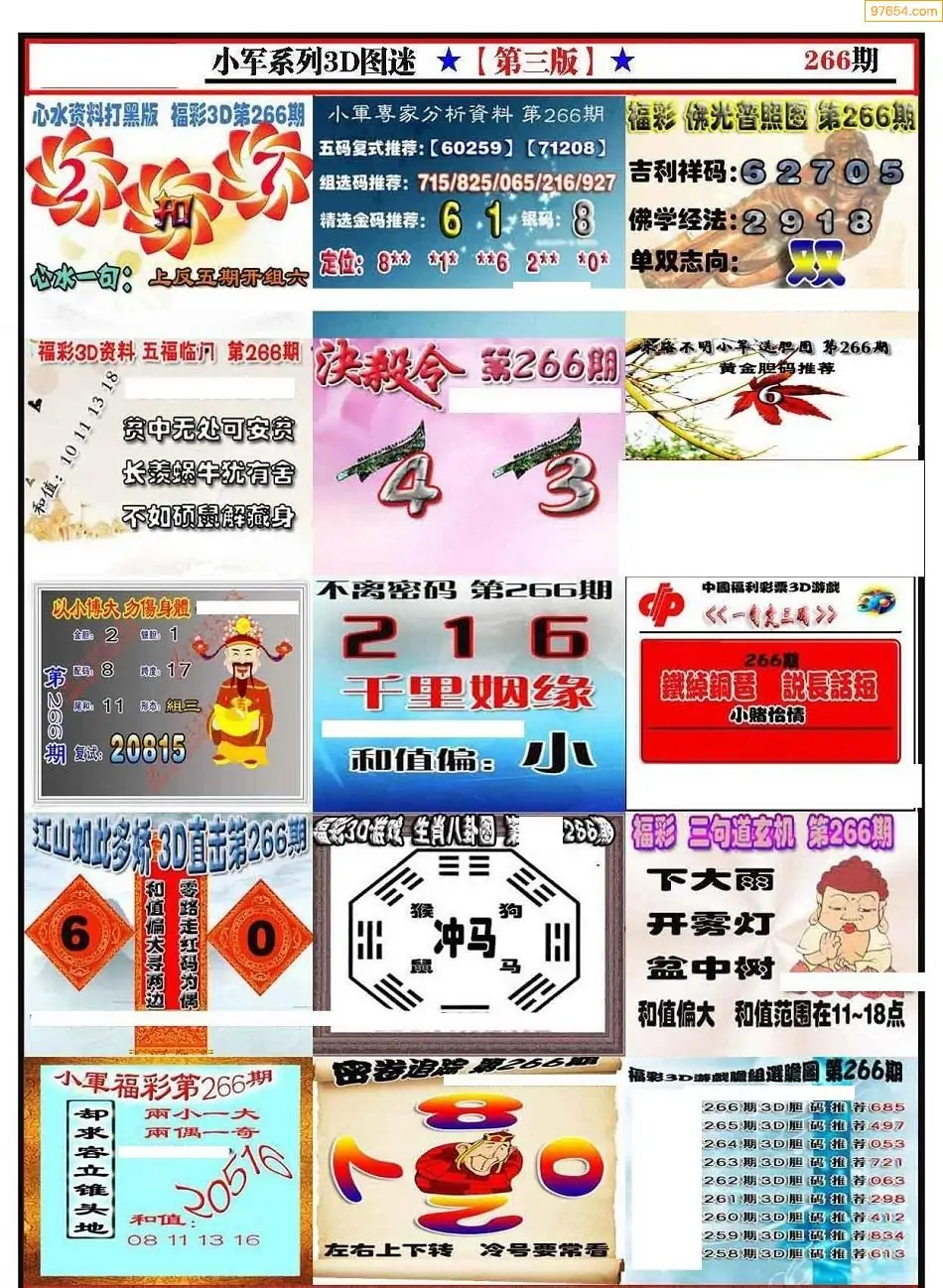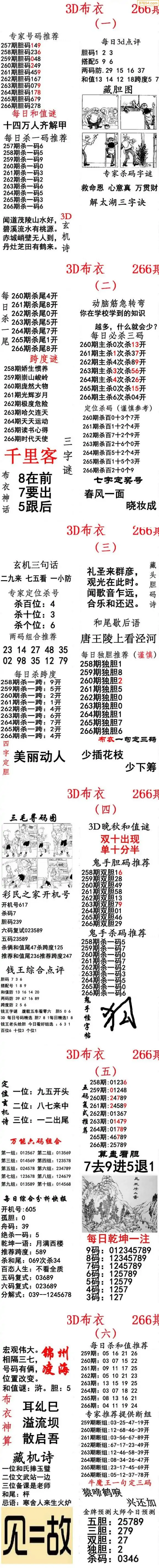 (8)25年266期今日3d各类彩报汇总