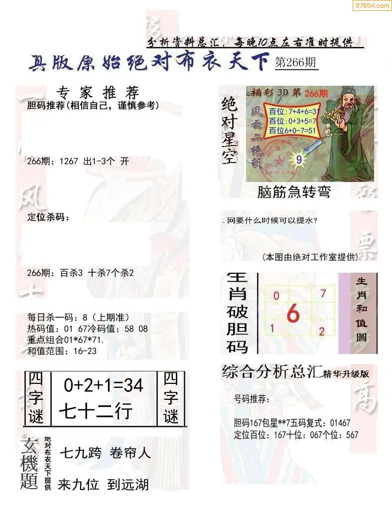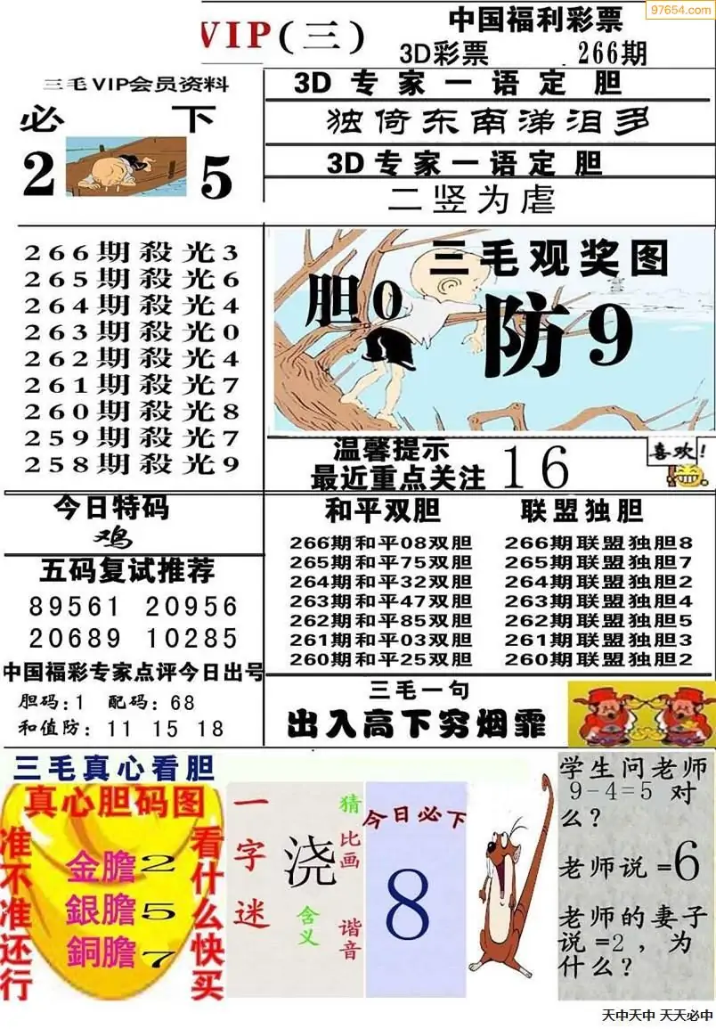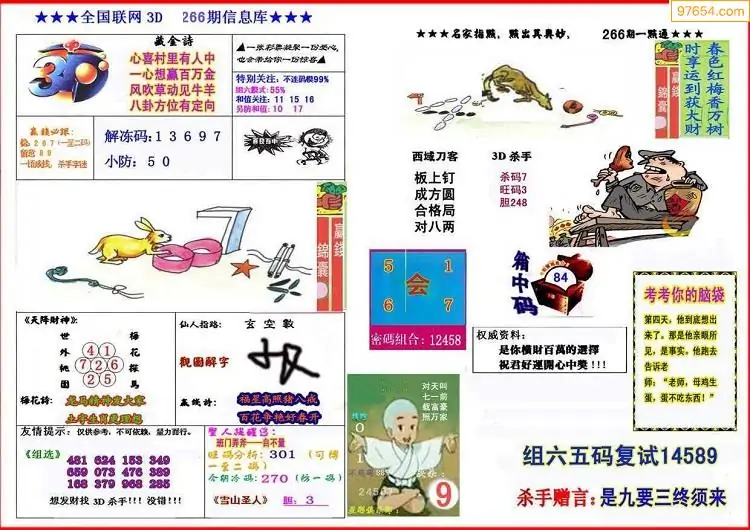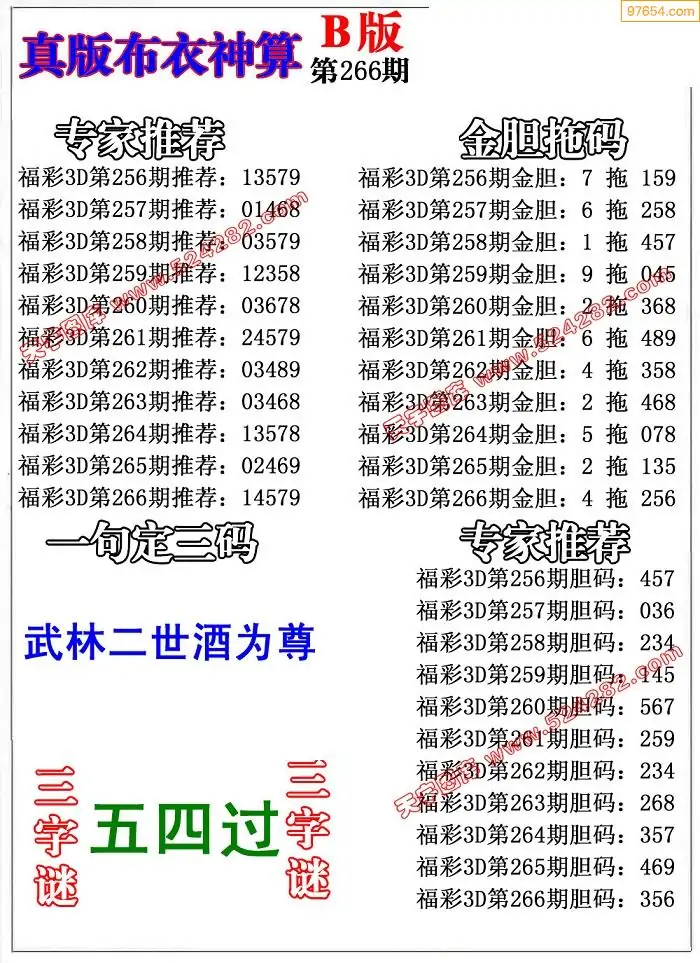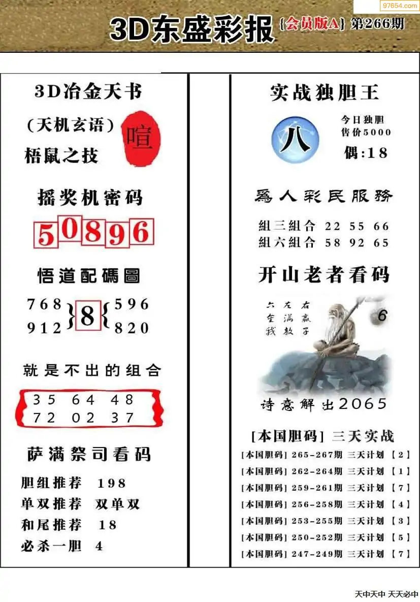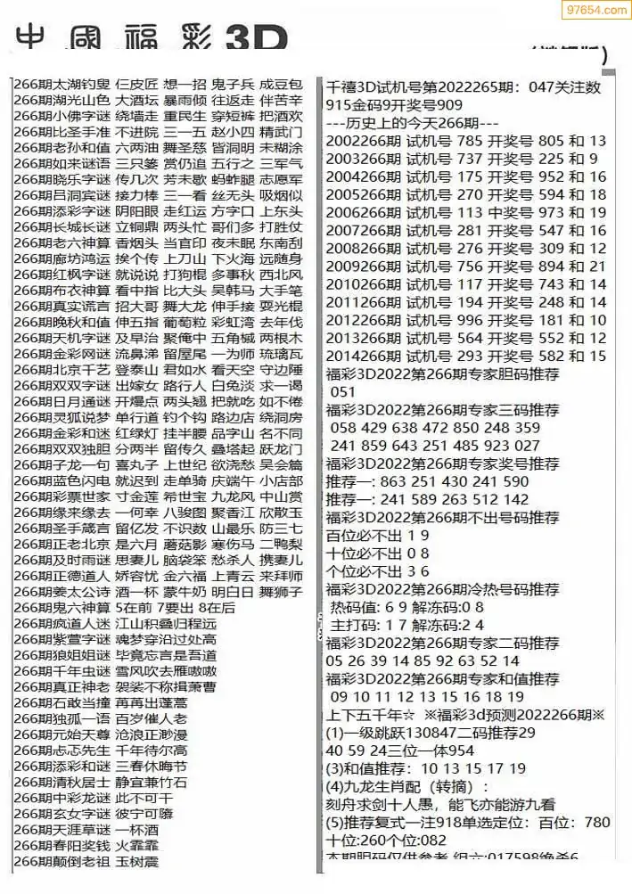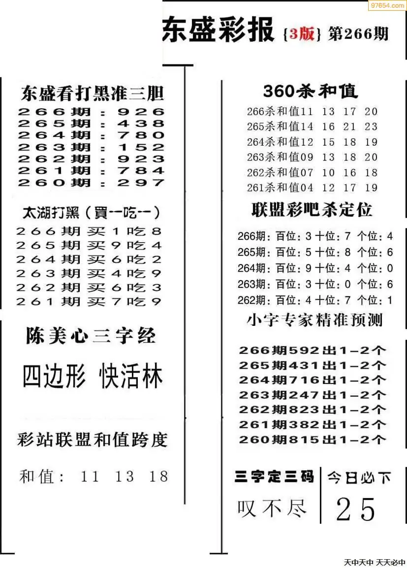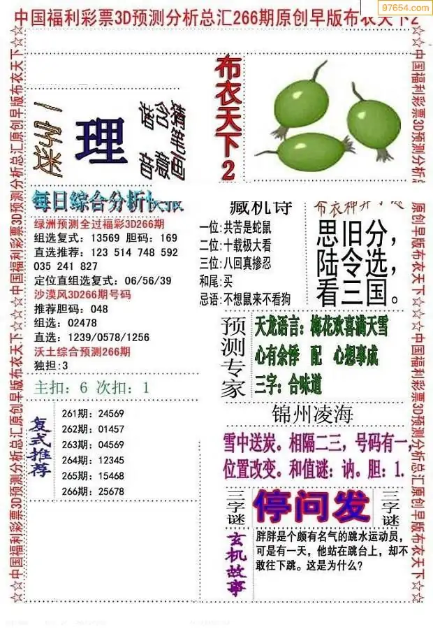 (8)25年266期今日3d各类彩报汇总