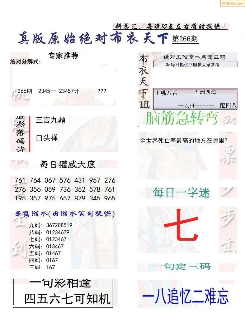 (5)25年266期福彩字谜图谜总汇