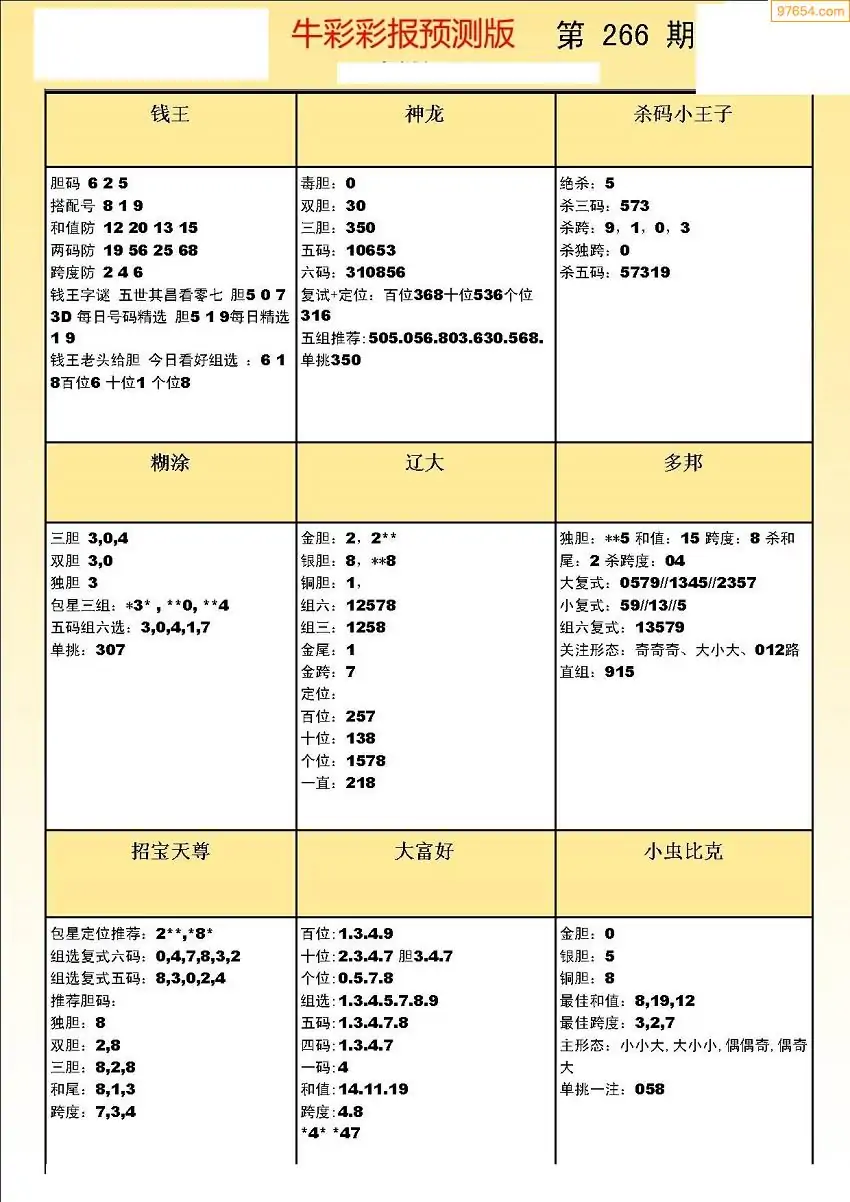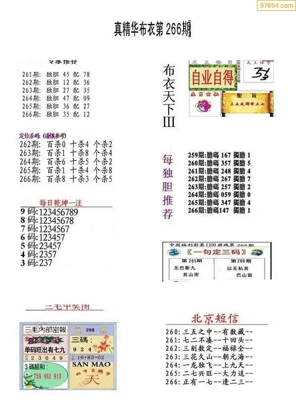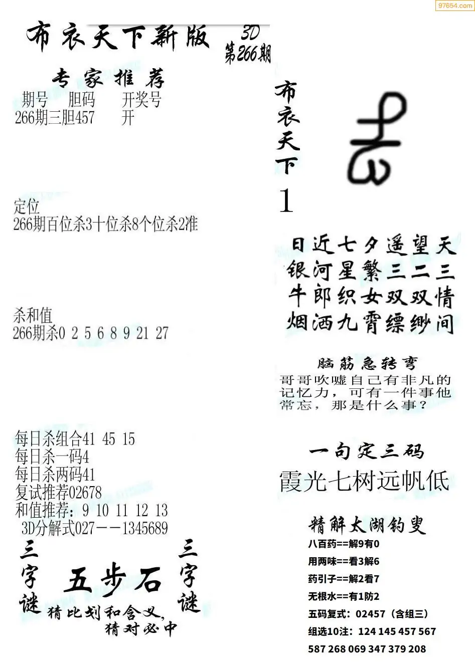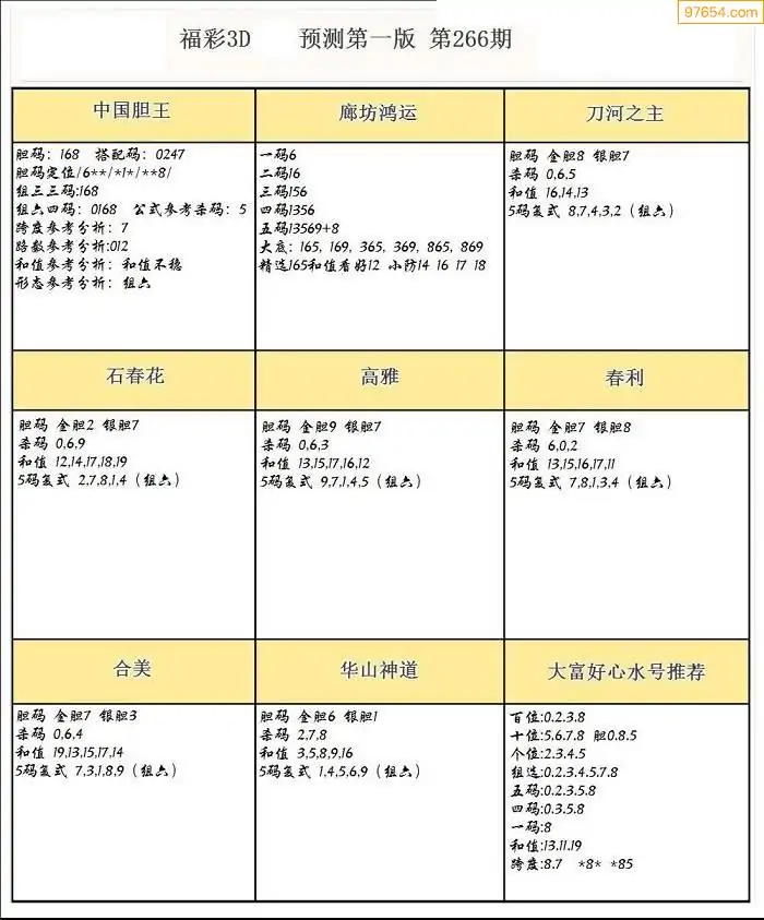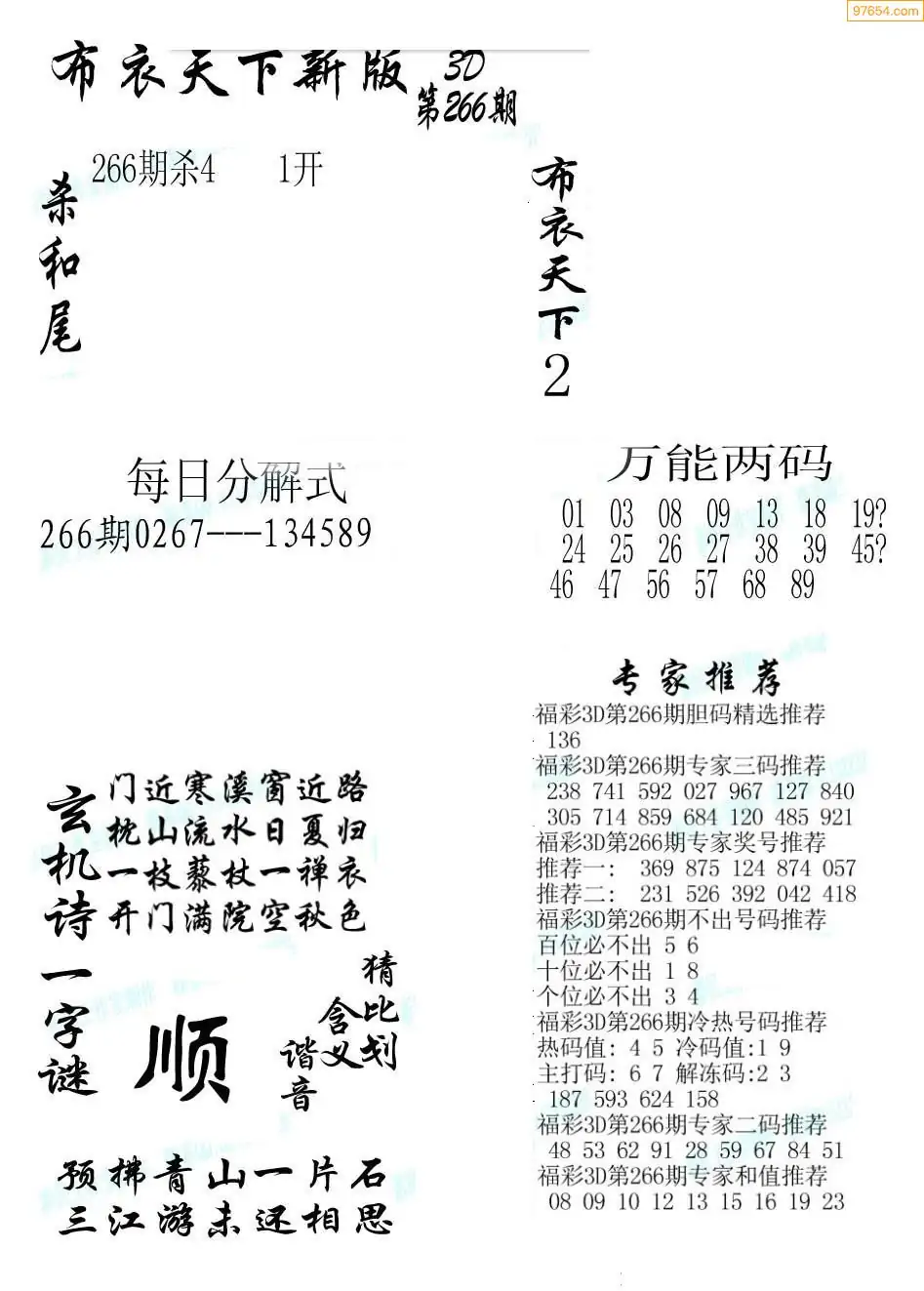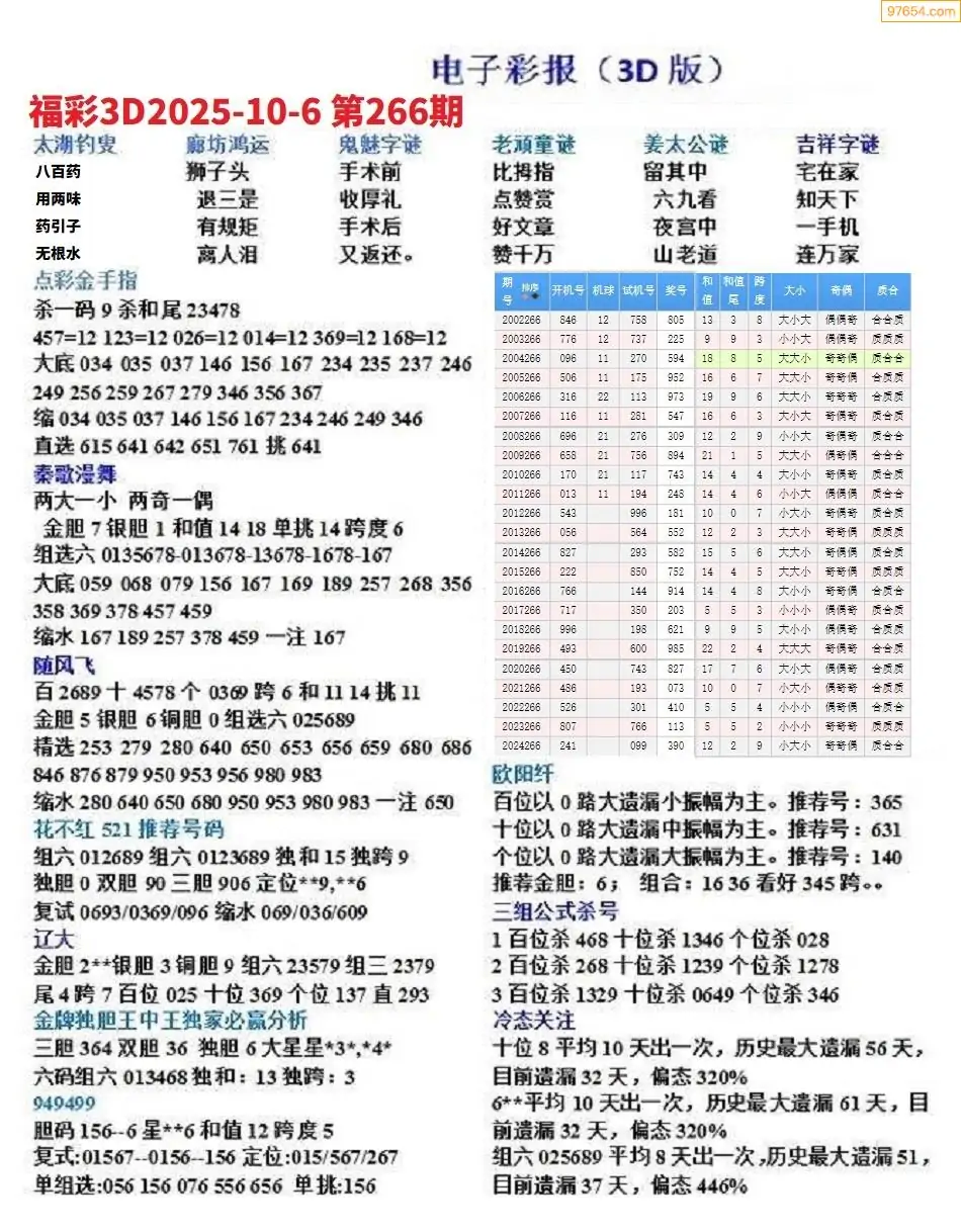 (8)25年266期今日3d各类彩报汇总