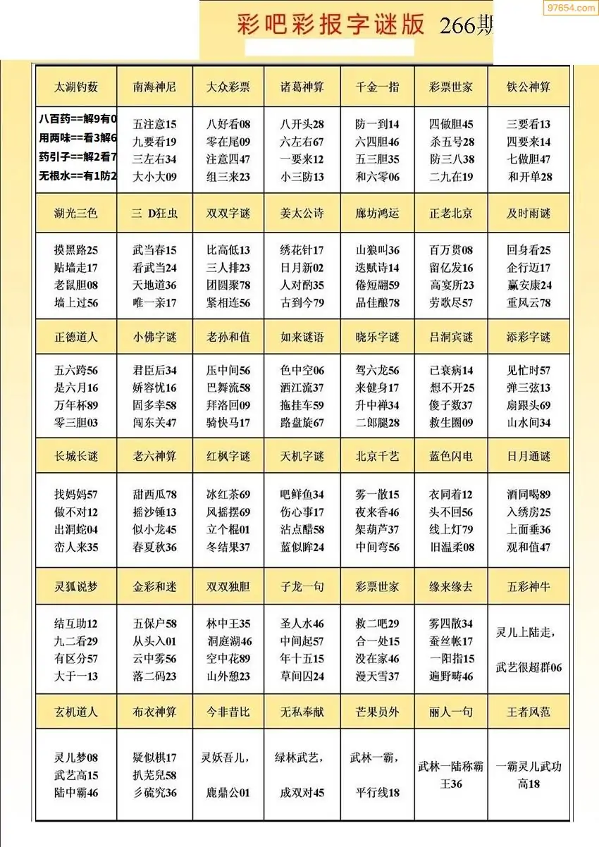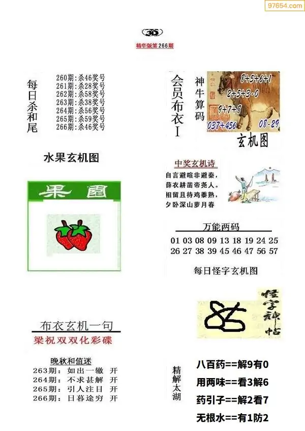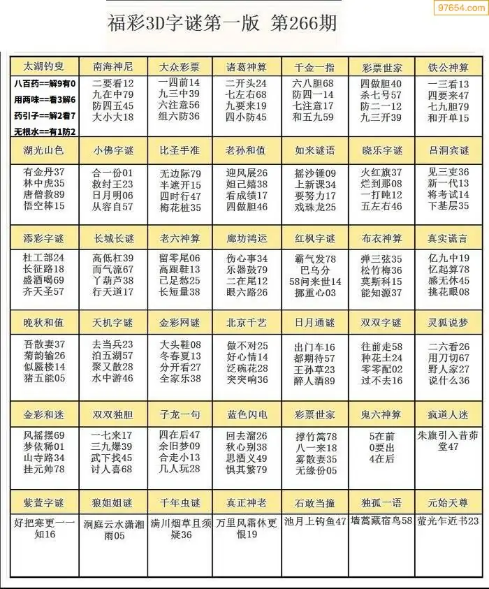(5)25年266期福彩字谜图谜总汇