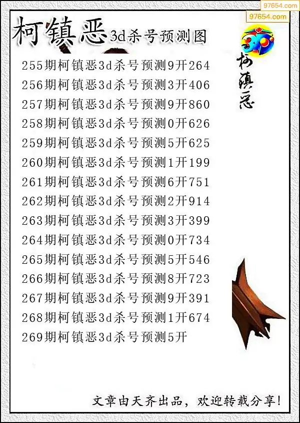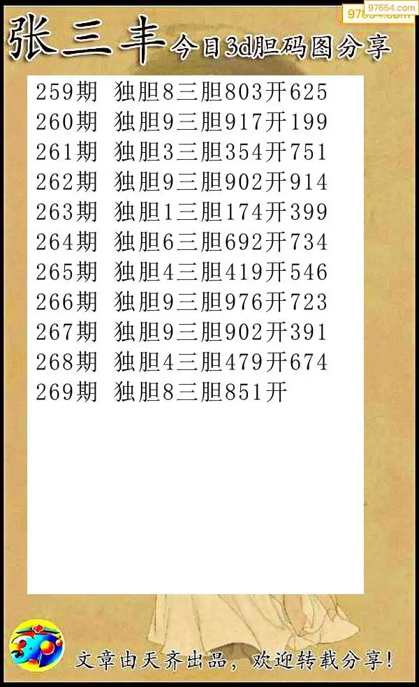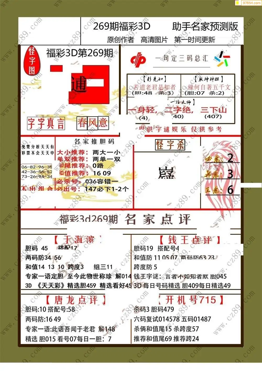(8)25年269期今日3d各类彩报汇总