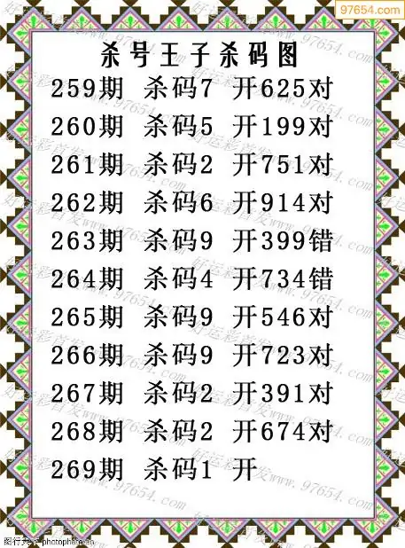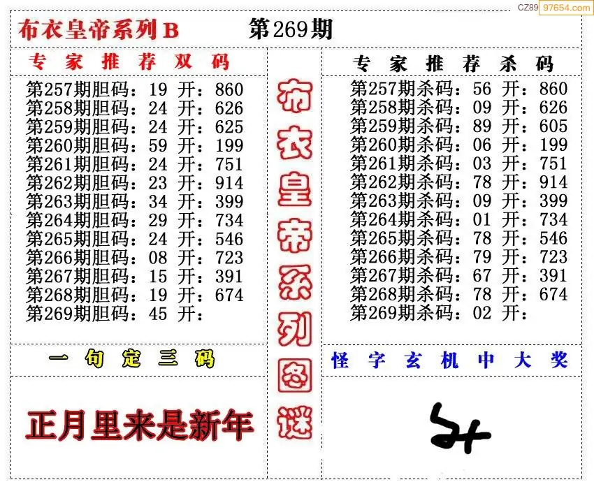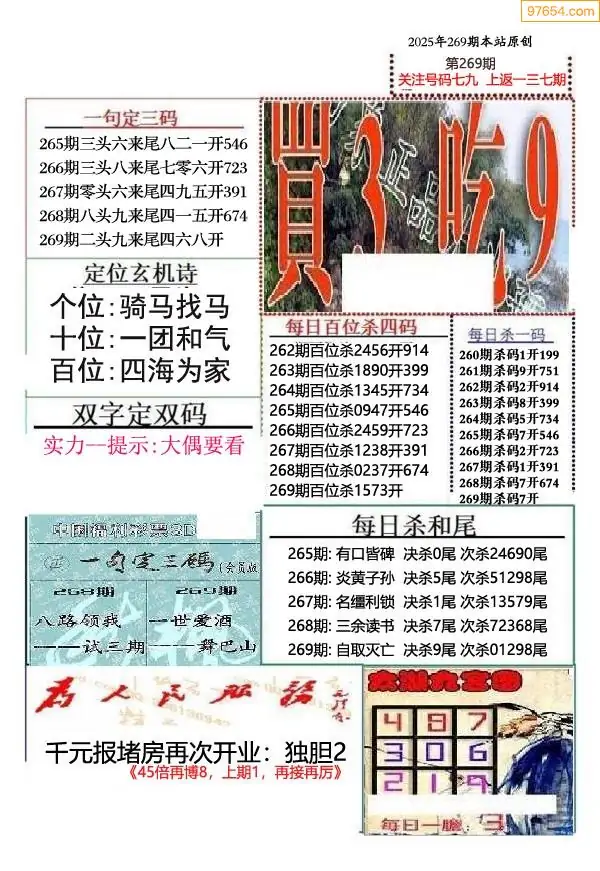 (9)25年269期当期全站杀号定胆图