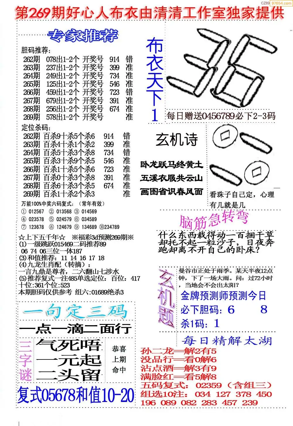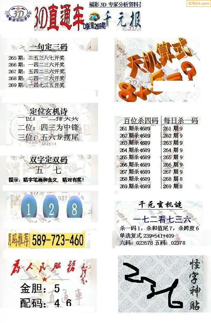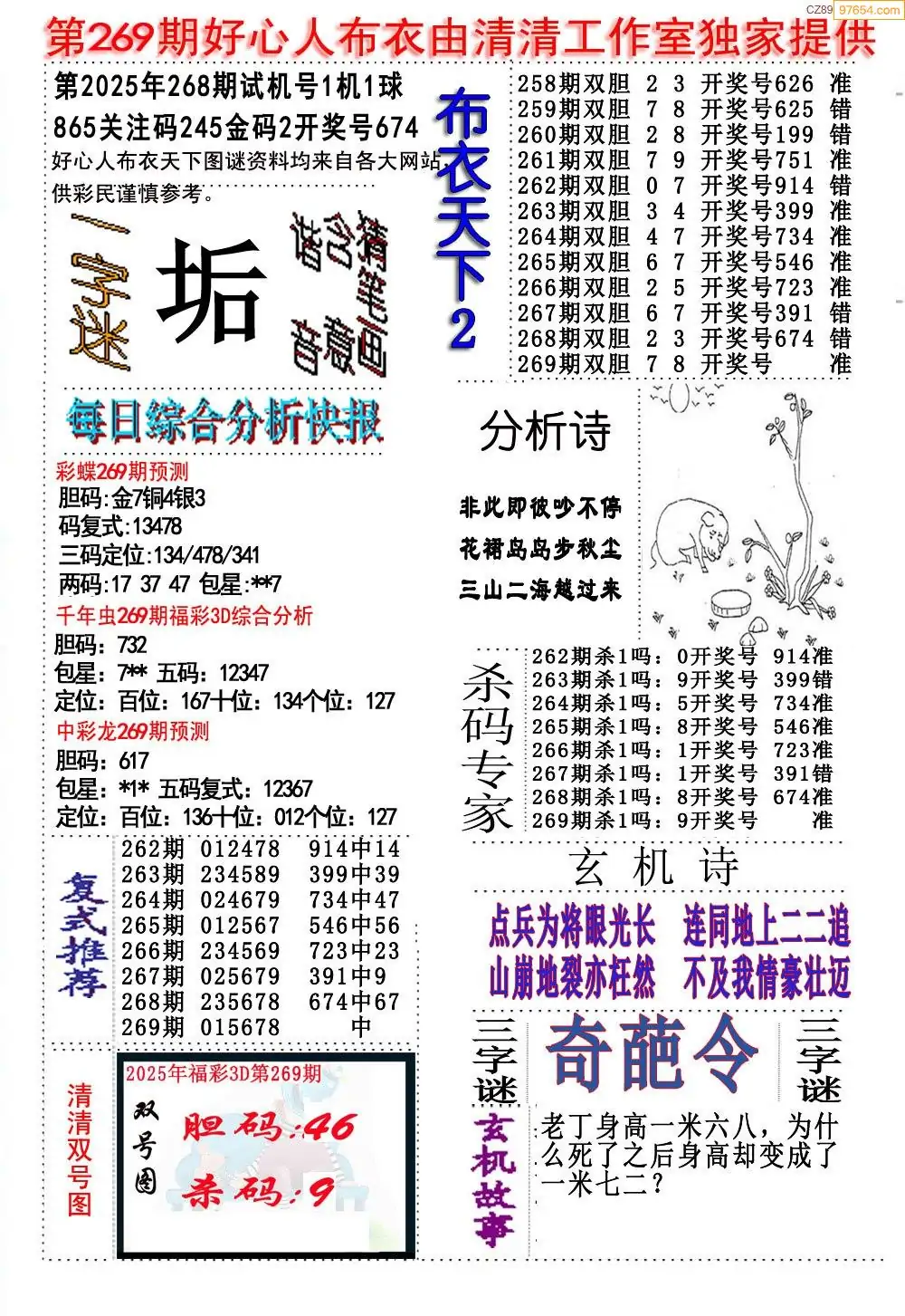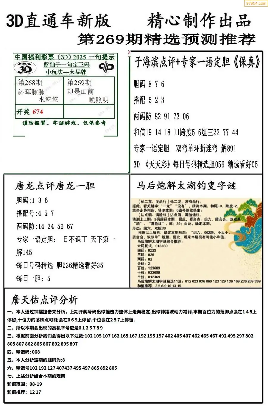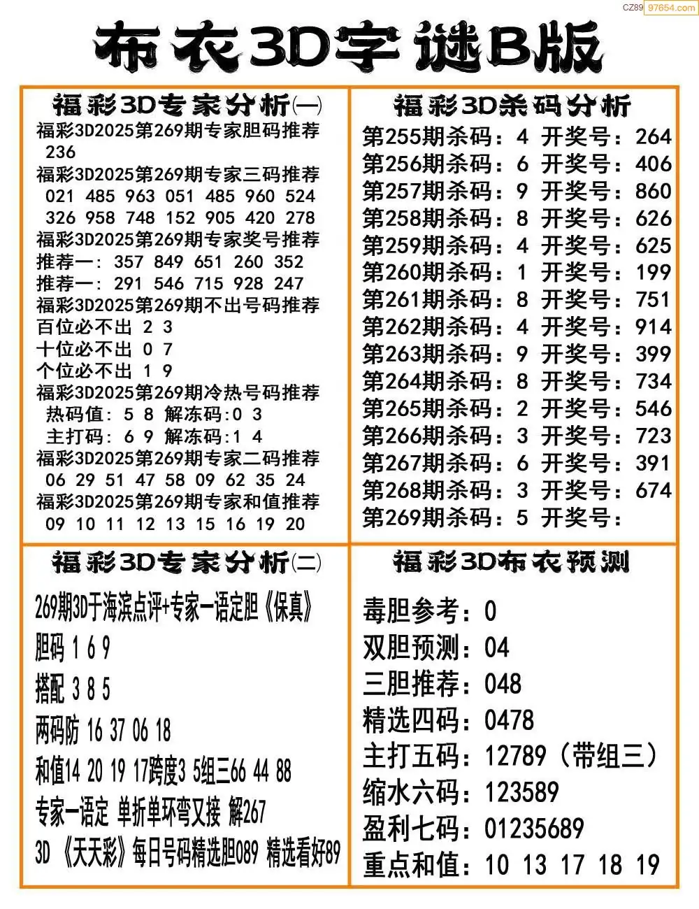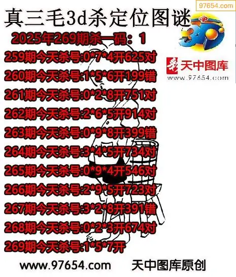 (8)25年269期今日3d各类彩报汇总
