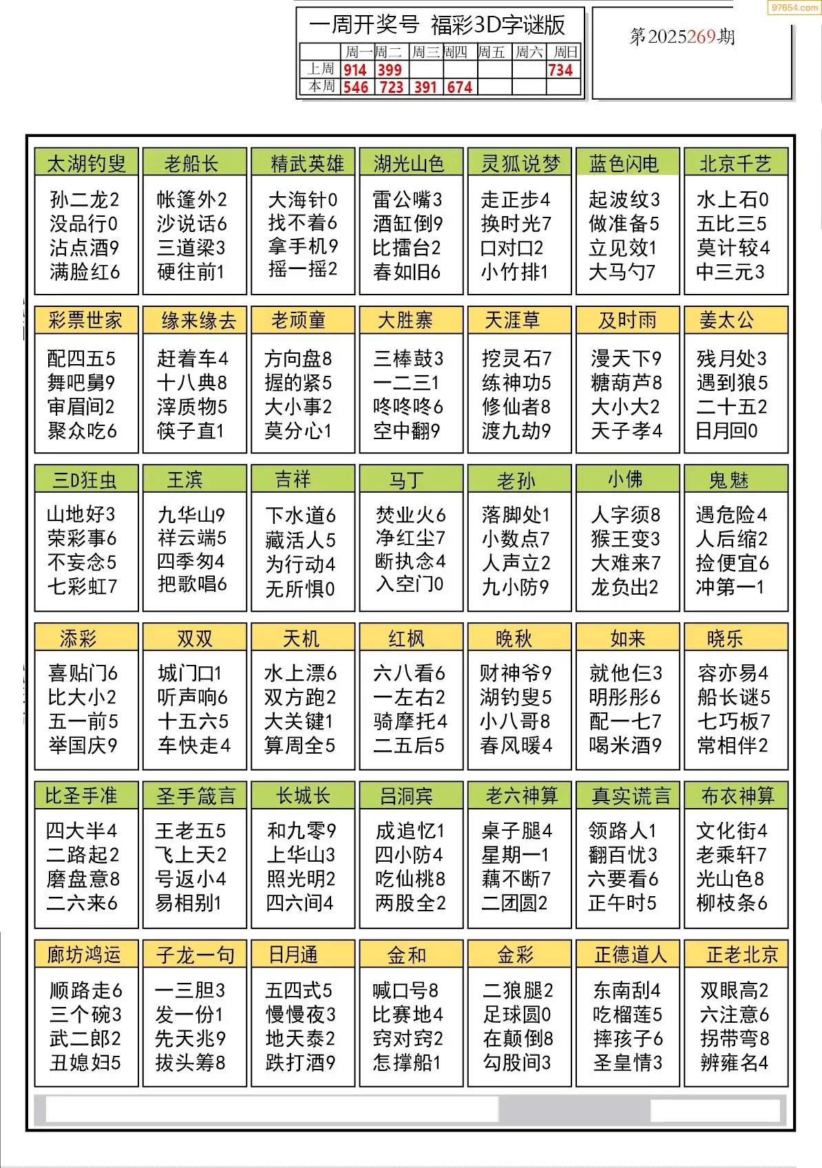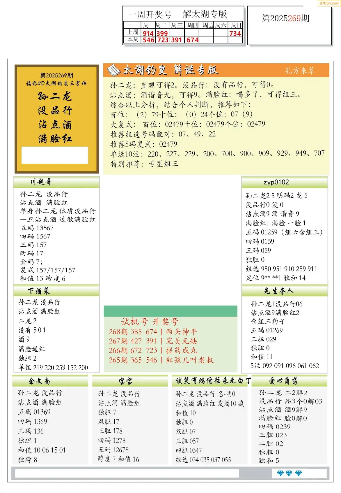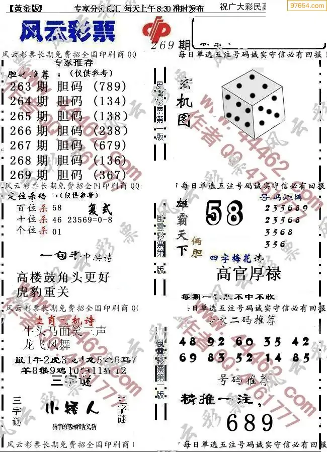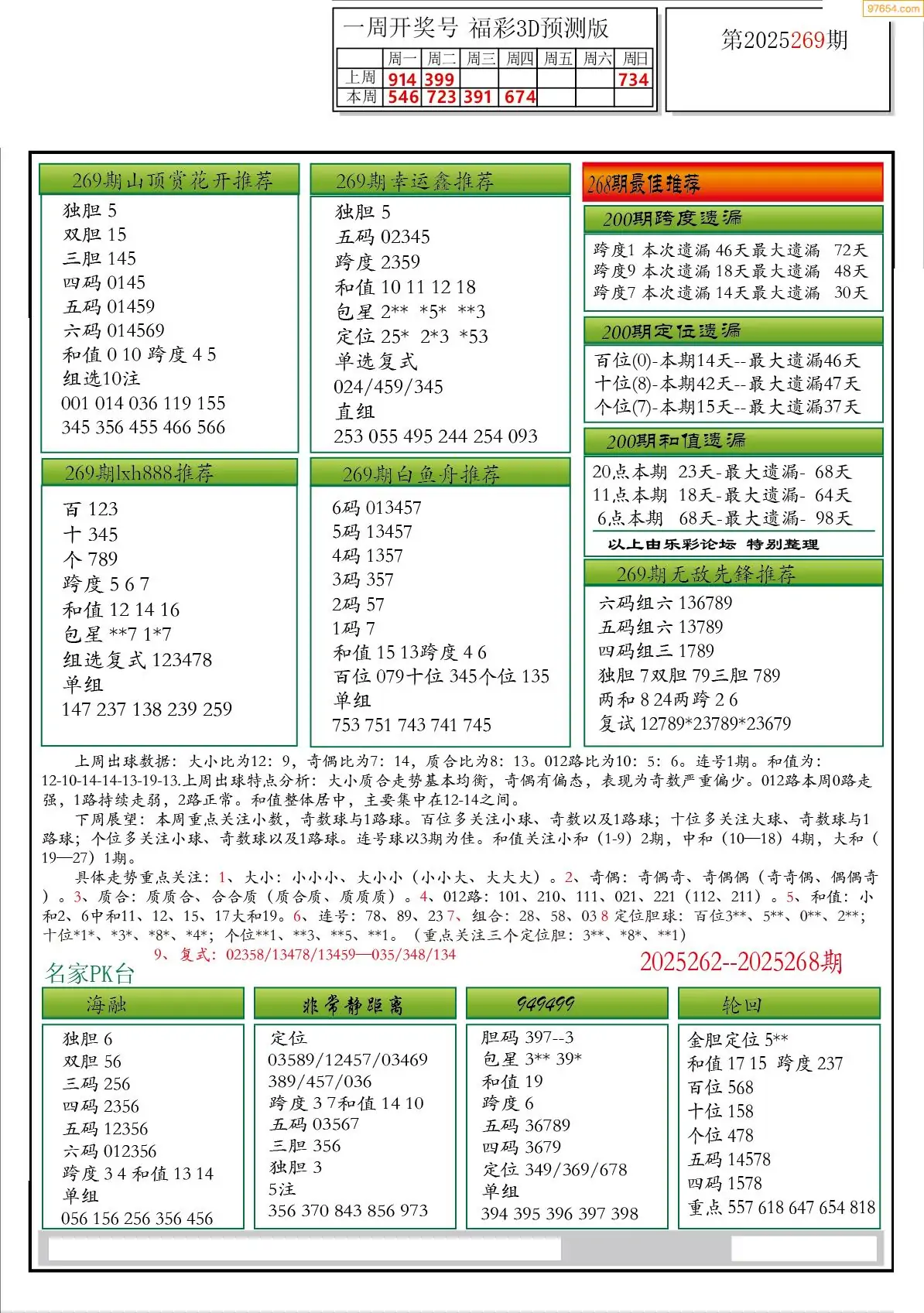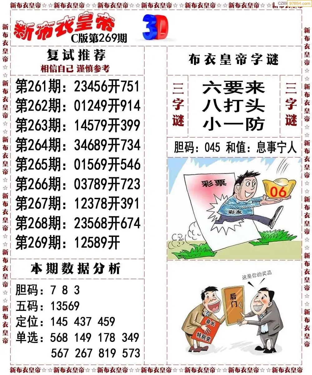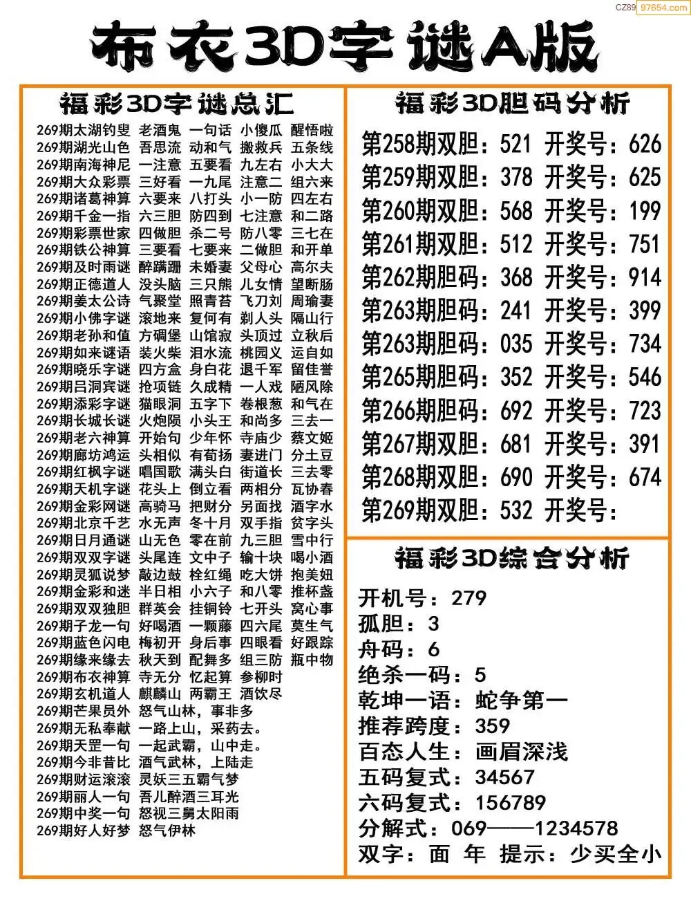 (8)25年269期今日3d各类彩报汇总