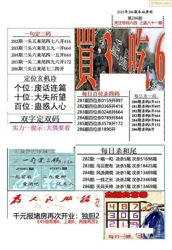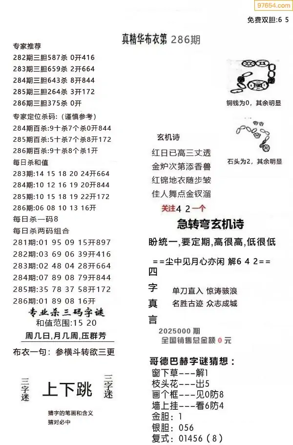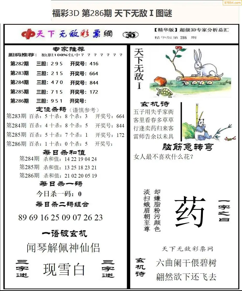 (9)25年286期当期全站杀号定胆图