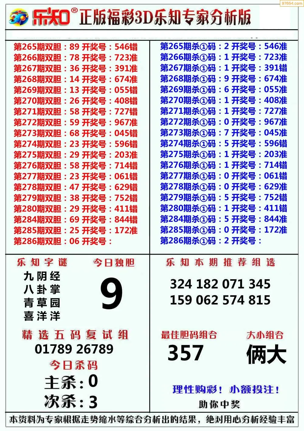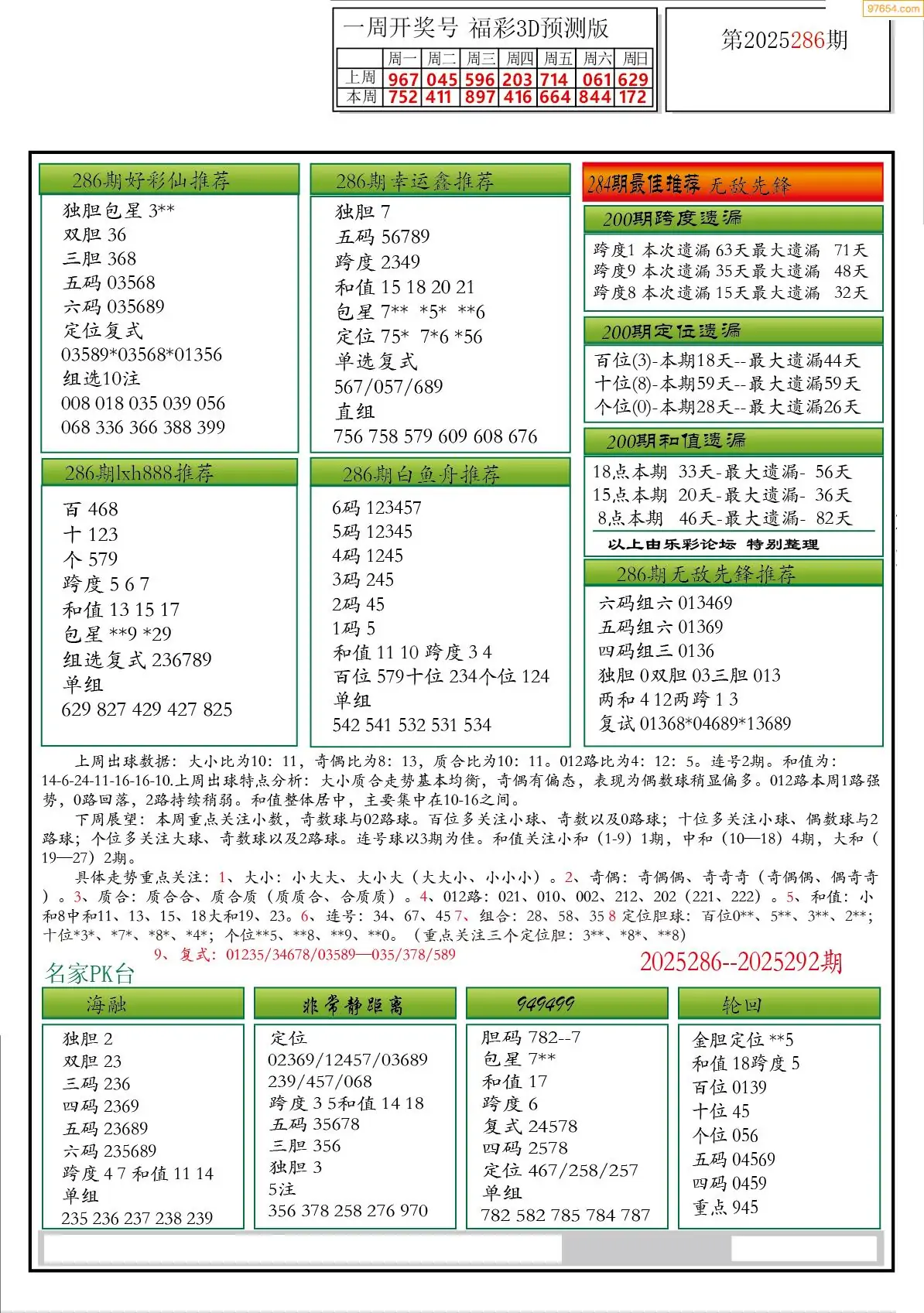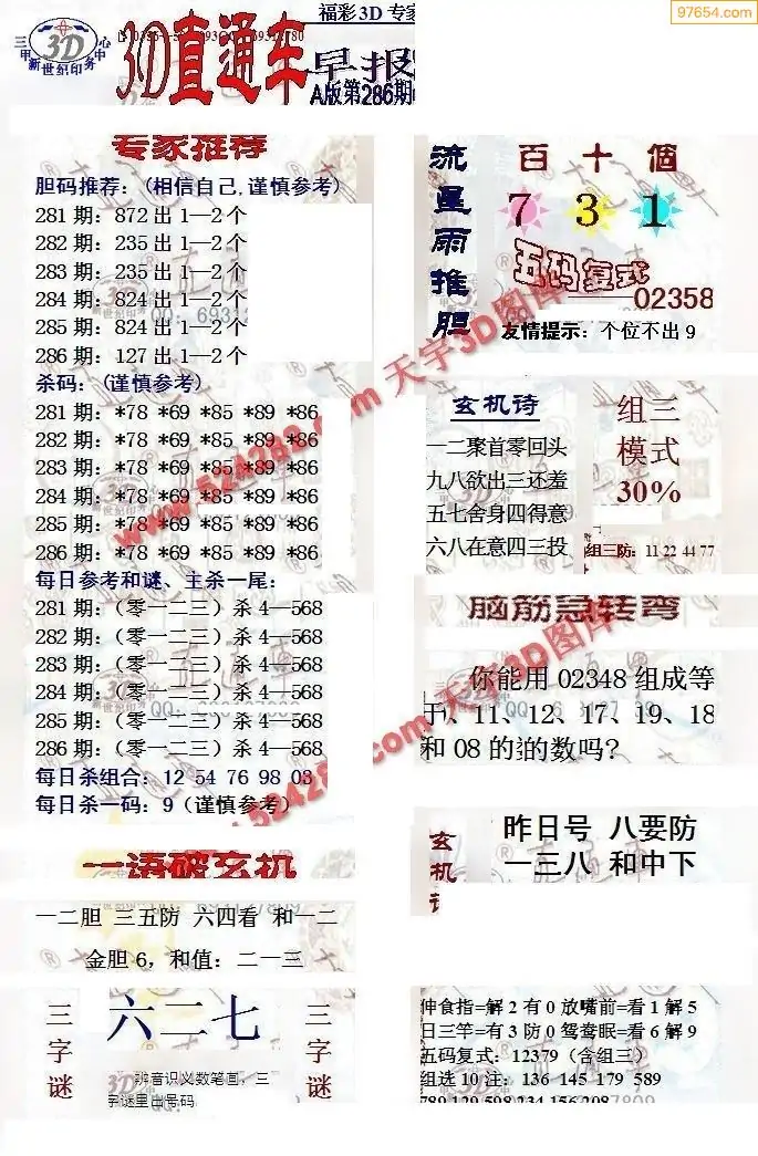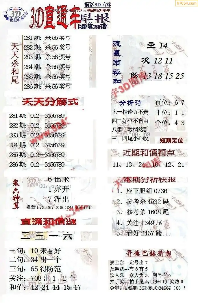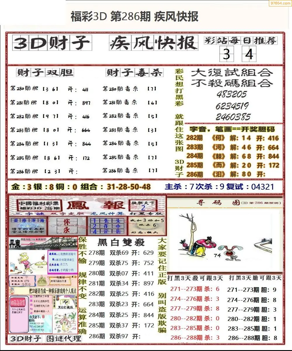 (8)25年286期今日3d各类彩报汇总