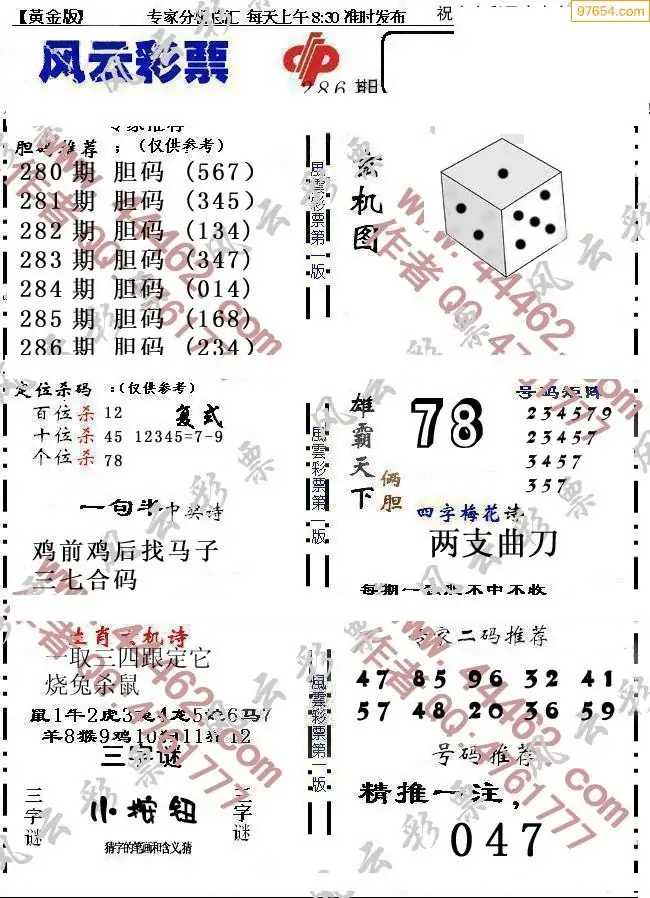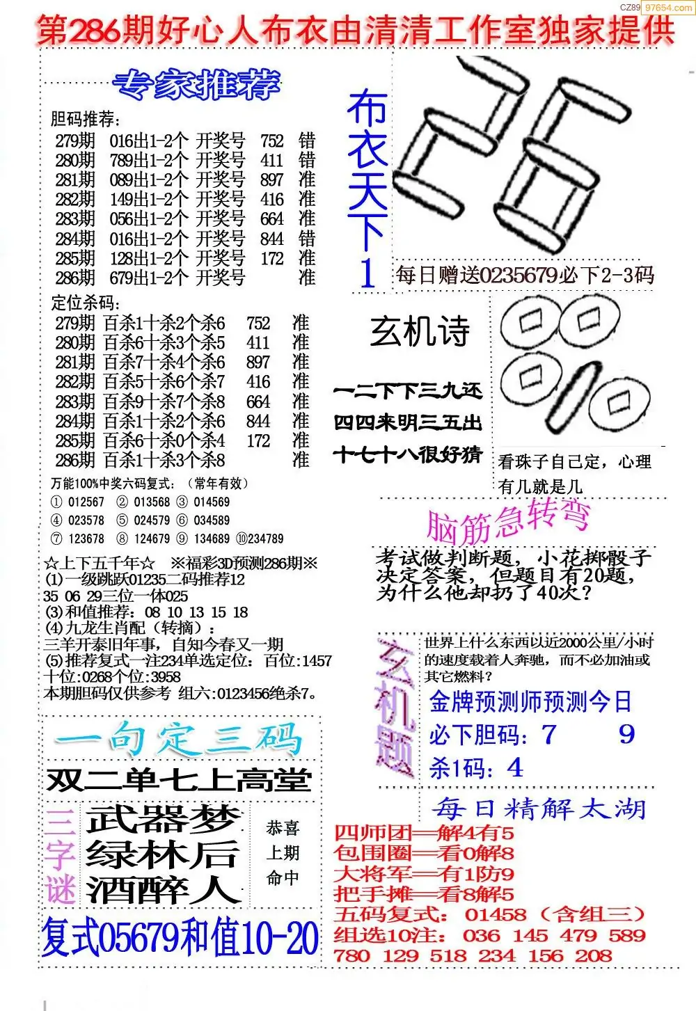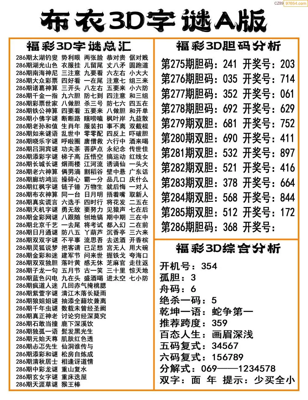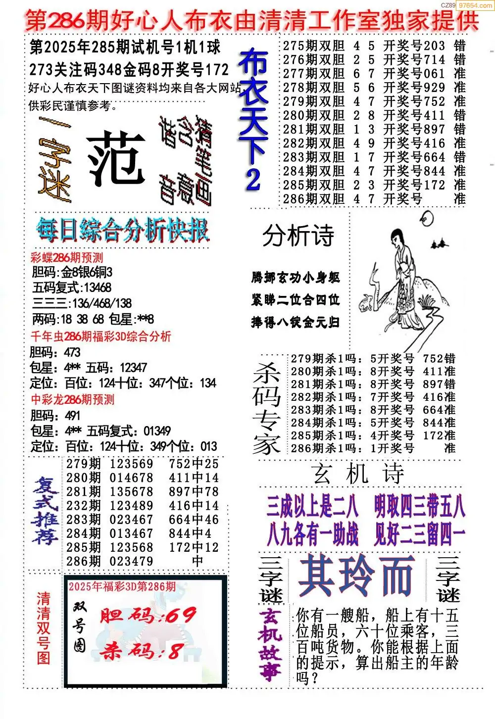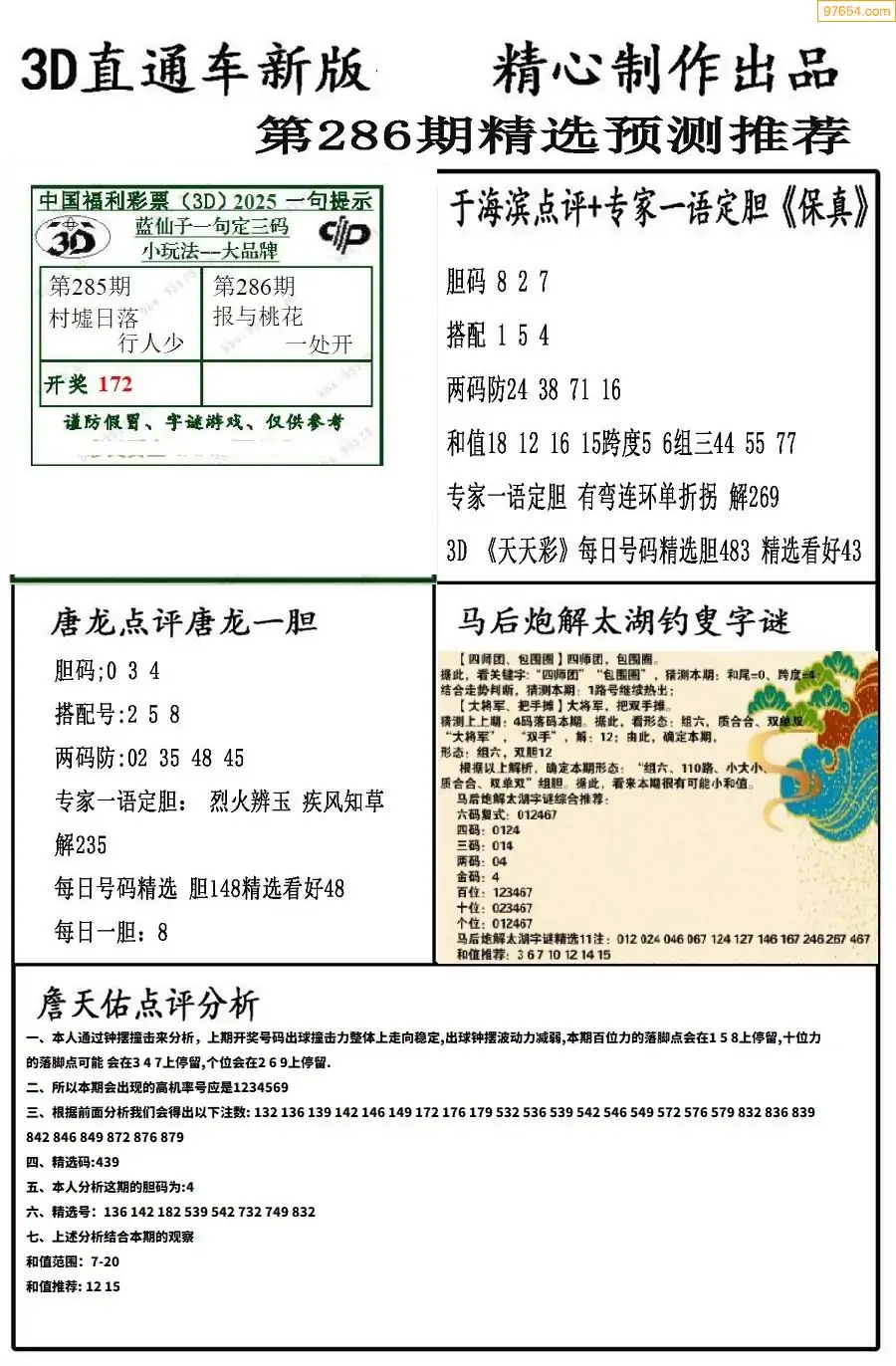 (8)25年286期今日3d各类彩报汇总