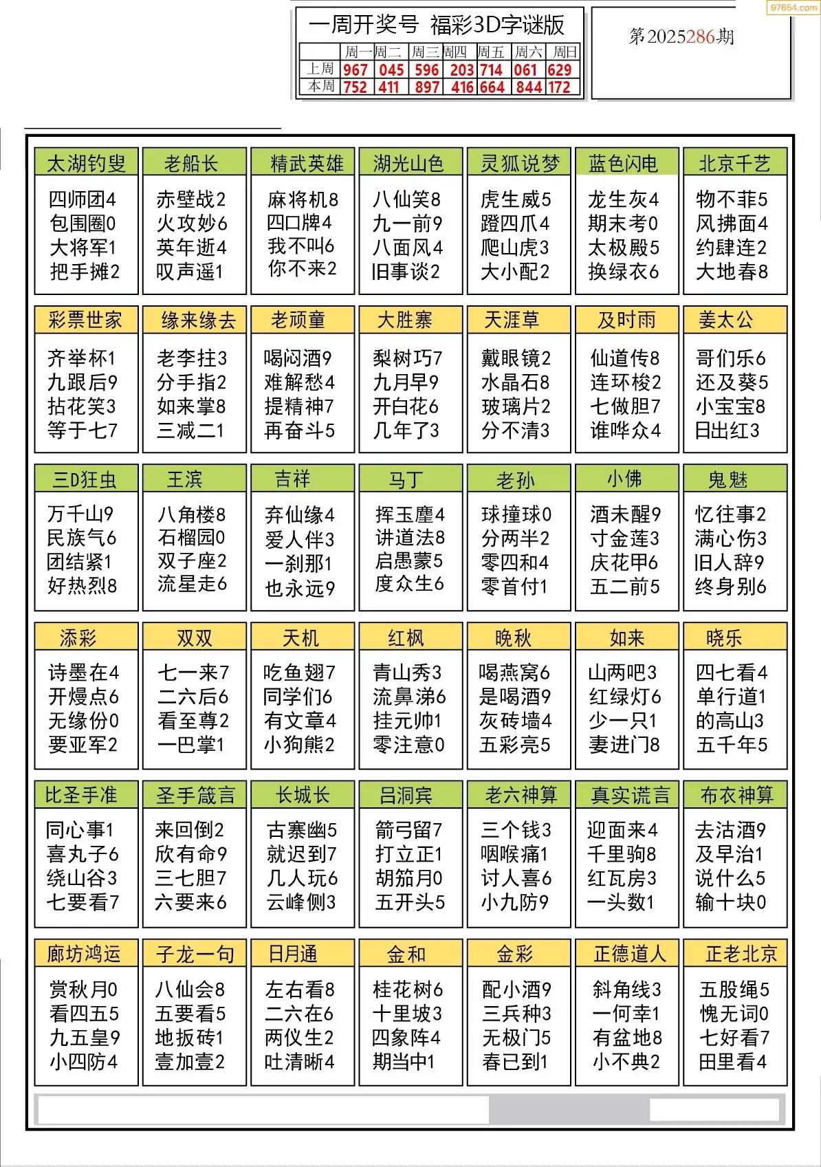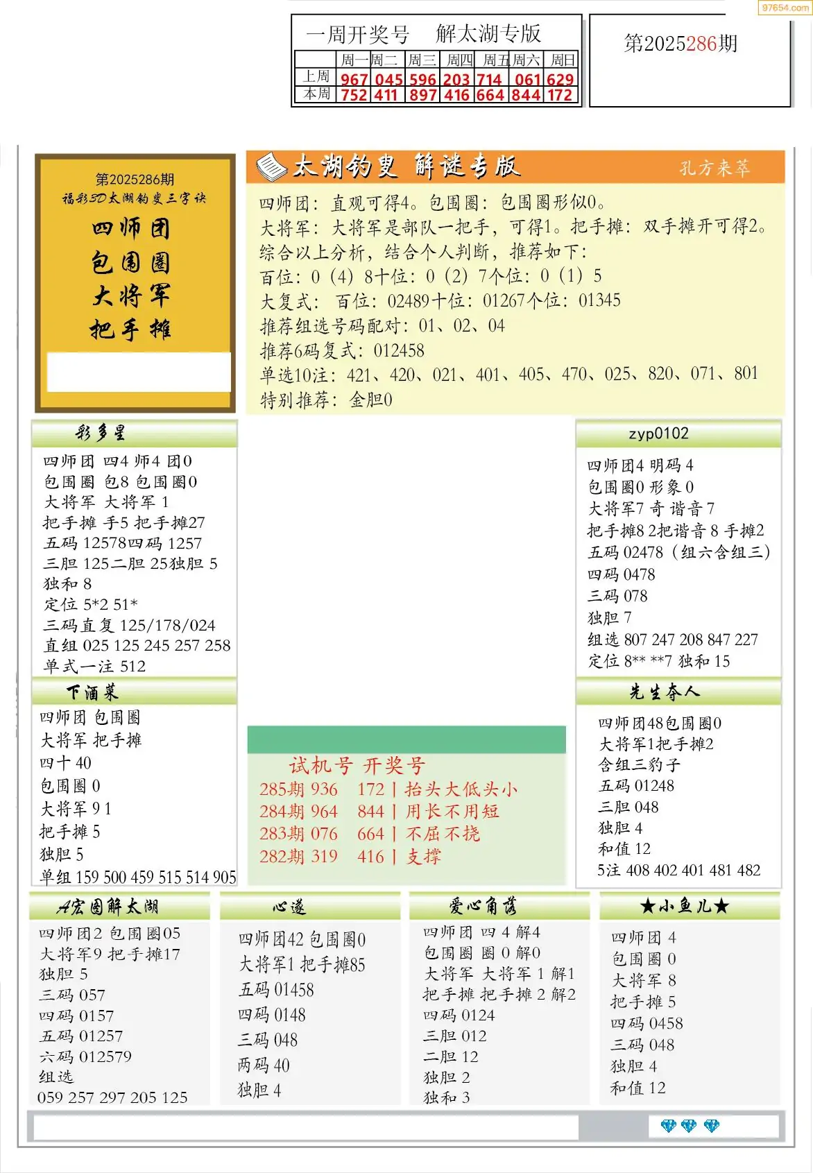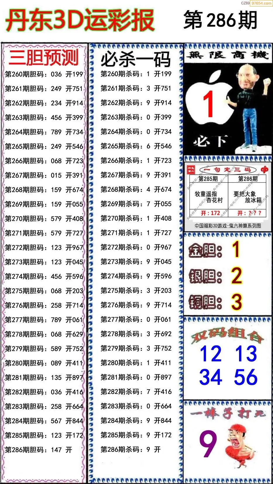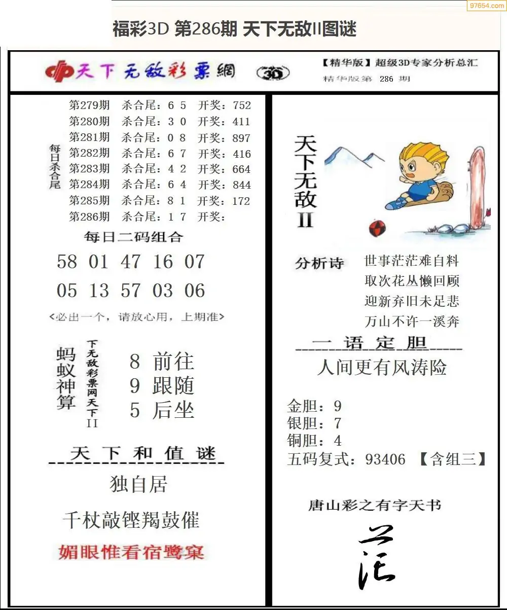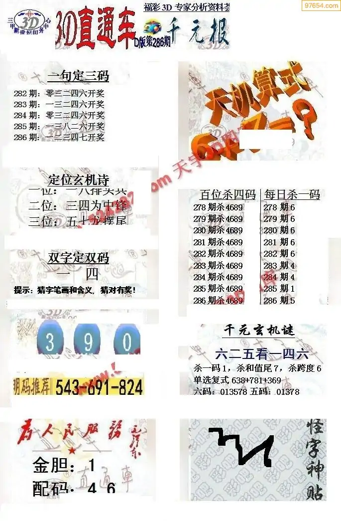 (8)25年286期今日3d各类彩报汇总