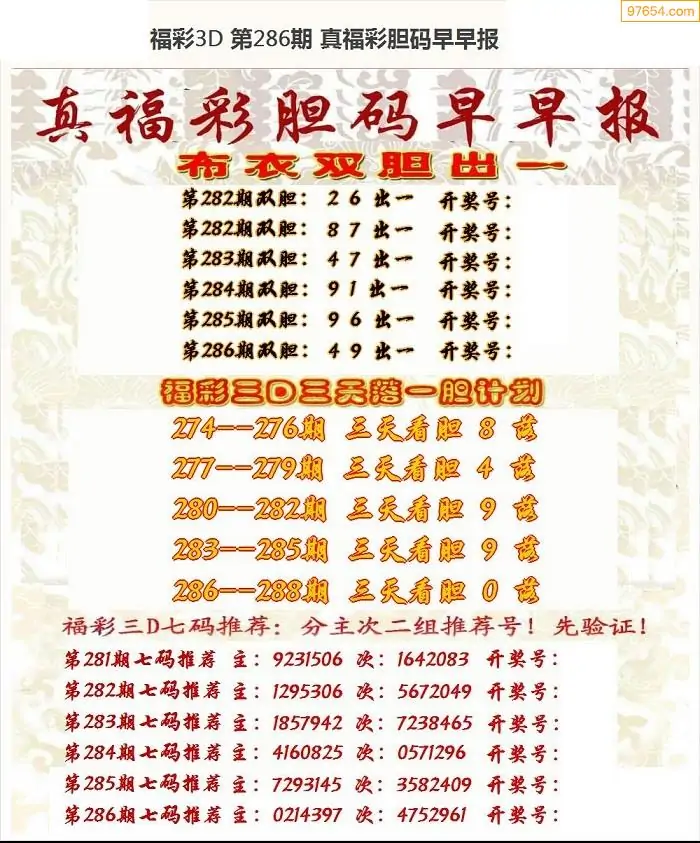 (8)25年286期今日3d各类彩报汇总