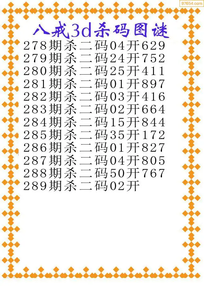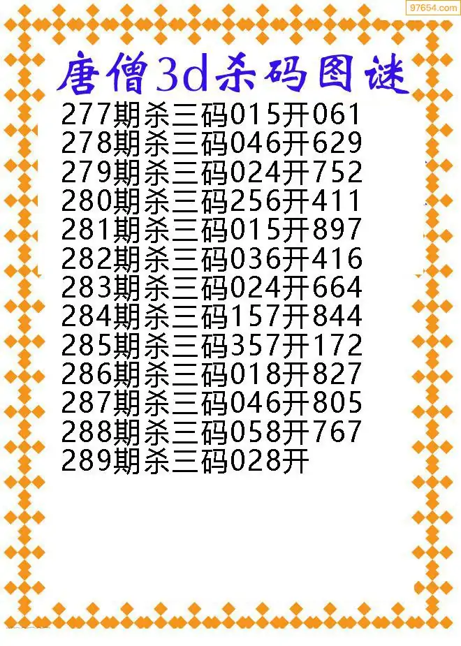(9)25年289期当期全站杀号定胆图