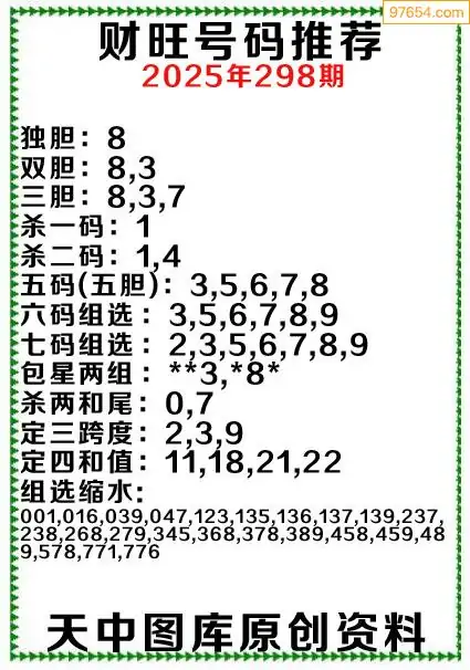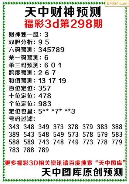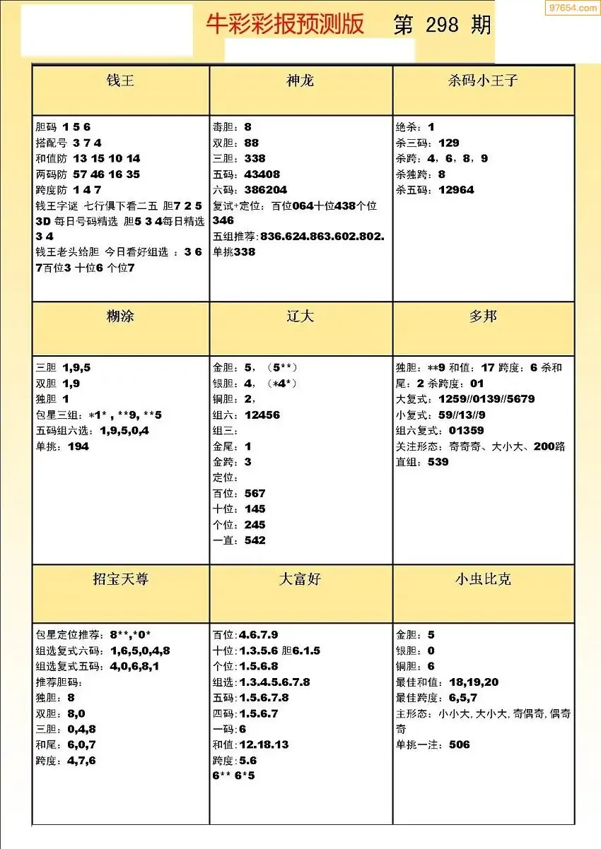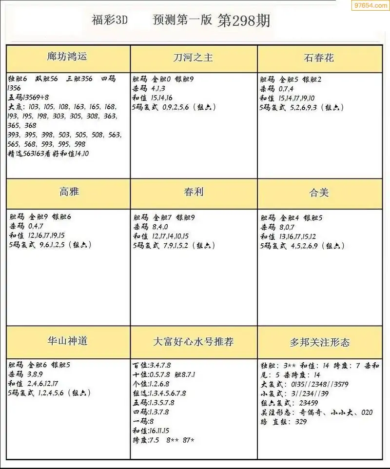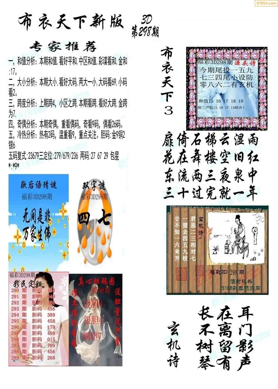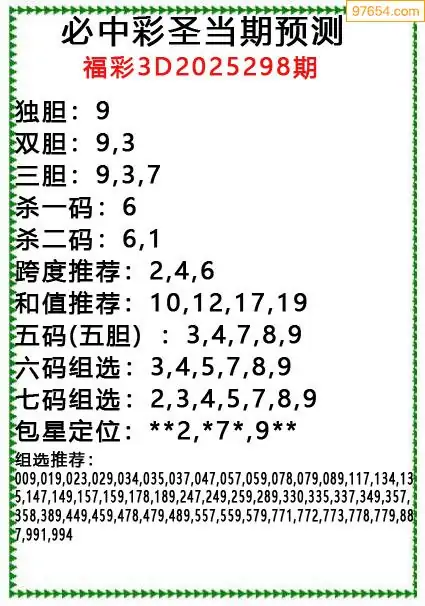 (8)25年298期今日3d各类彩报汇总