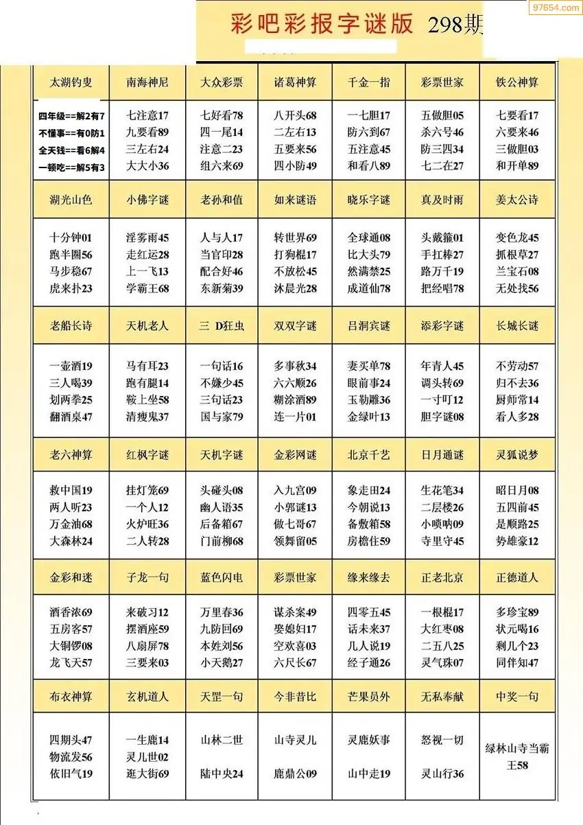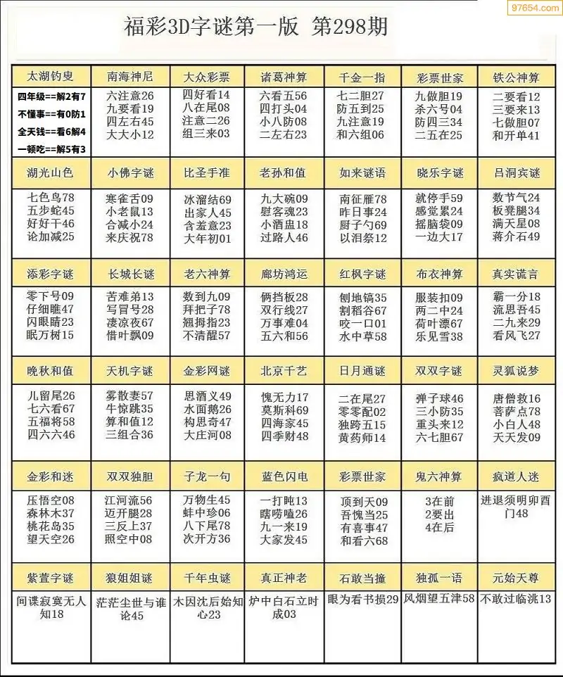 (5)25年298期福彩字谜图谜总汇