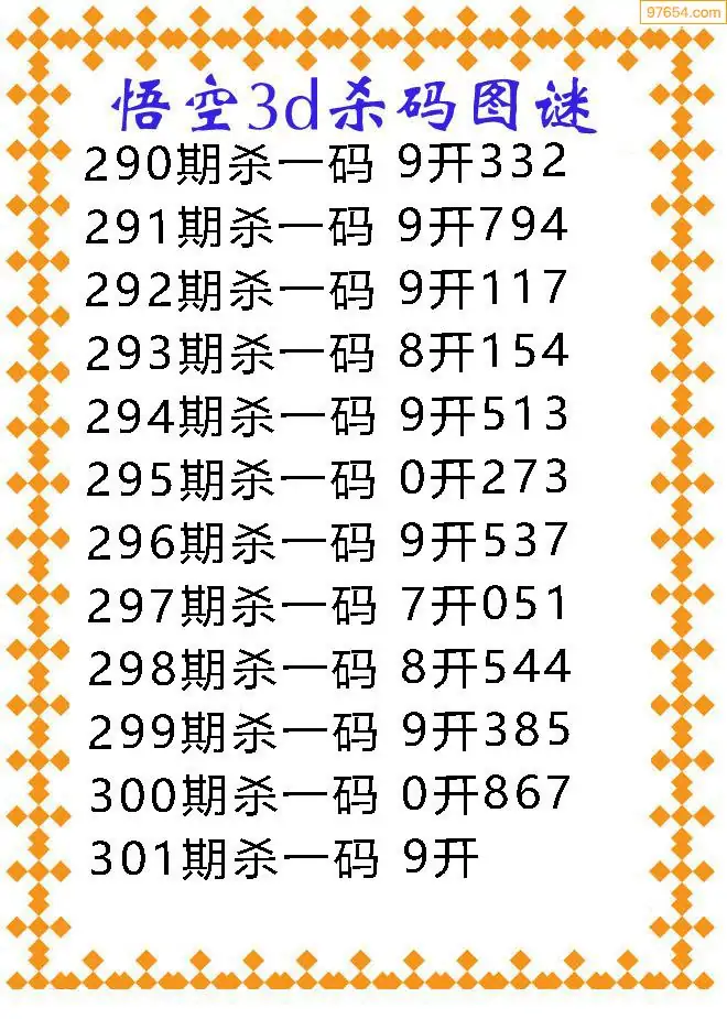 (9)25年301期当期全站杀号定胆图