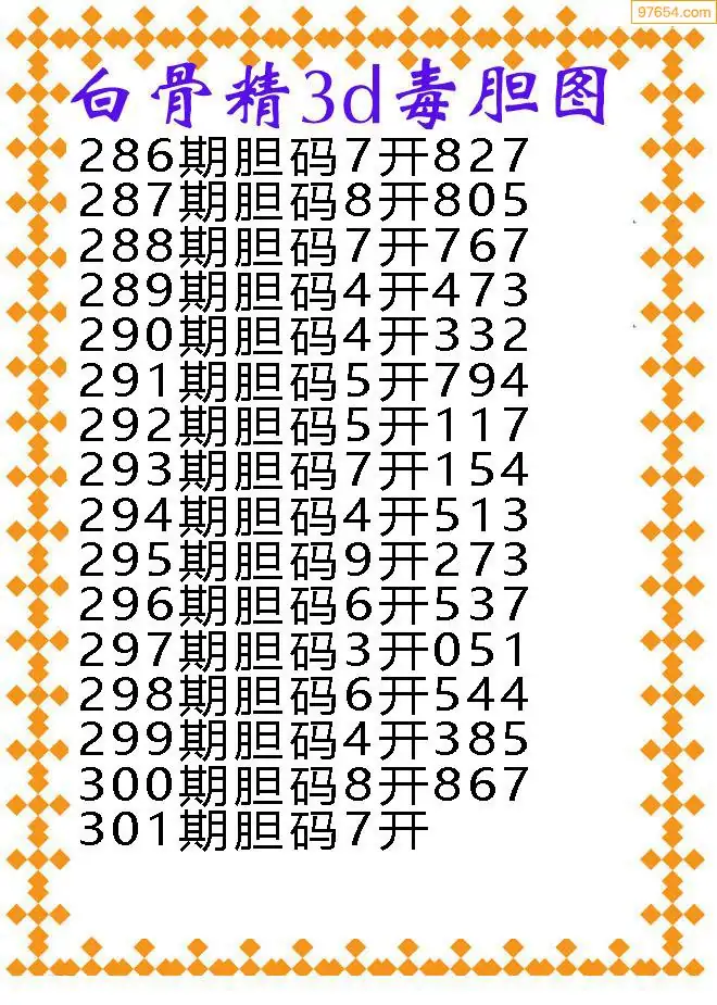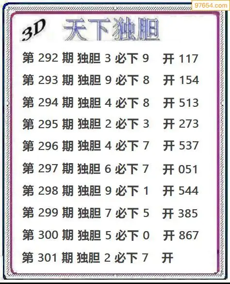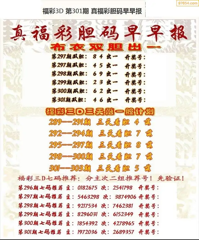 (8)25年301期今日3d各类彩报汇总