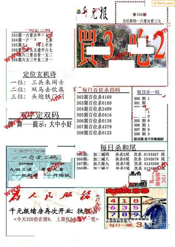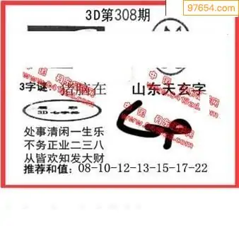 (8)25年308期今日3d各类彩报汇总