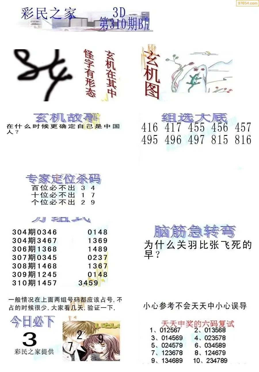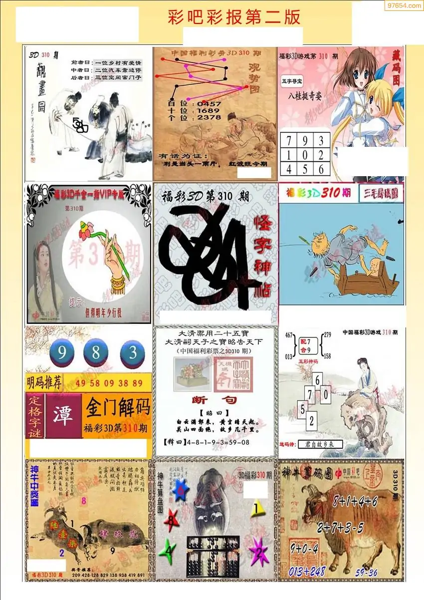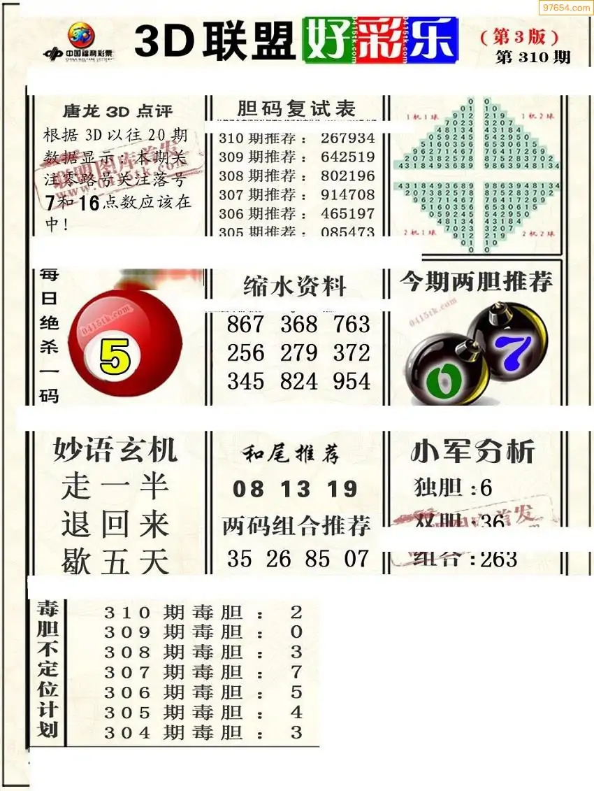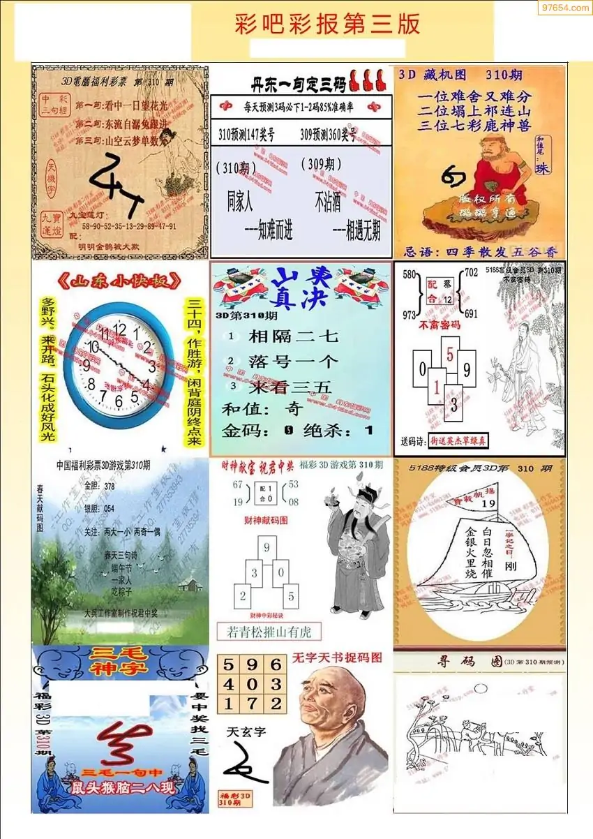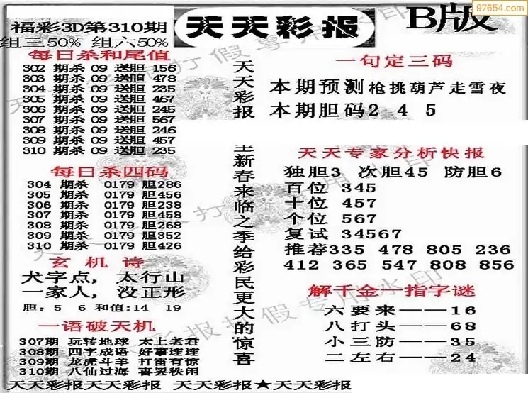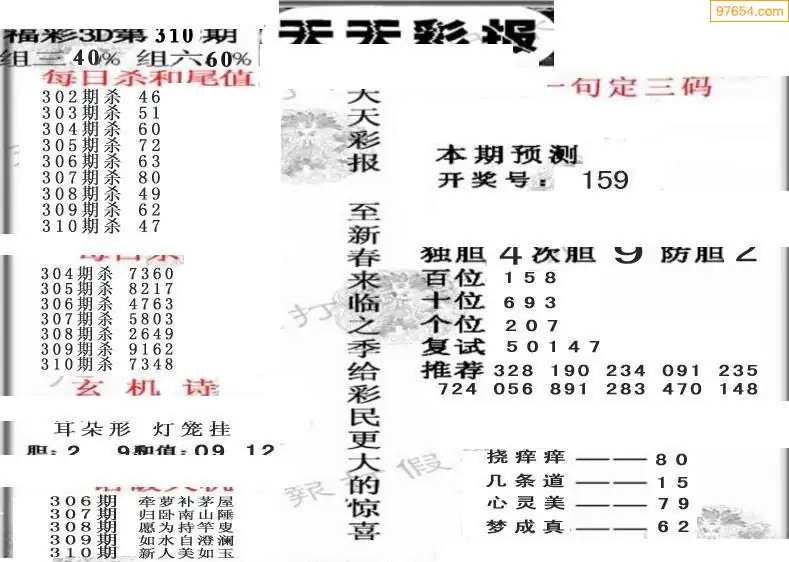 (8)25年310期今日3d各类彩报汇总