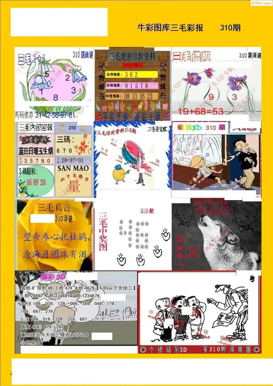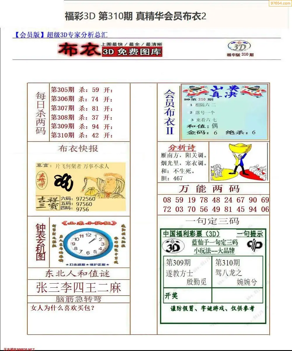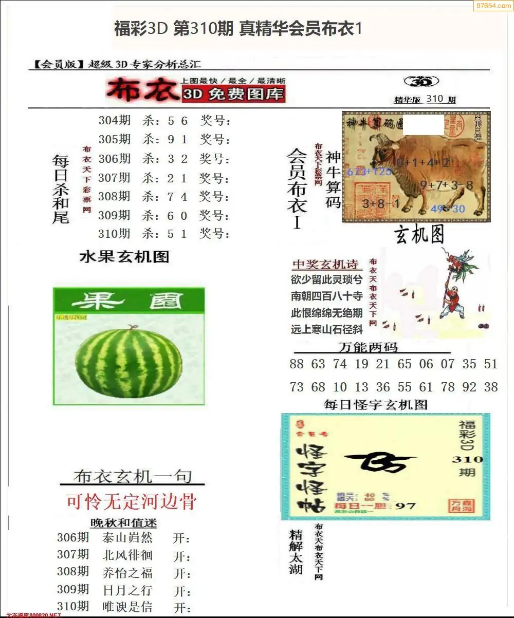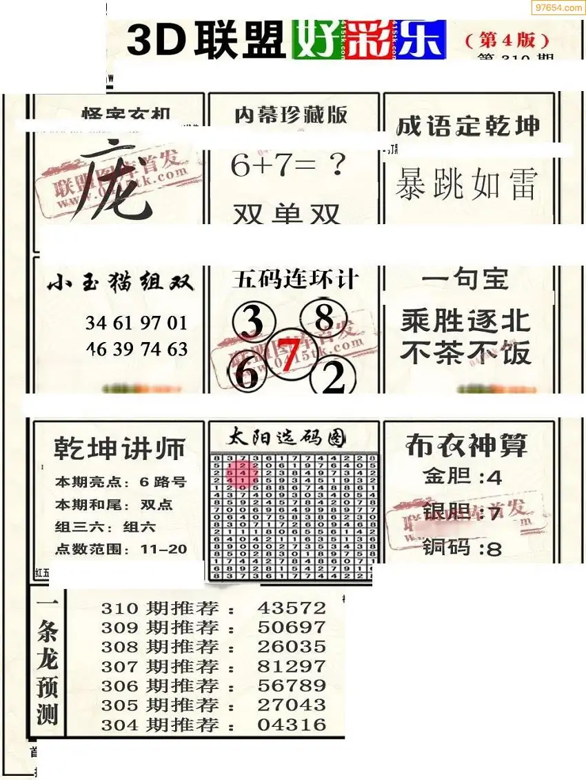 (8)25年310期今日3d各类彩报汇总
