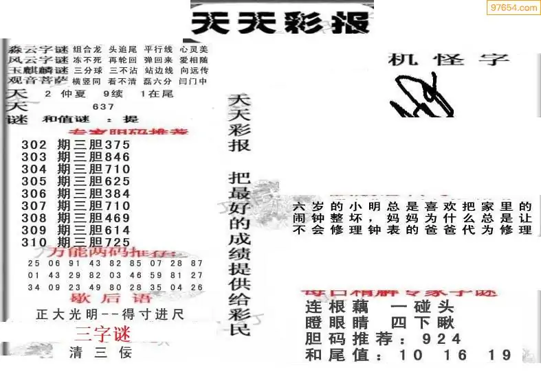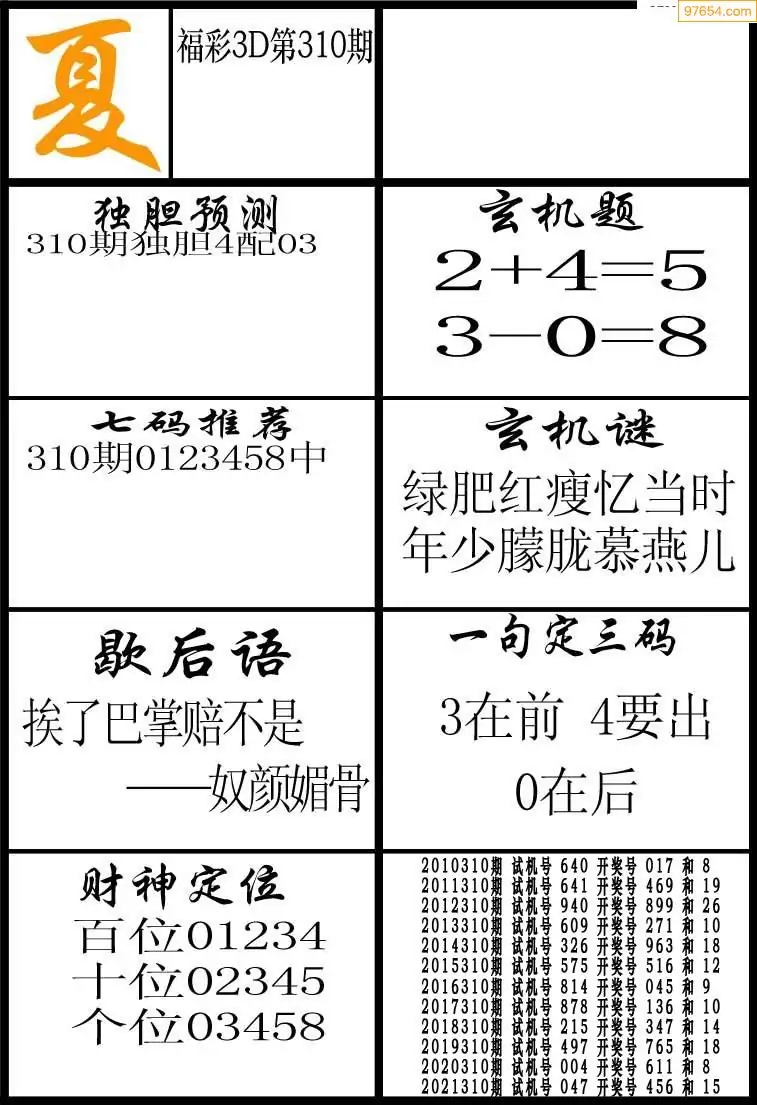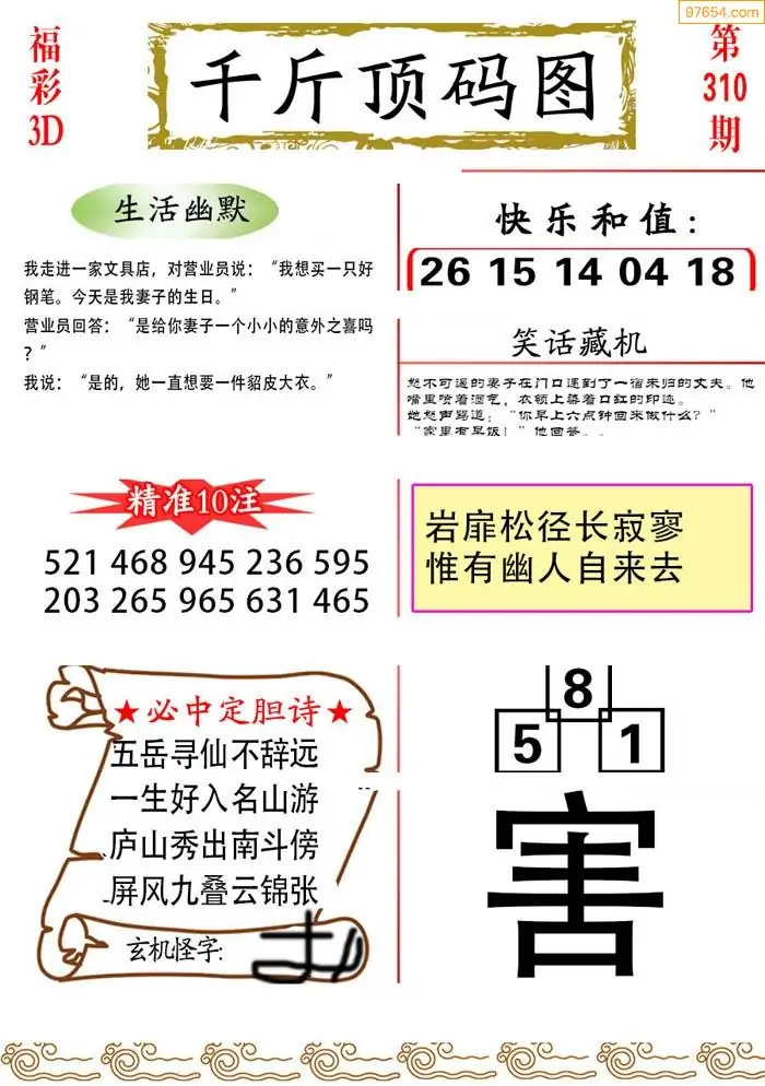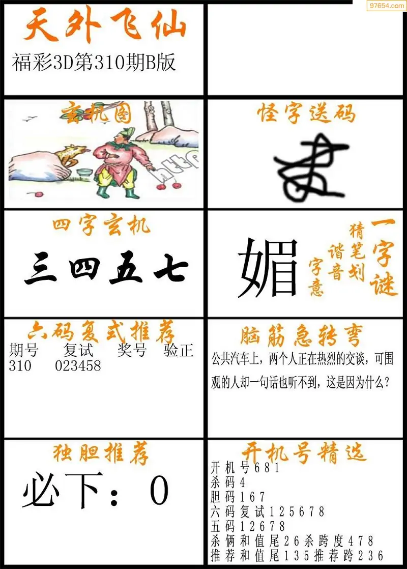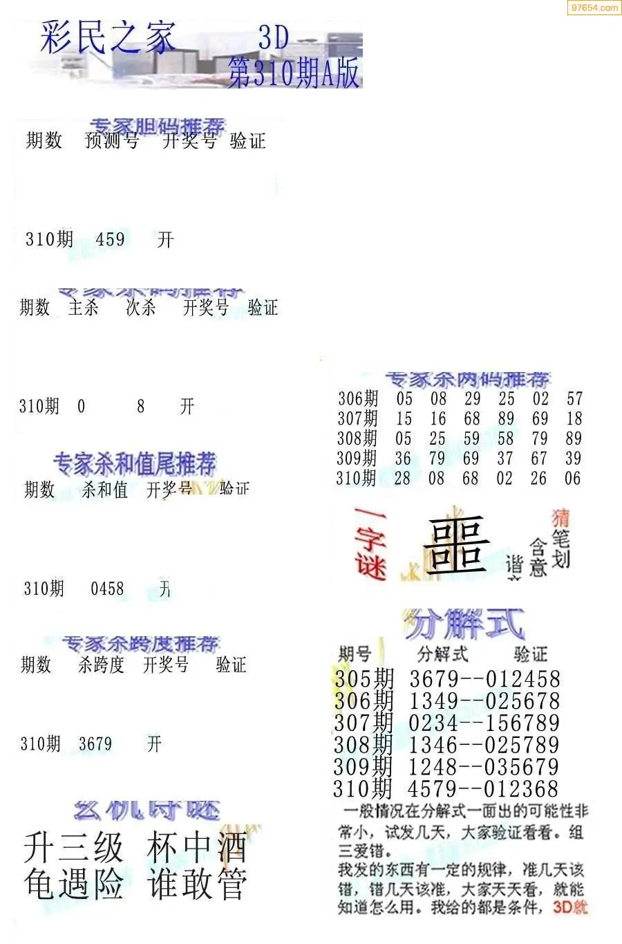 (5)25年310期福彩字谜图谜总汇