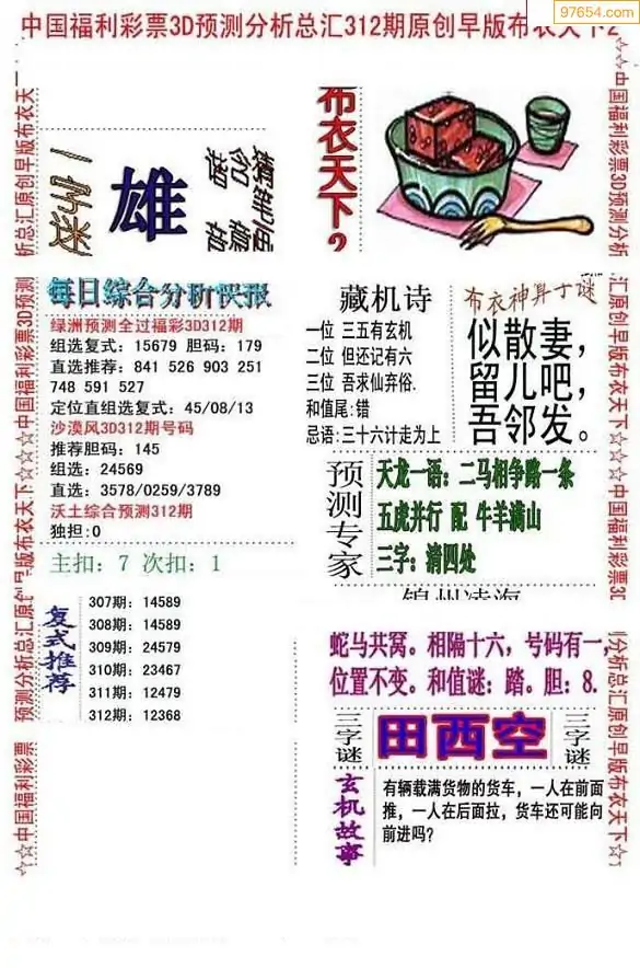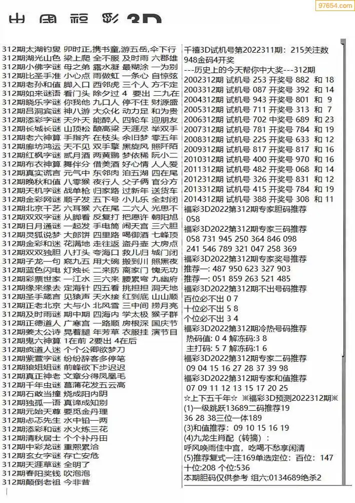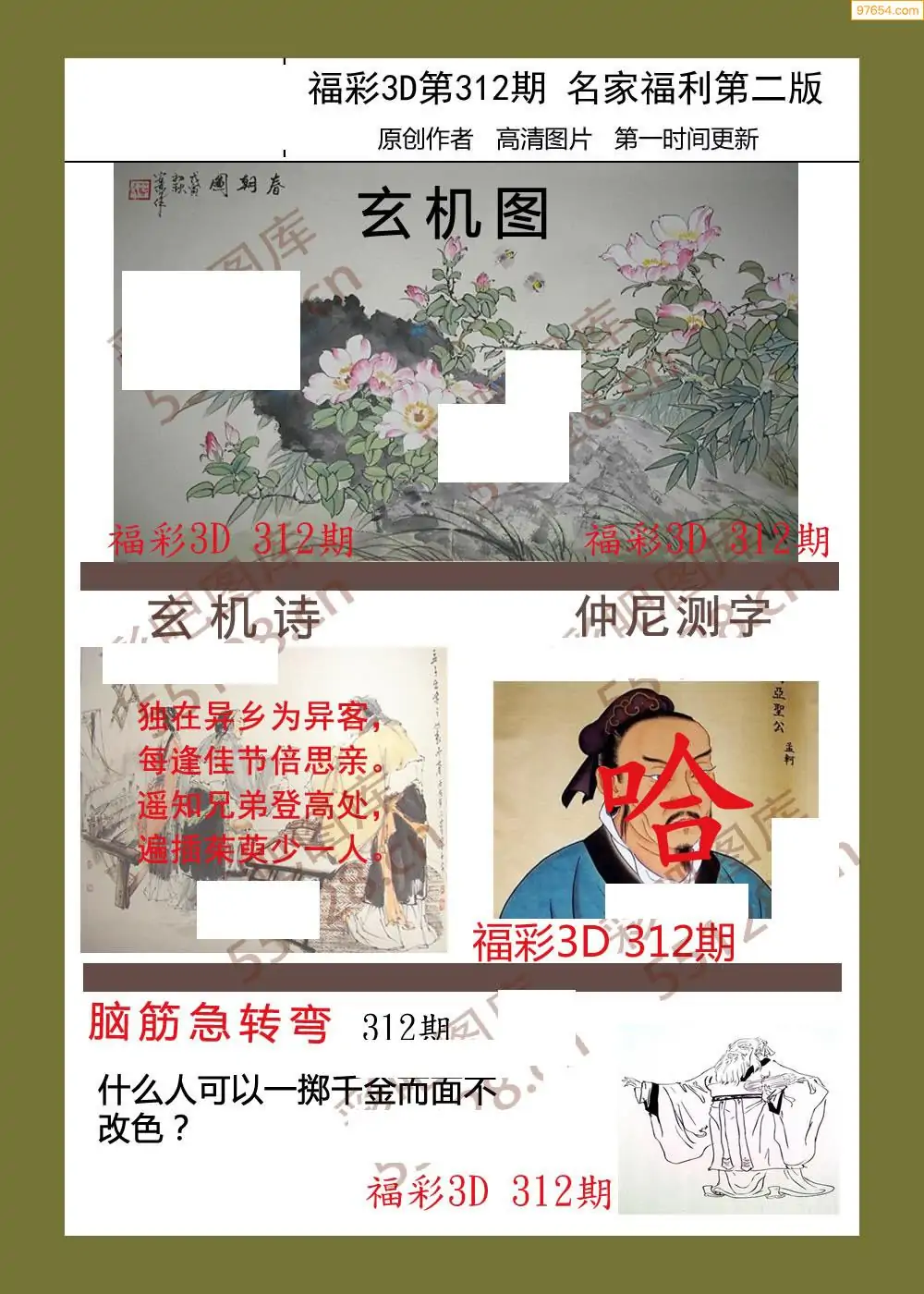 (1)25年312期今日3d图谜总汇