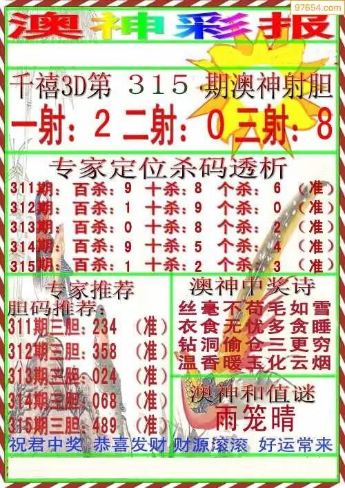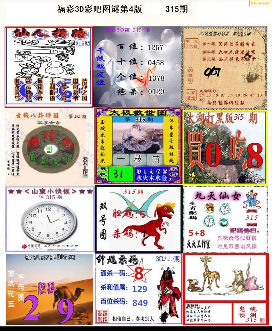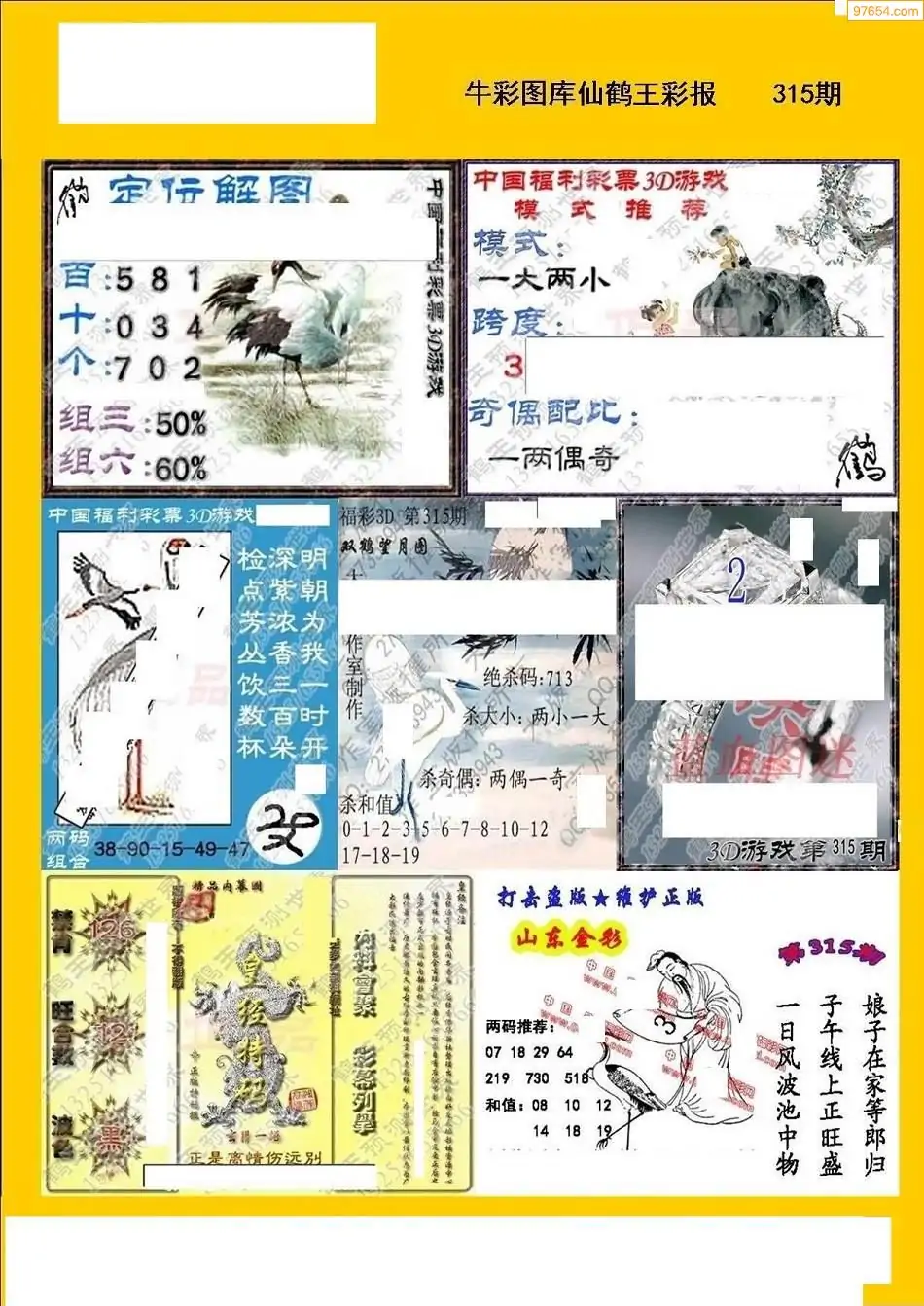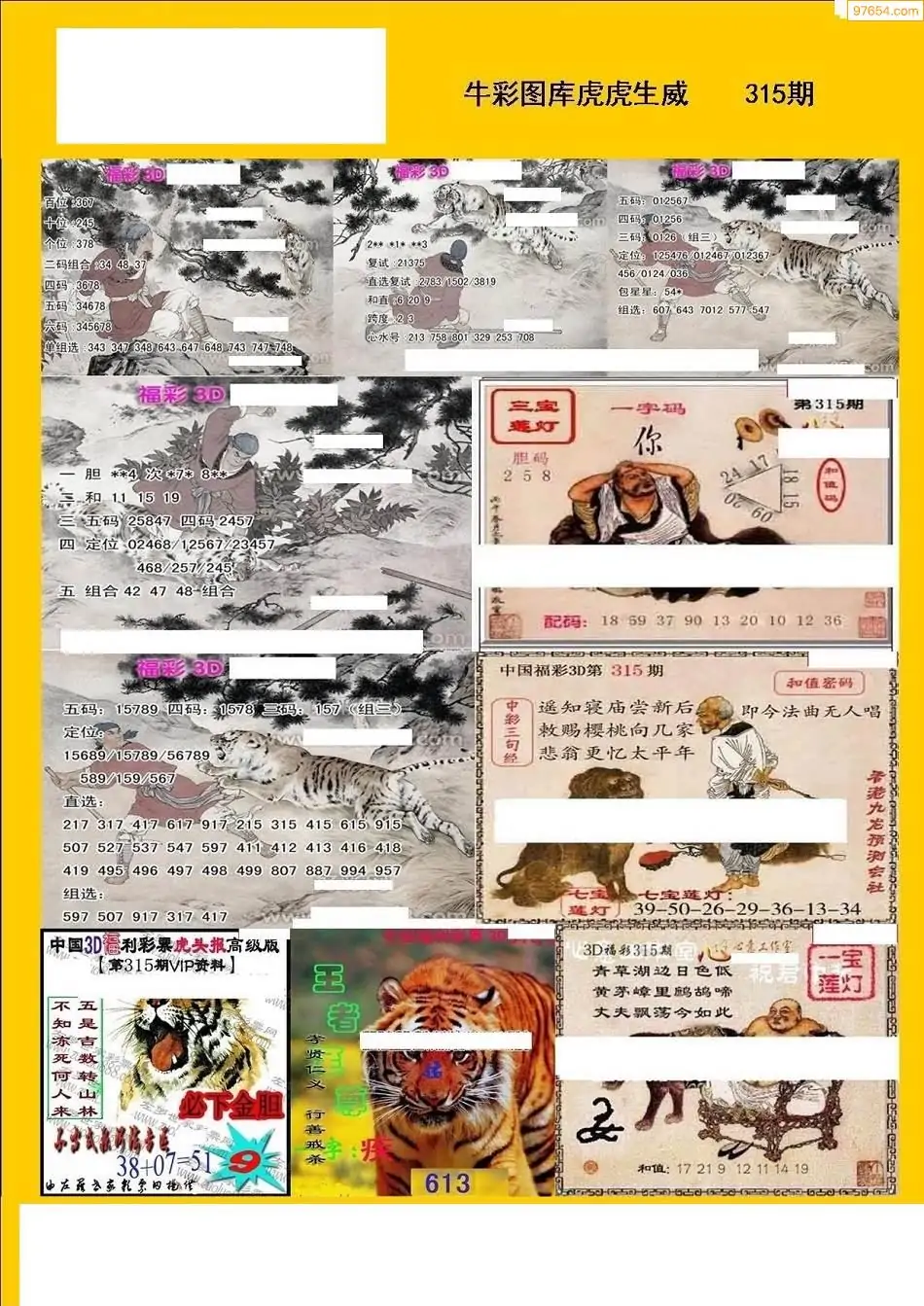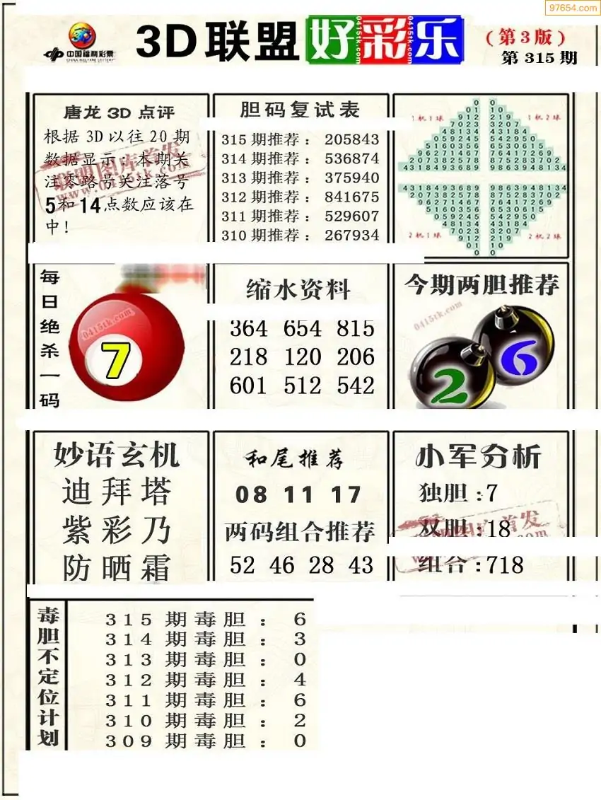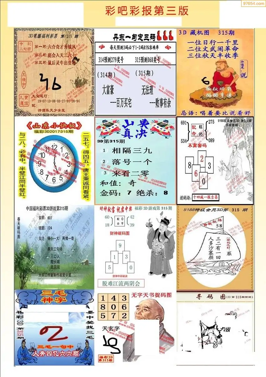 (8)25年315期今日3d各类彩报汇总