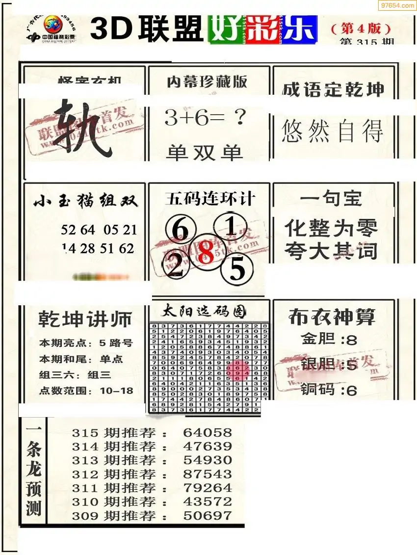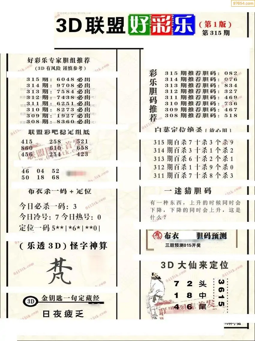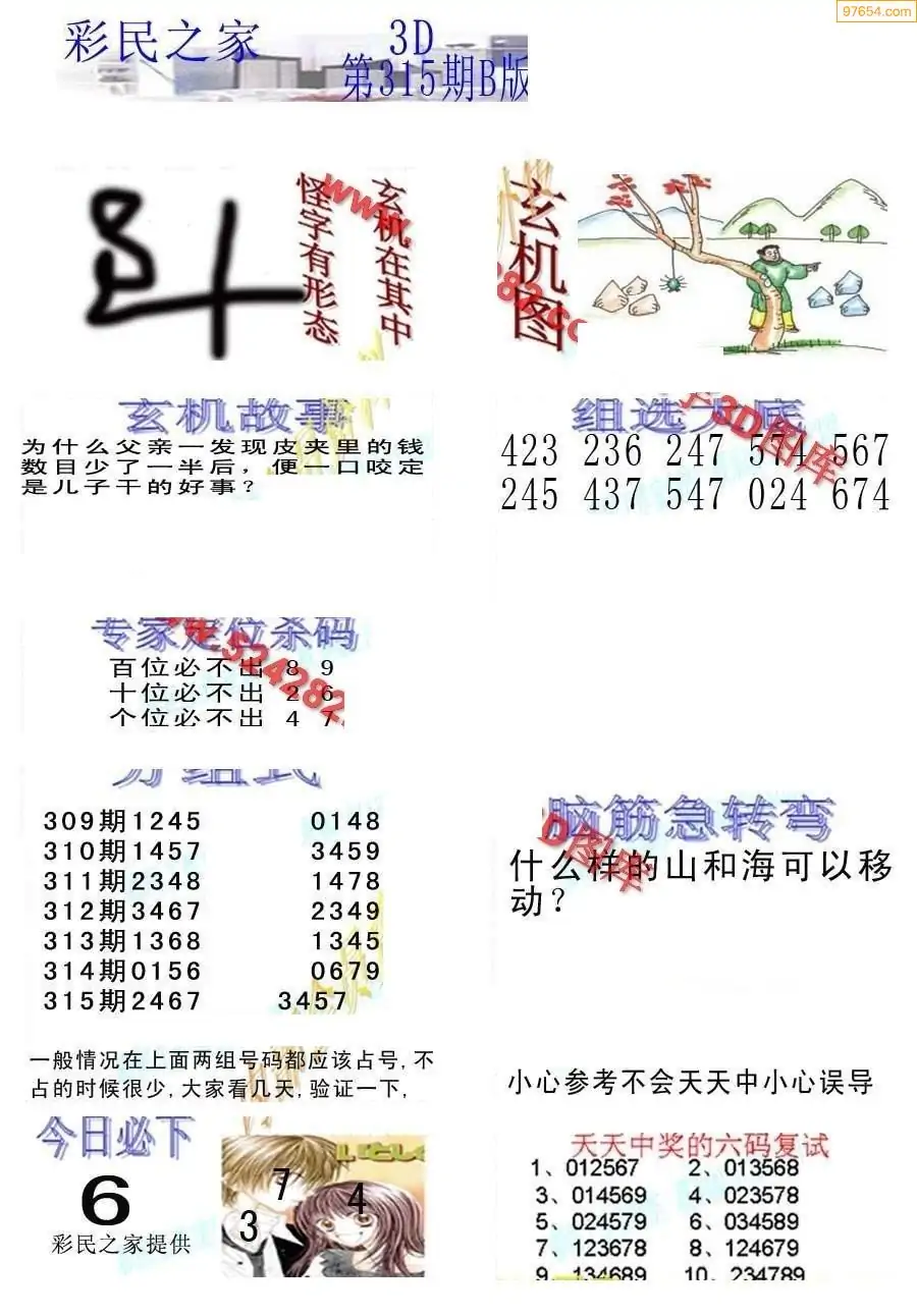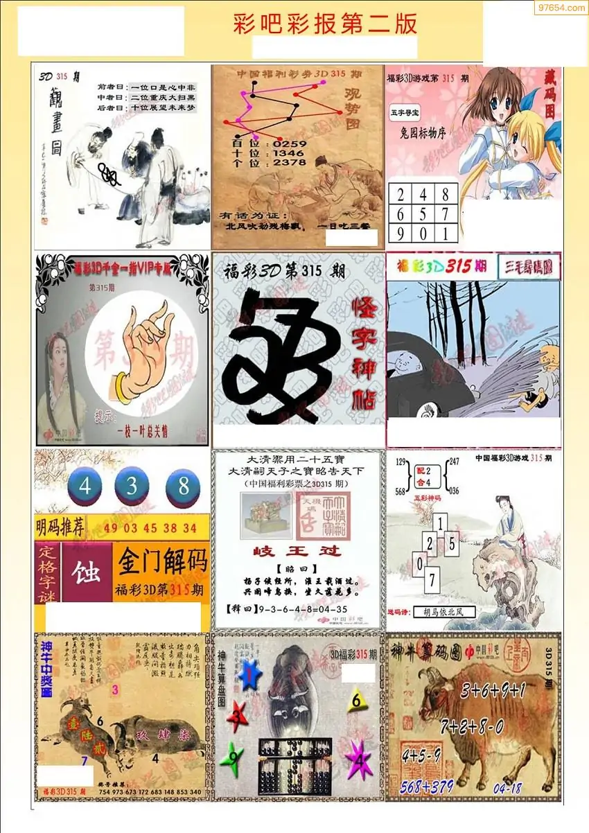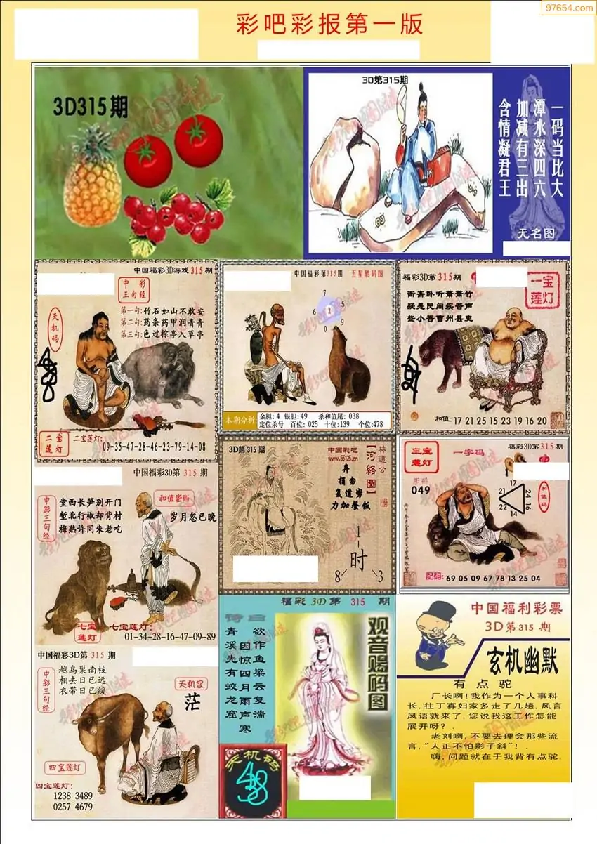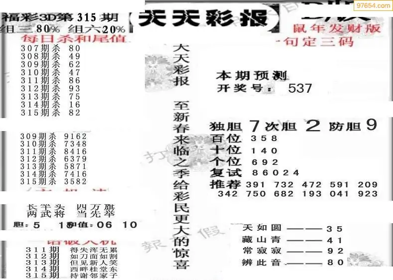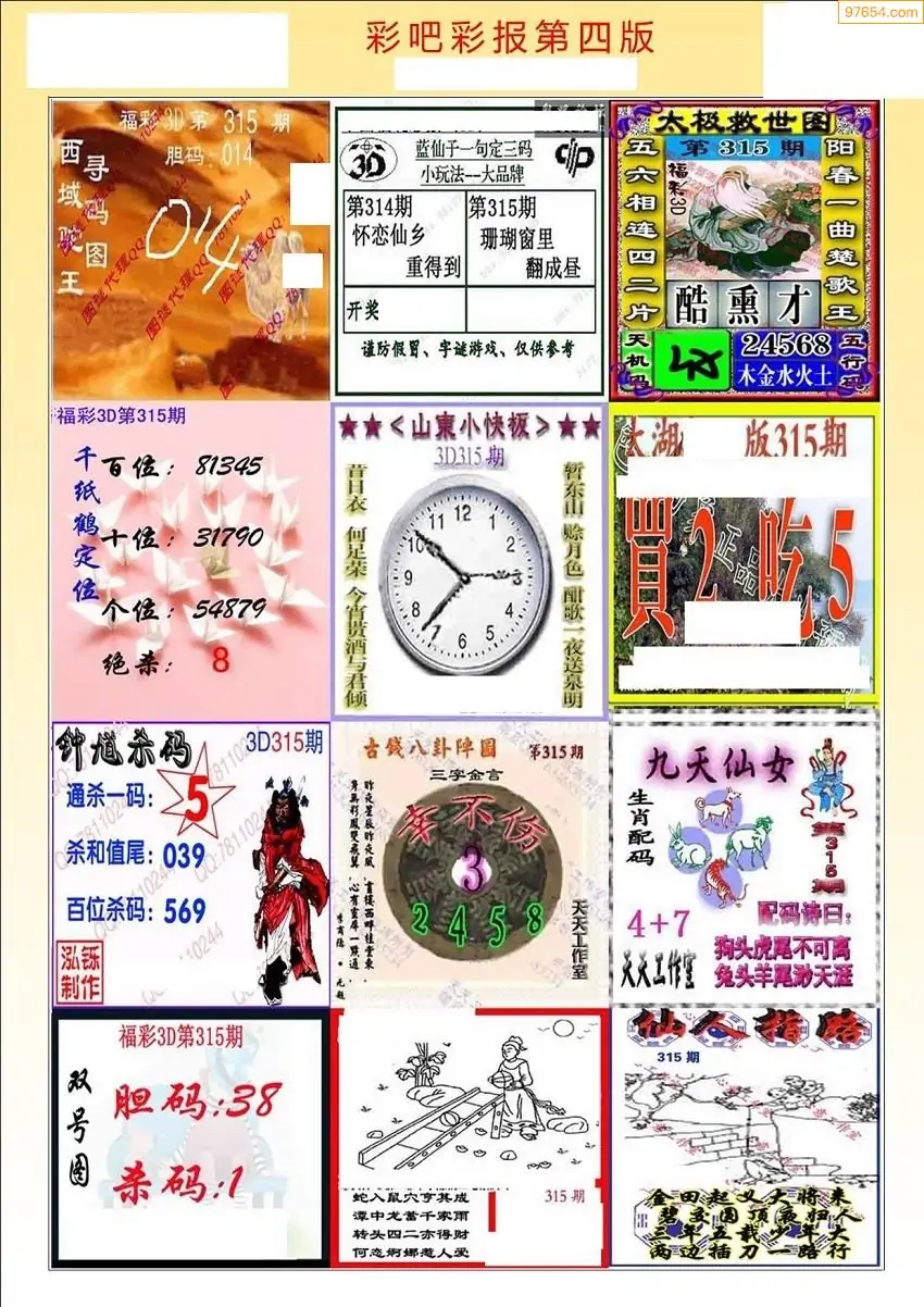 (8)25年315期今日3d各类彩报汇总