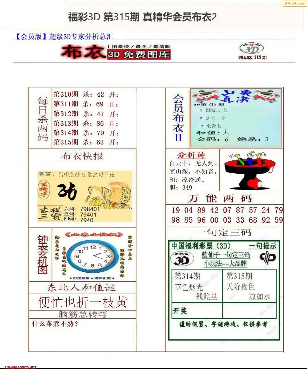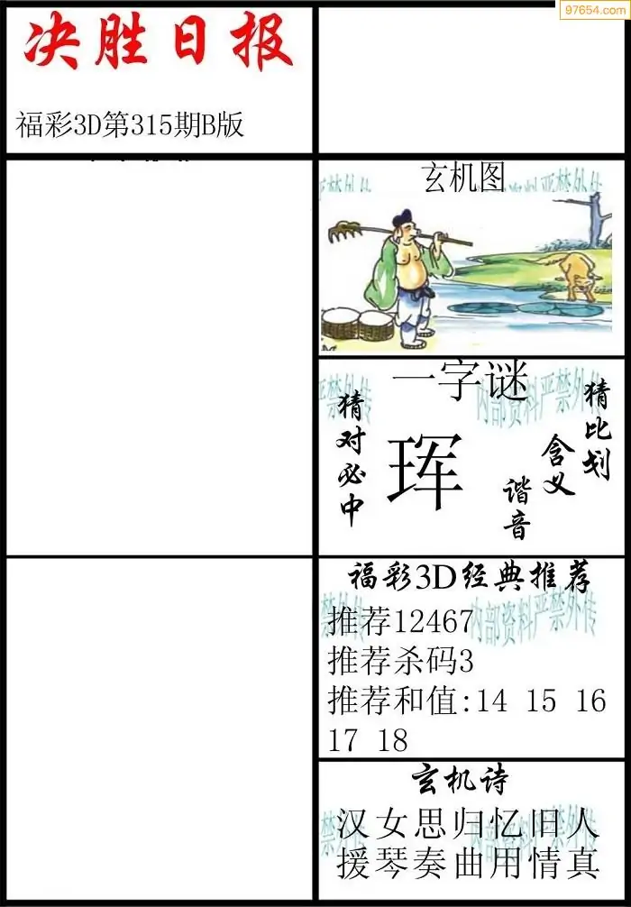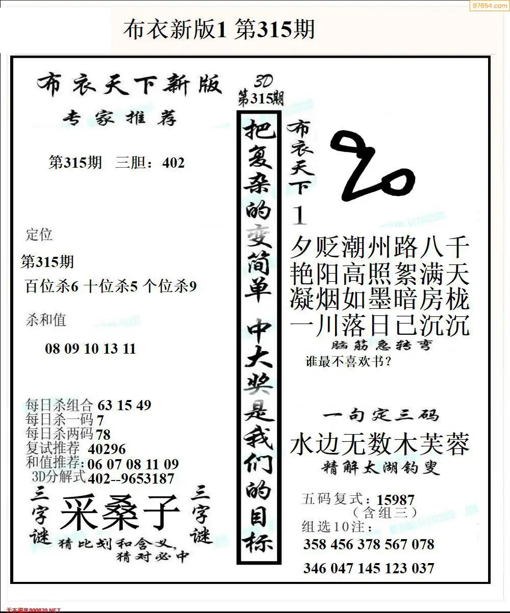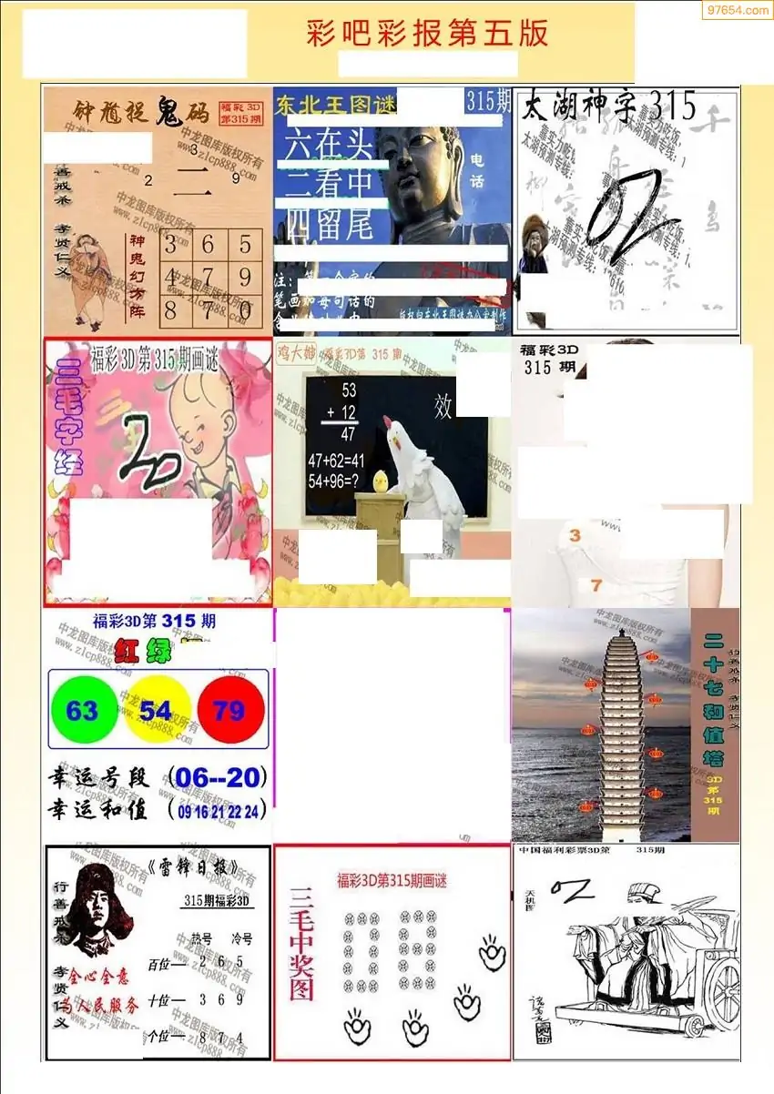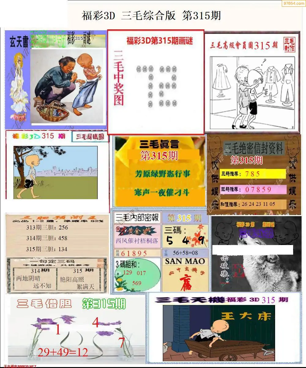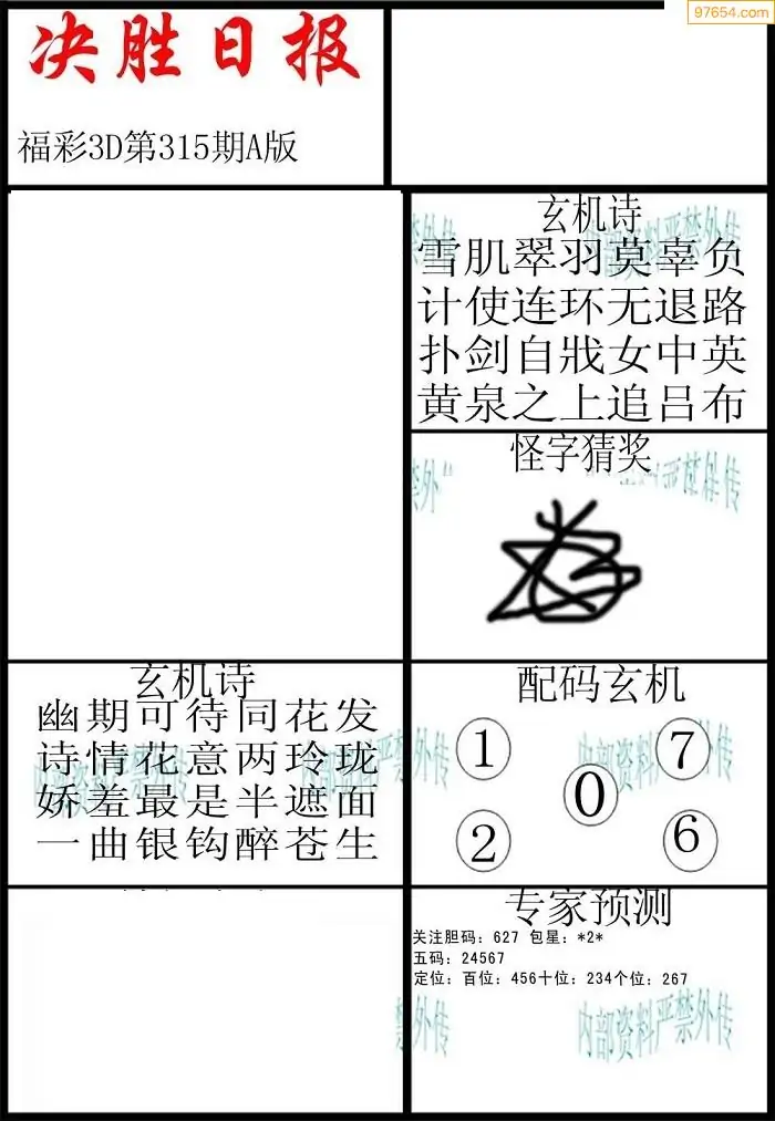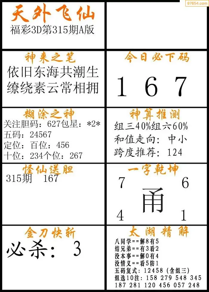 (8)25年315期今日3d各类彩报汇总