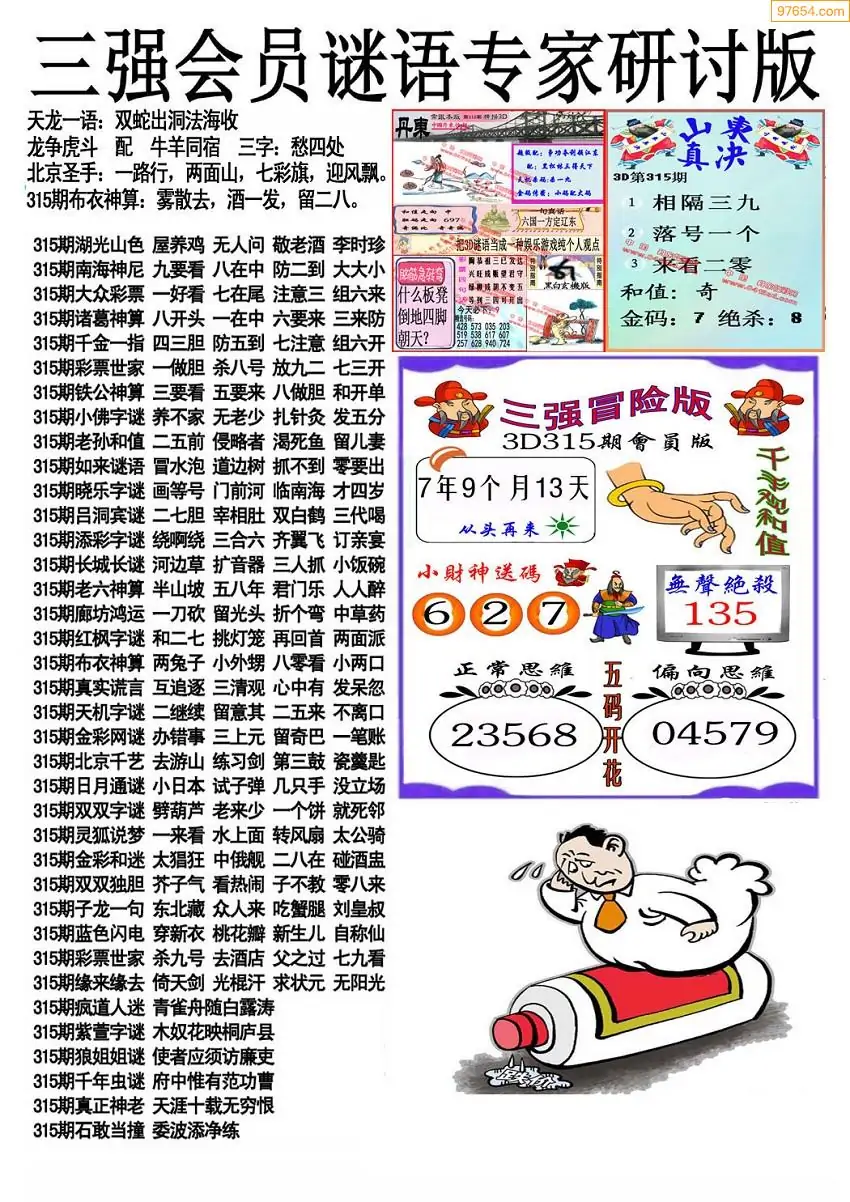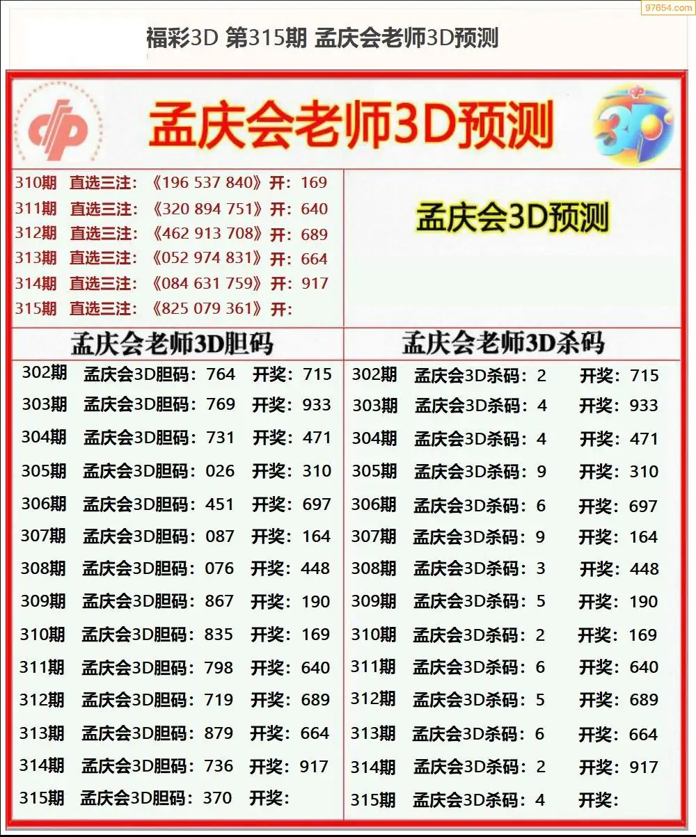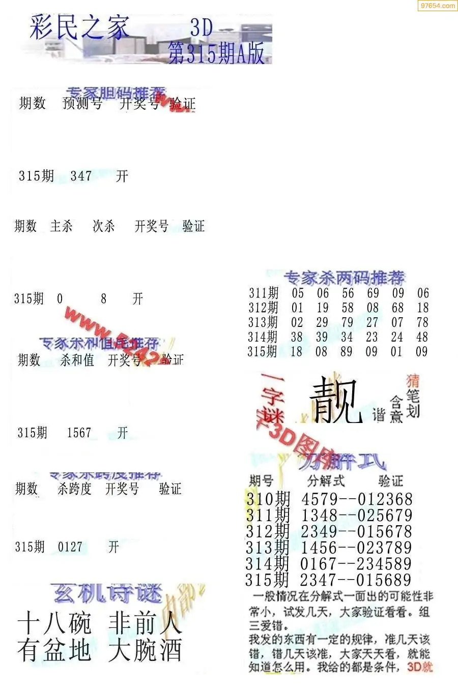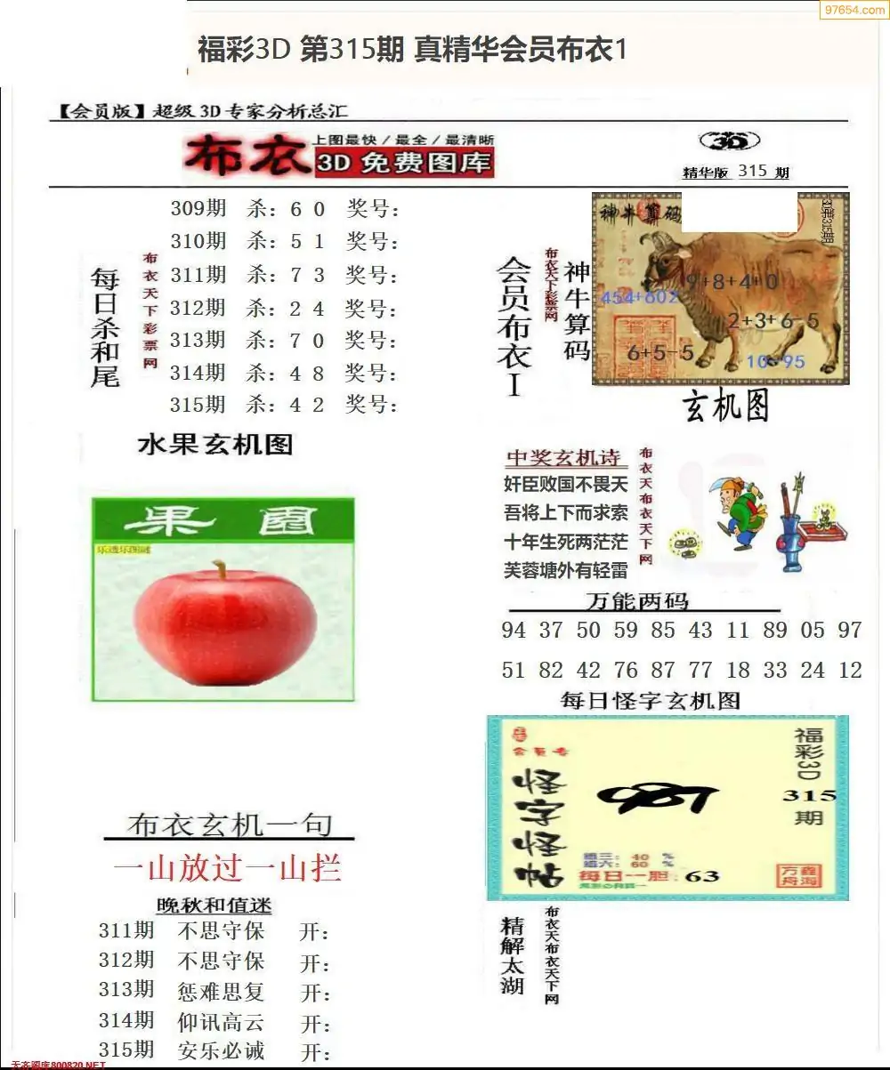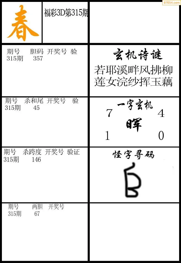 (8)25年315期今日3d各类彩报汇总
