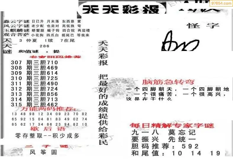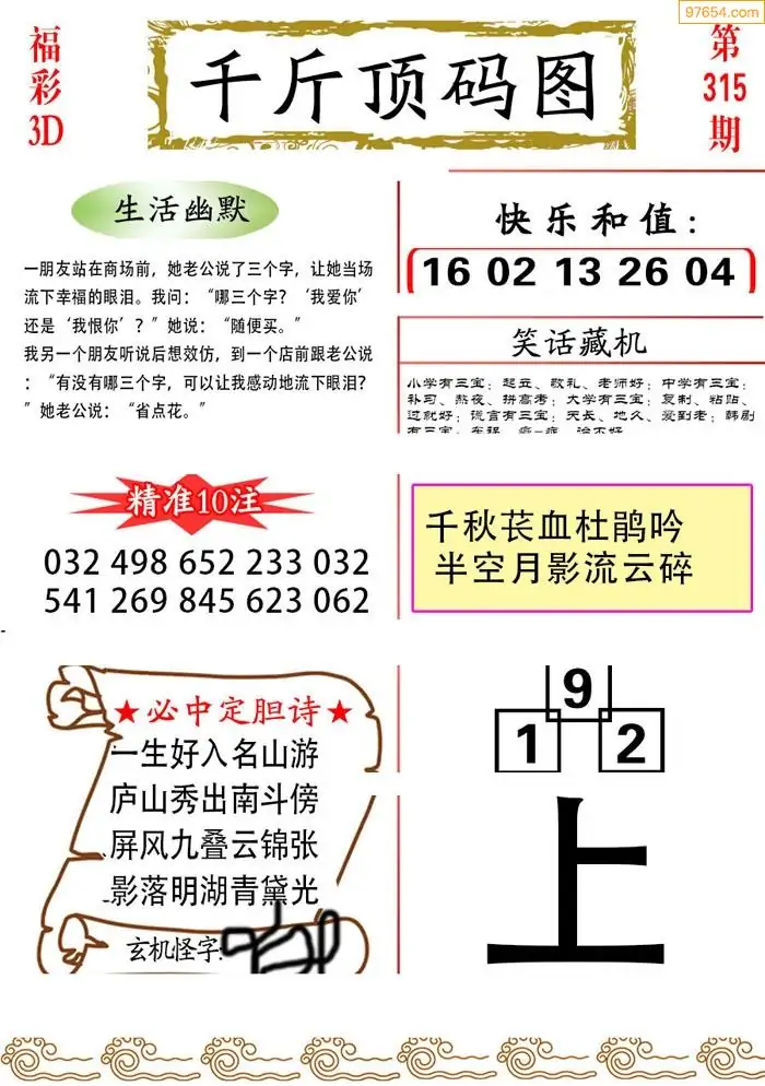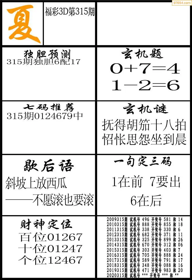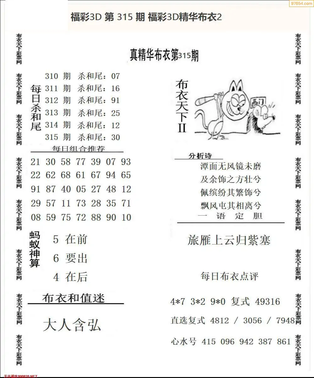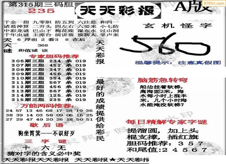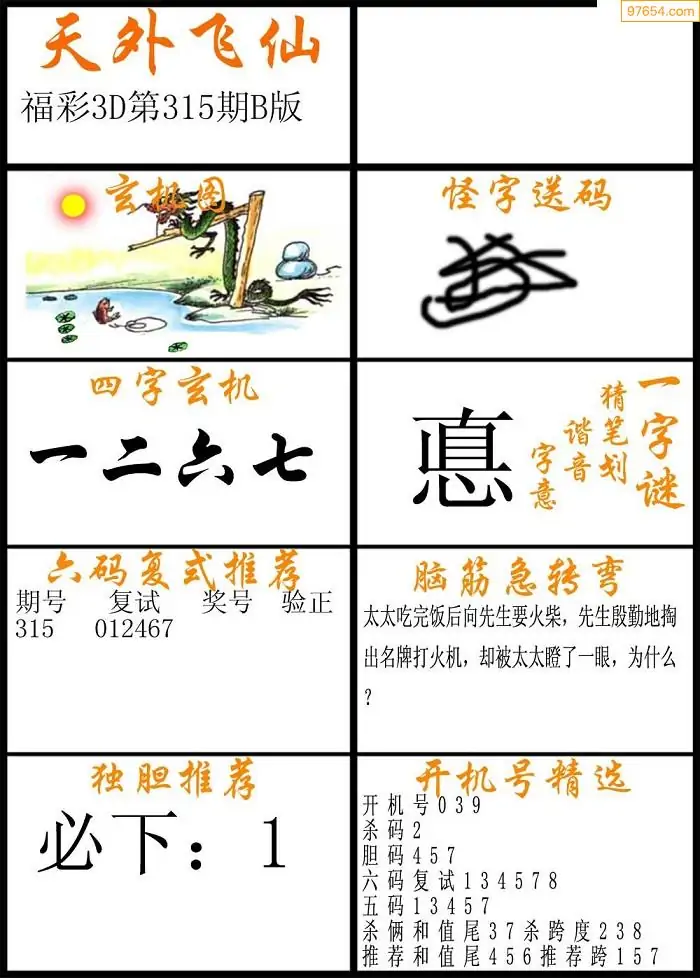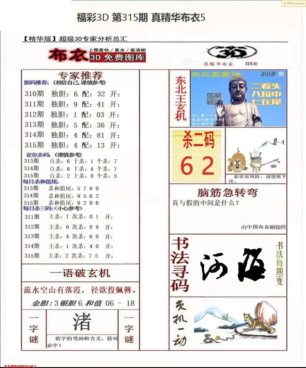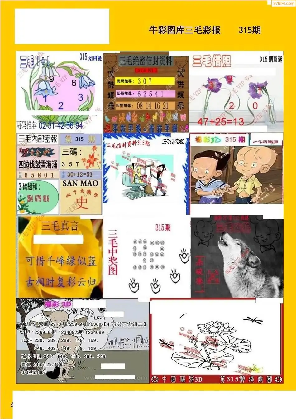 (8)25年315期今日3d各类彩报汇总