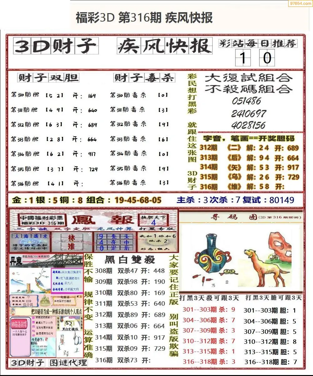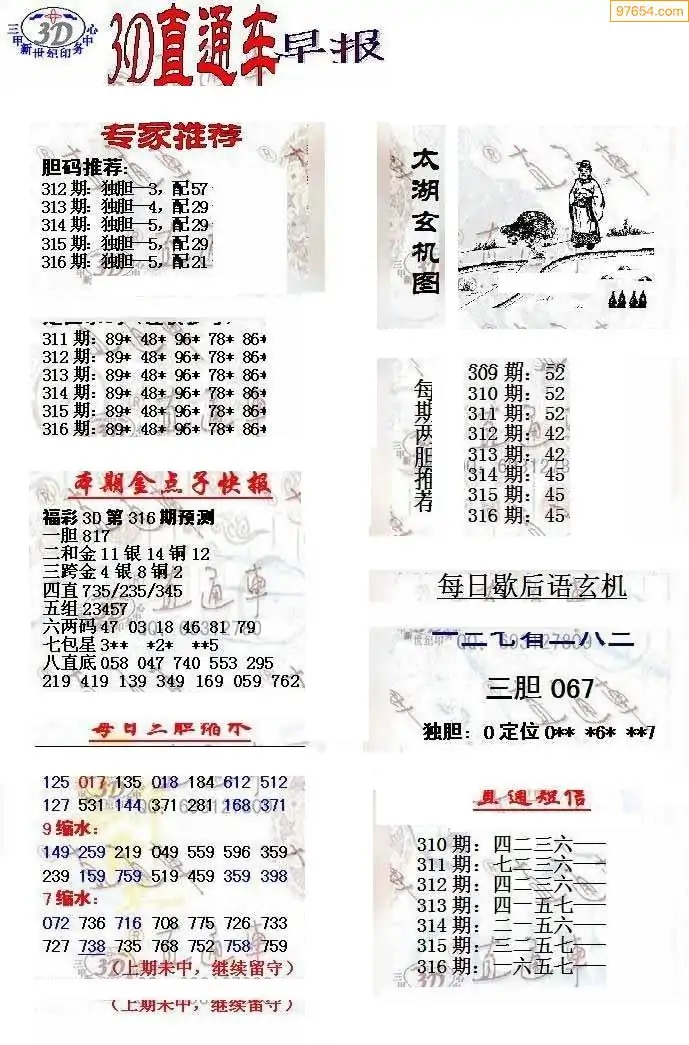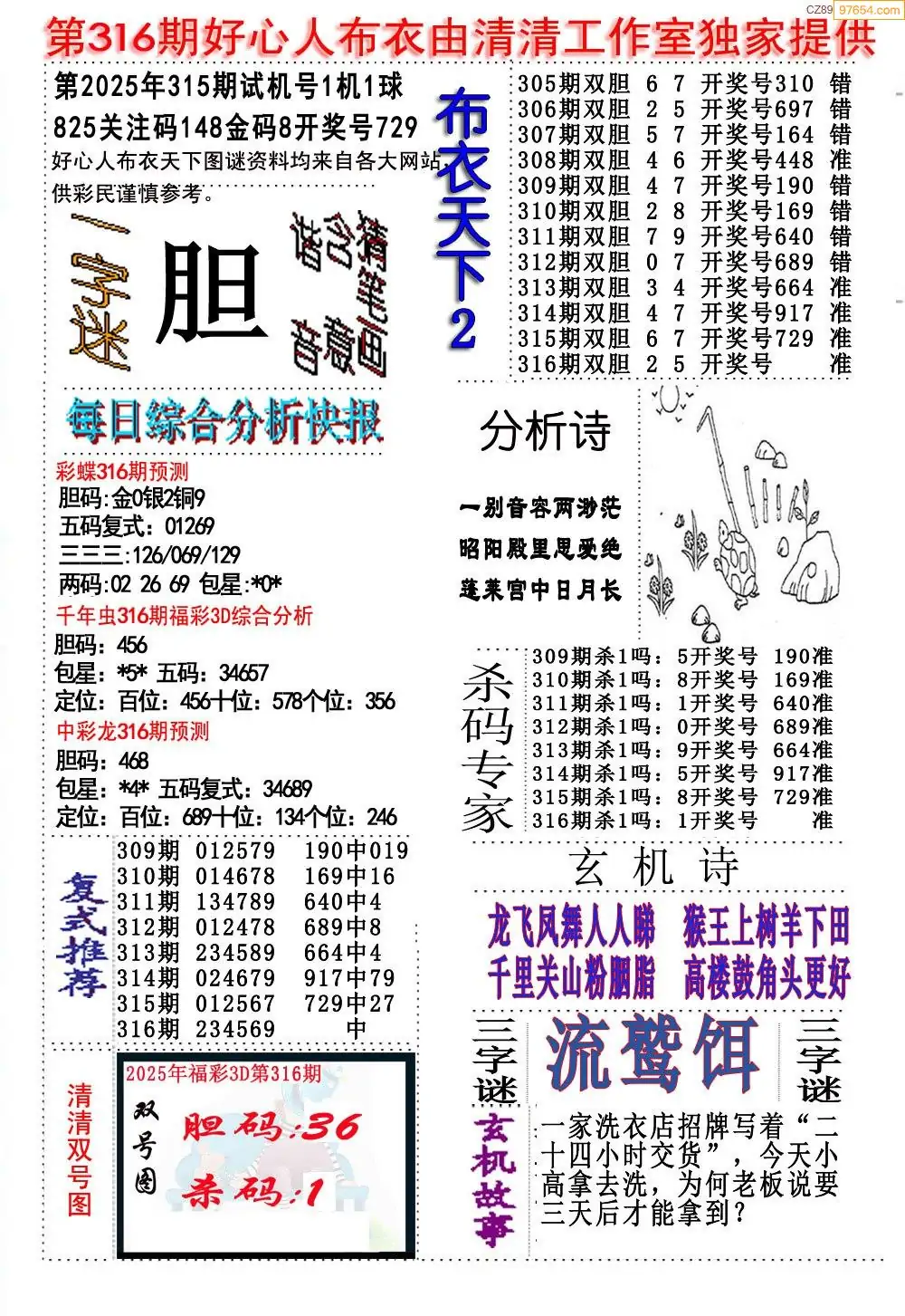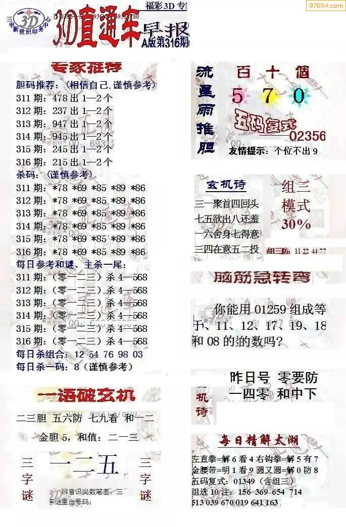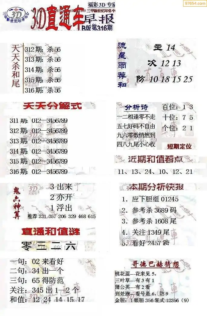 (8)25年316期今日3d各类彩报汇总