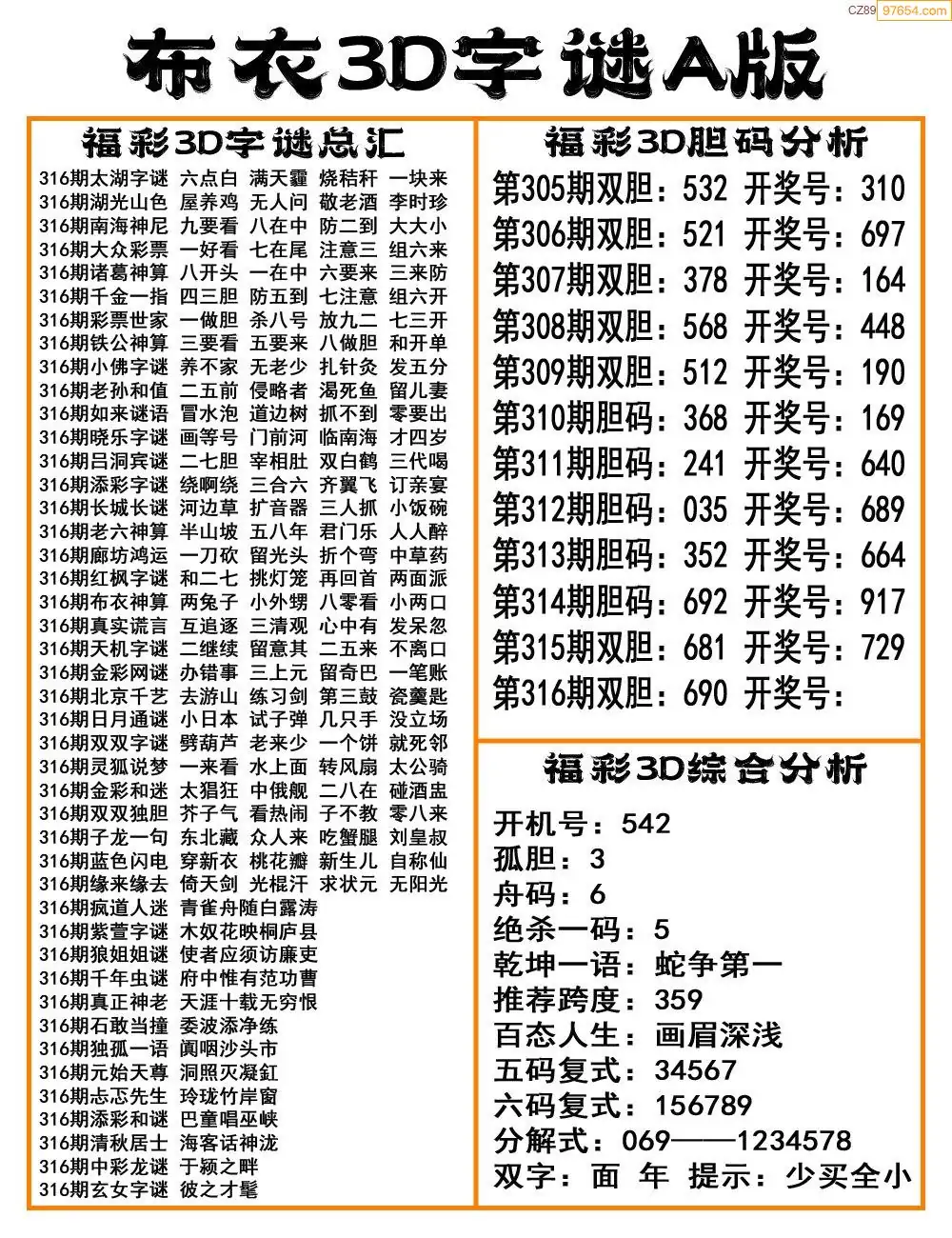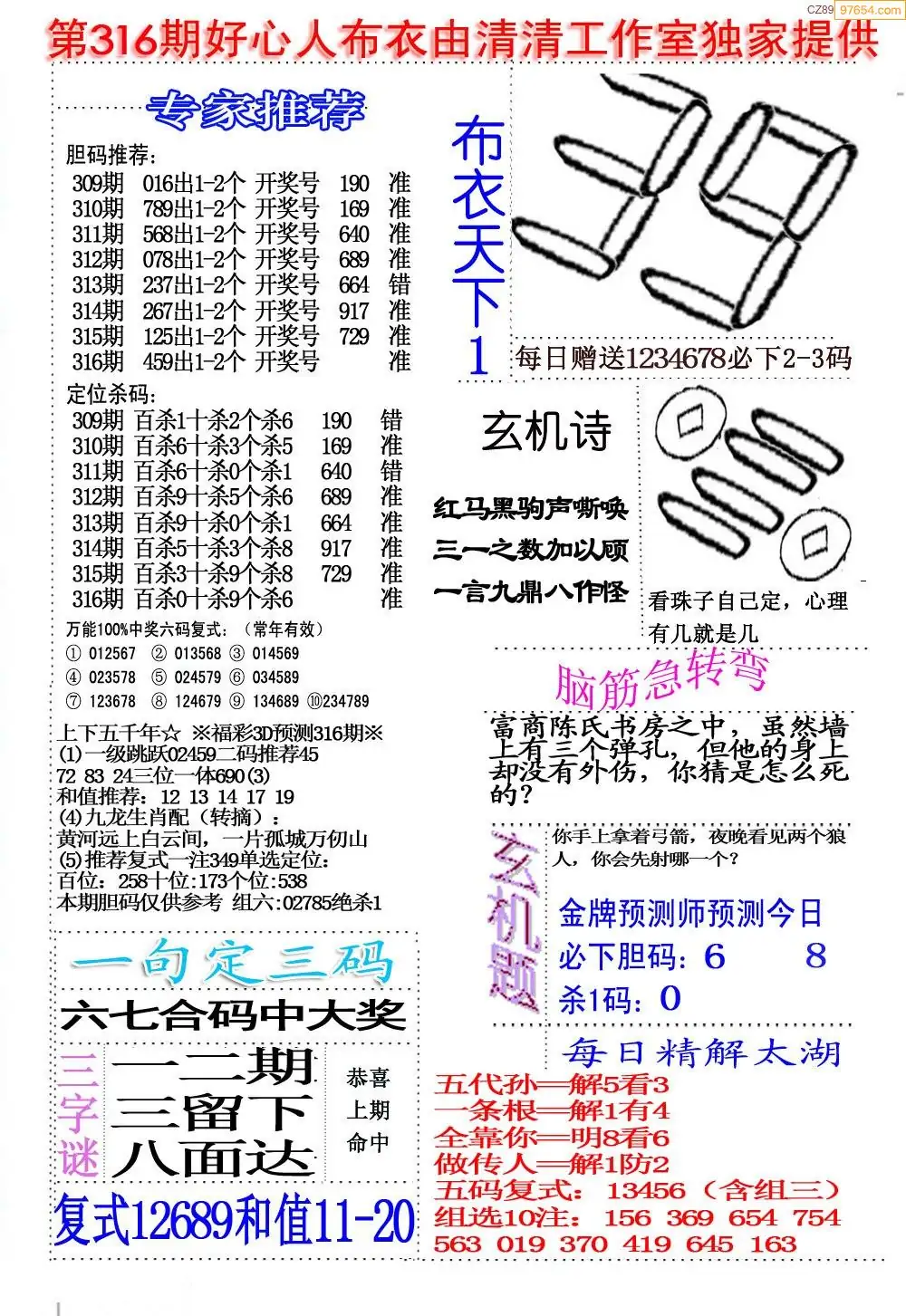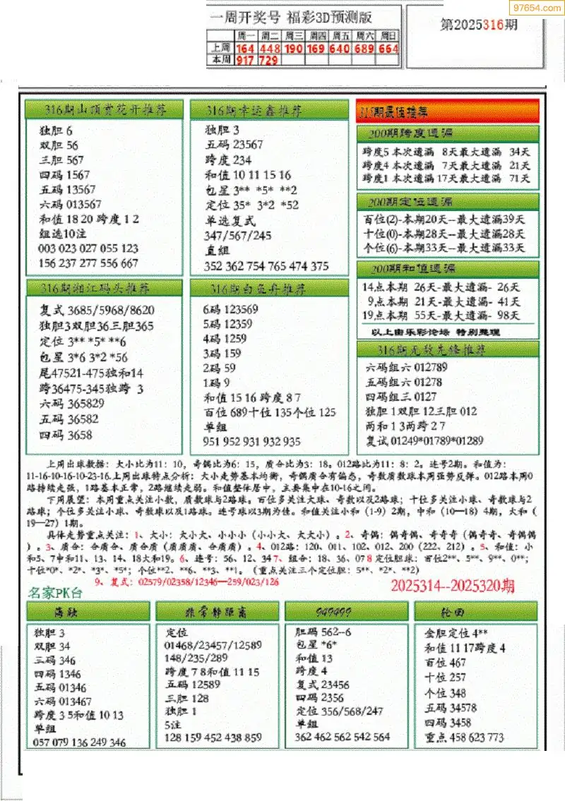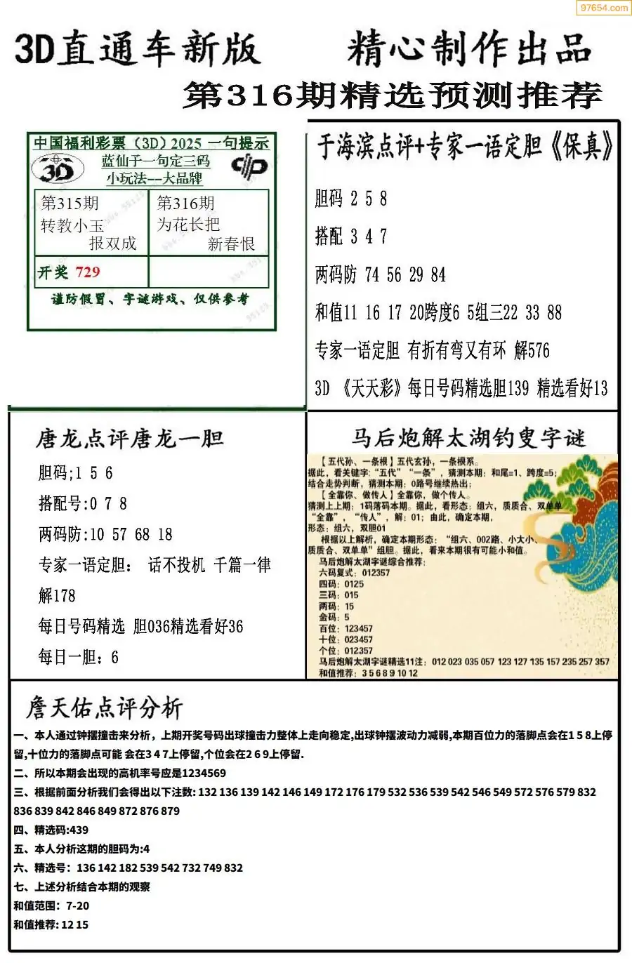(8)25年316期今日3d各类彩报汇总
