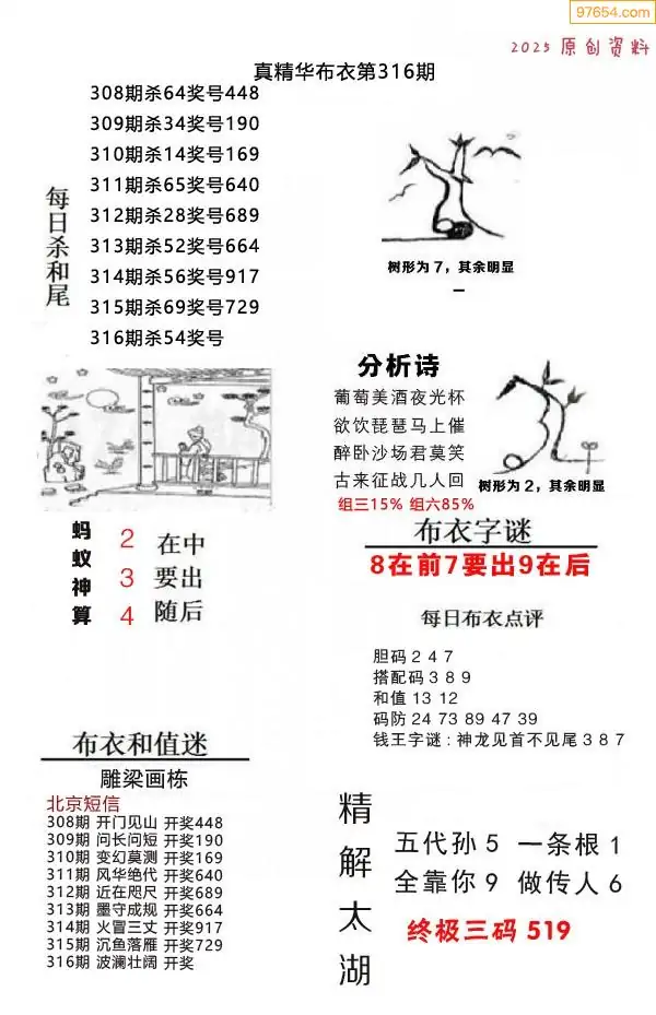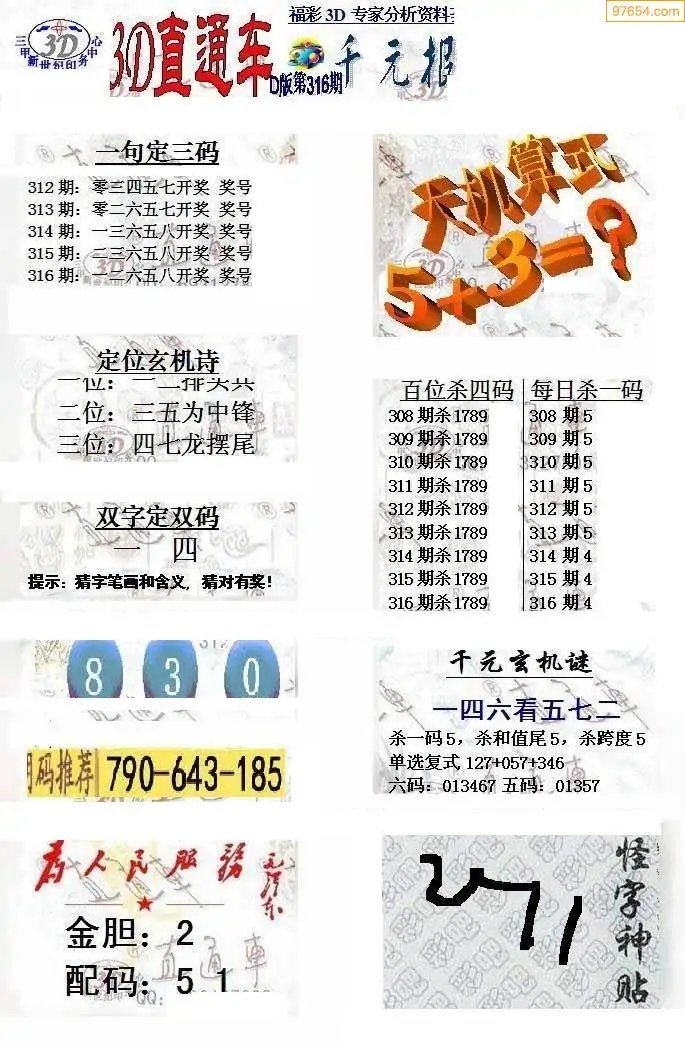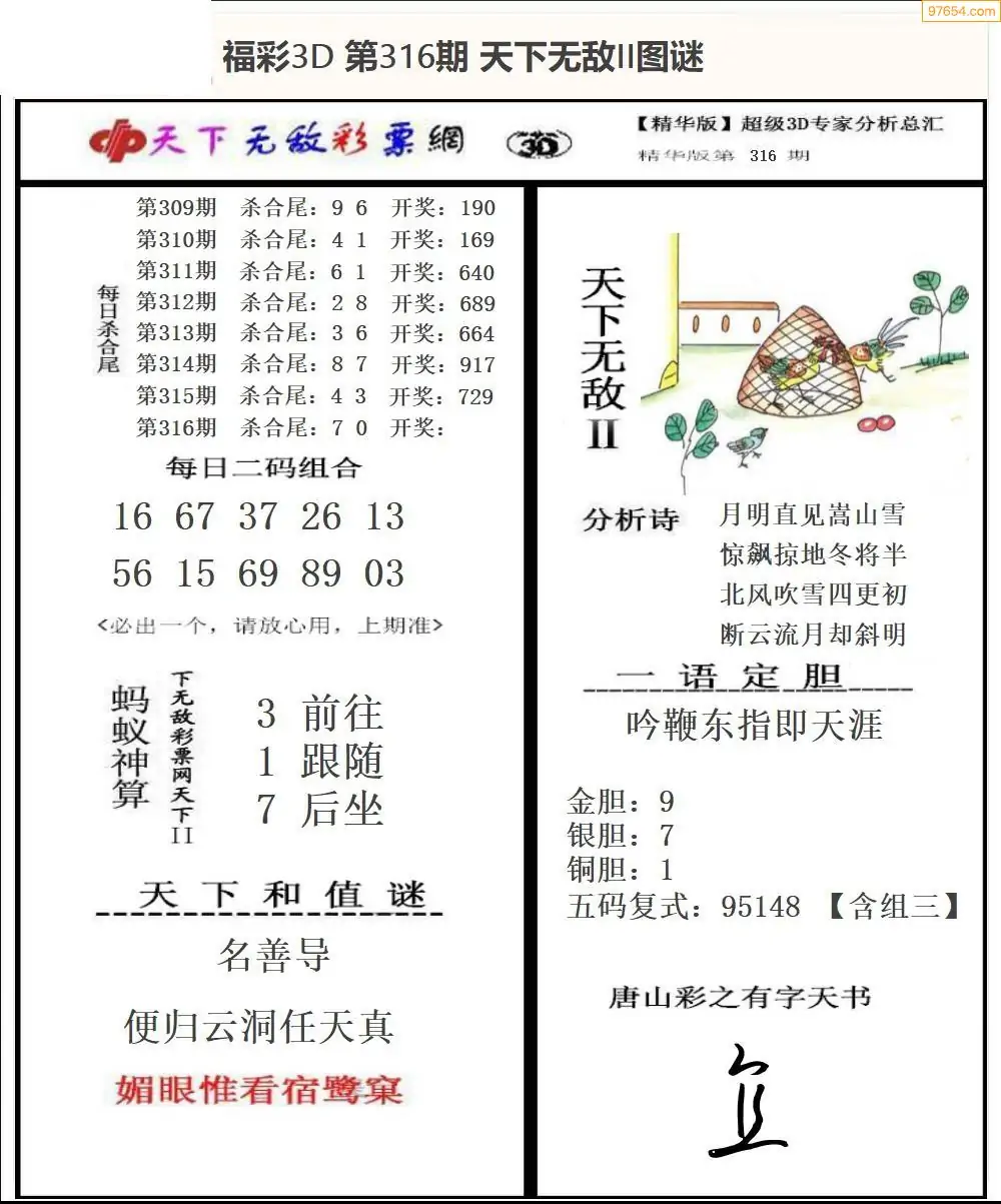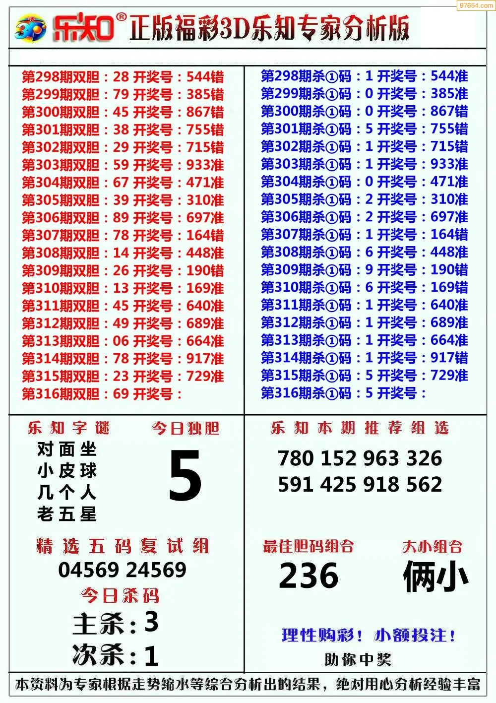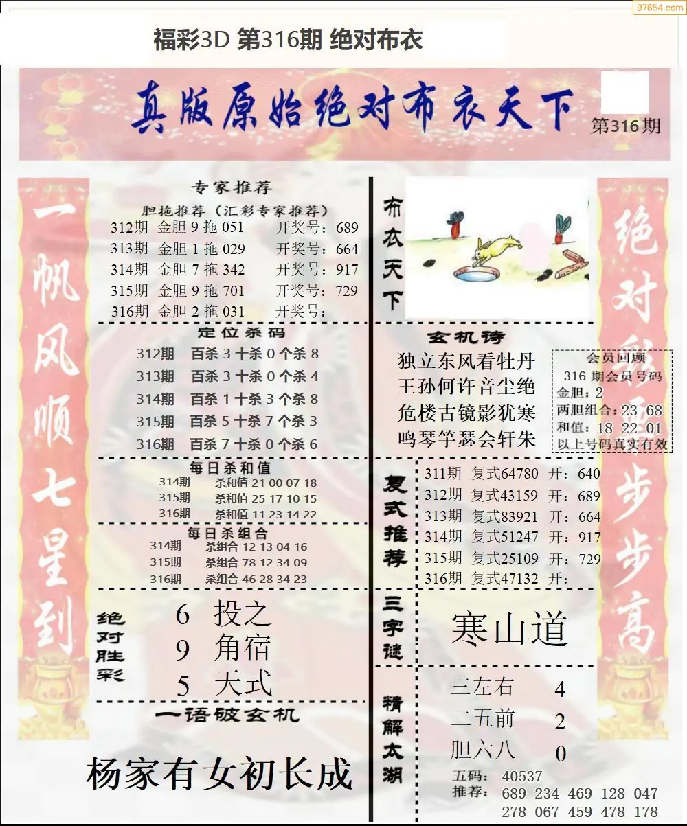 (8)25年316期今日3d各类彩报汇总