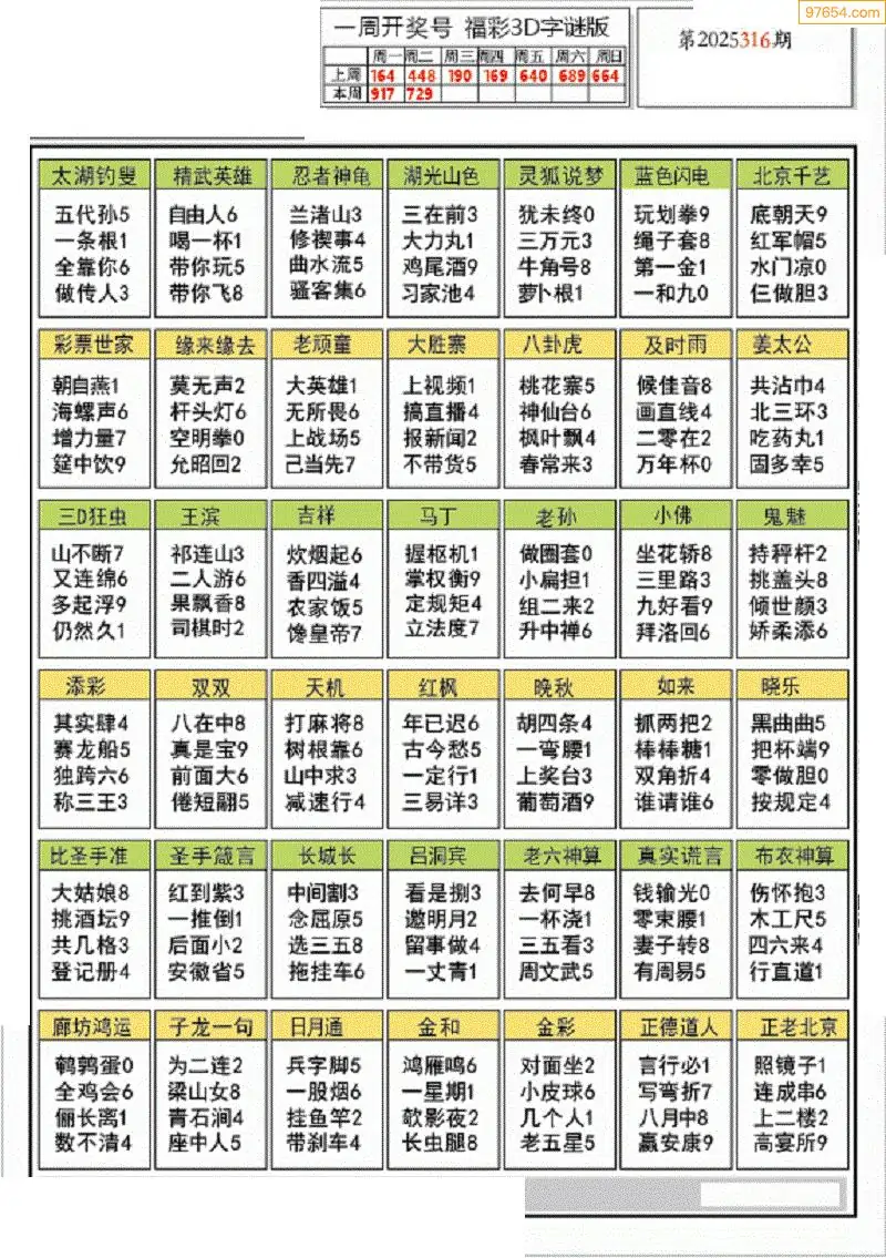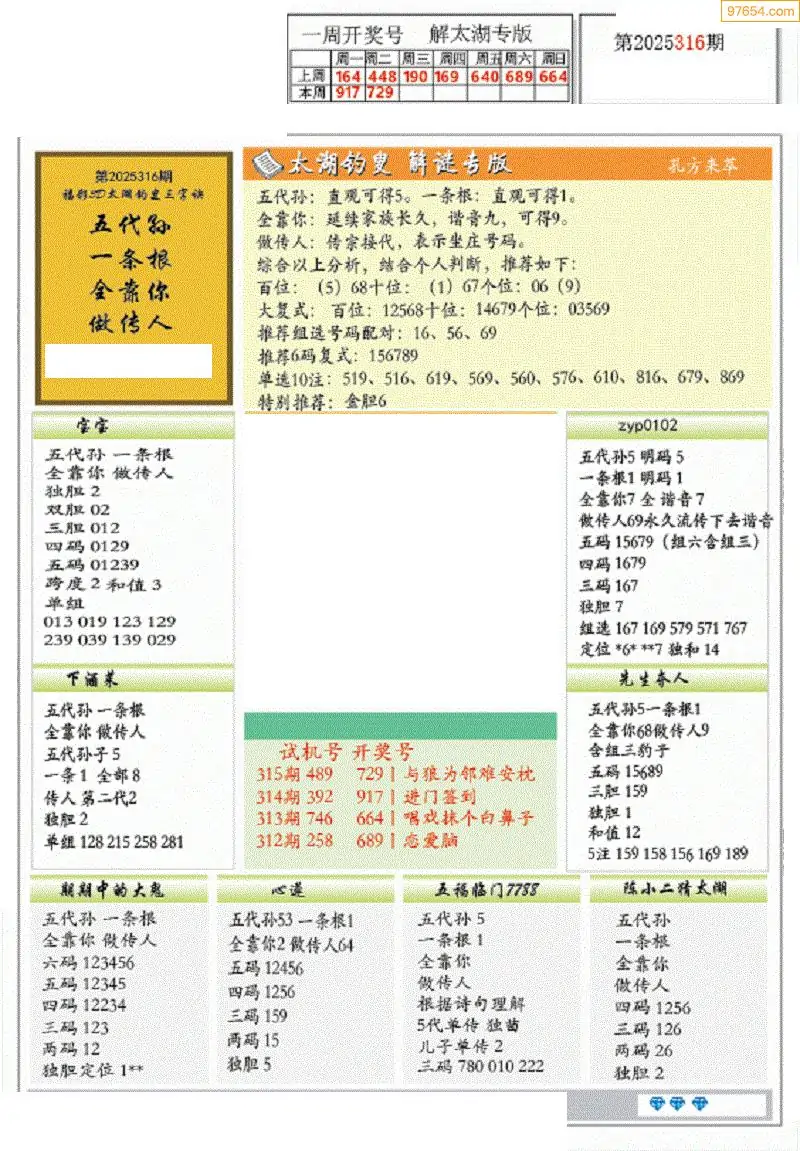 (7)25316期3D太湖图库图谜汇总