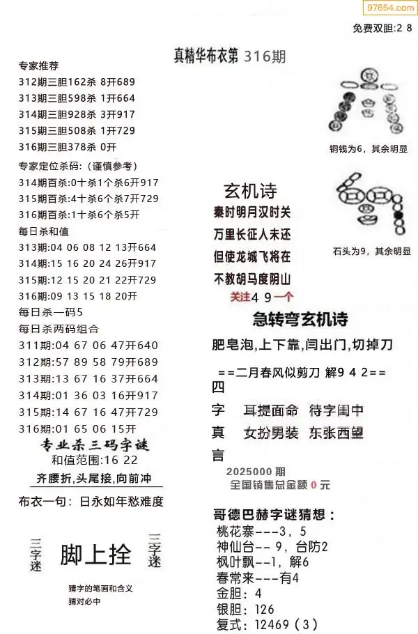 (9)25年316期当期全站杀号定胆图