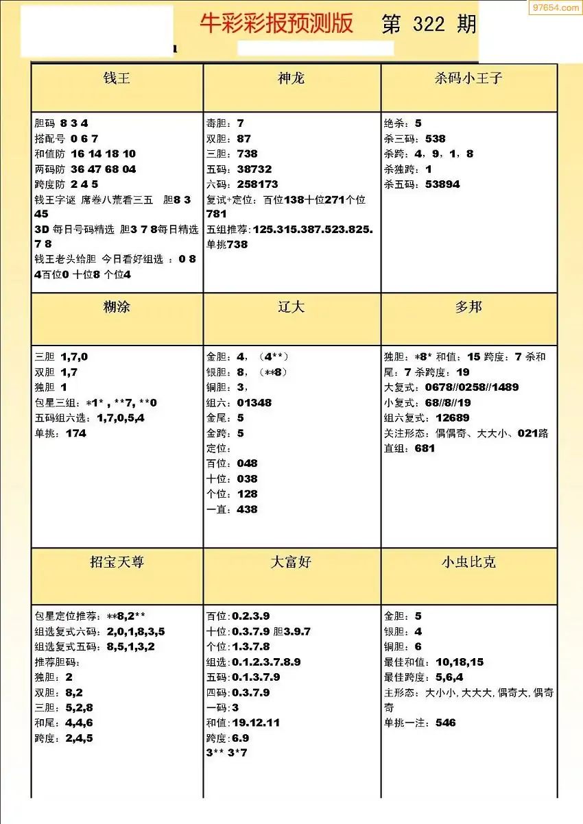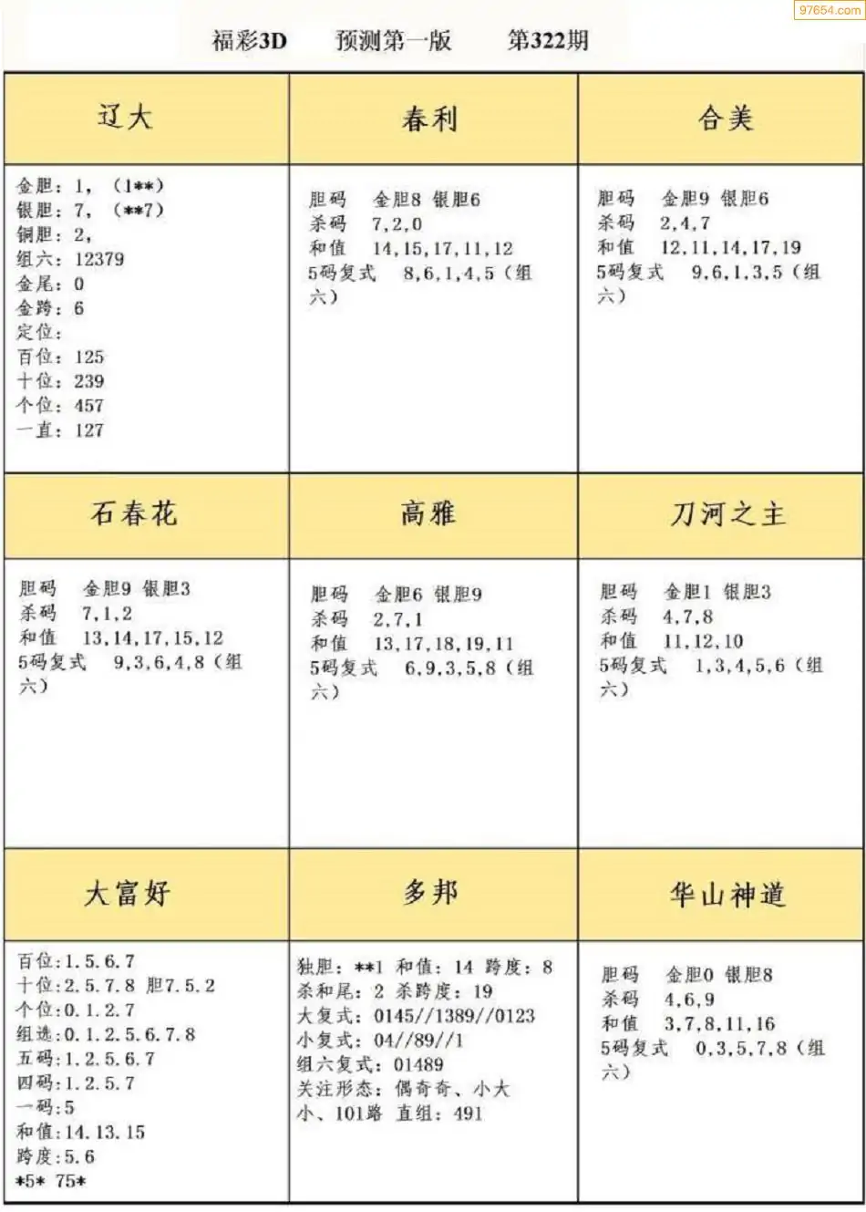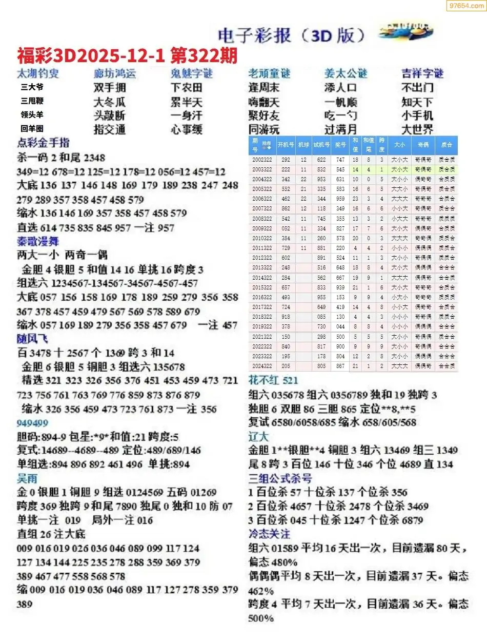 (8)25年322期今日3d各类彩报汇总
