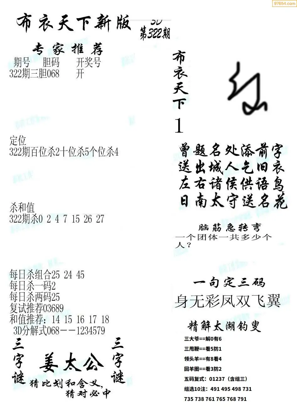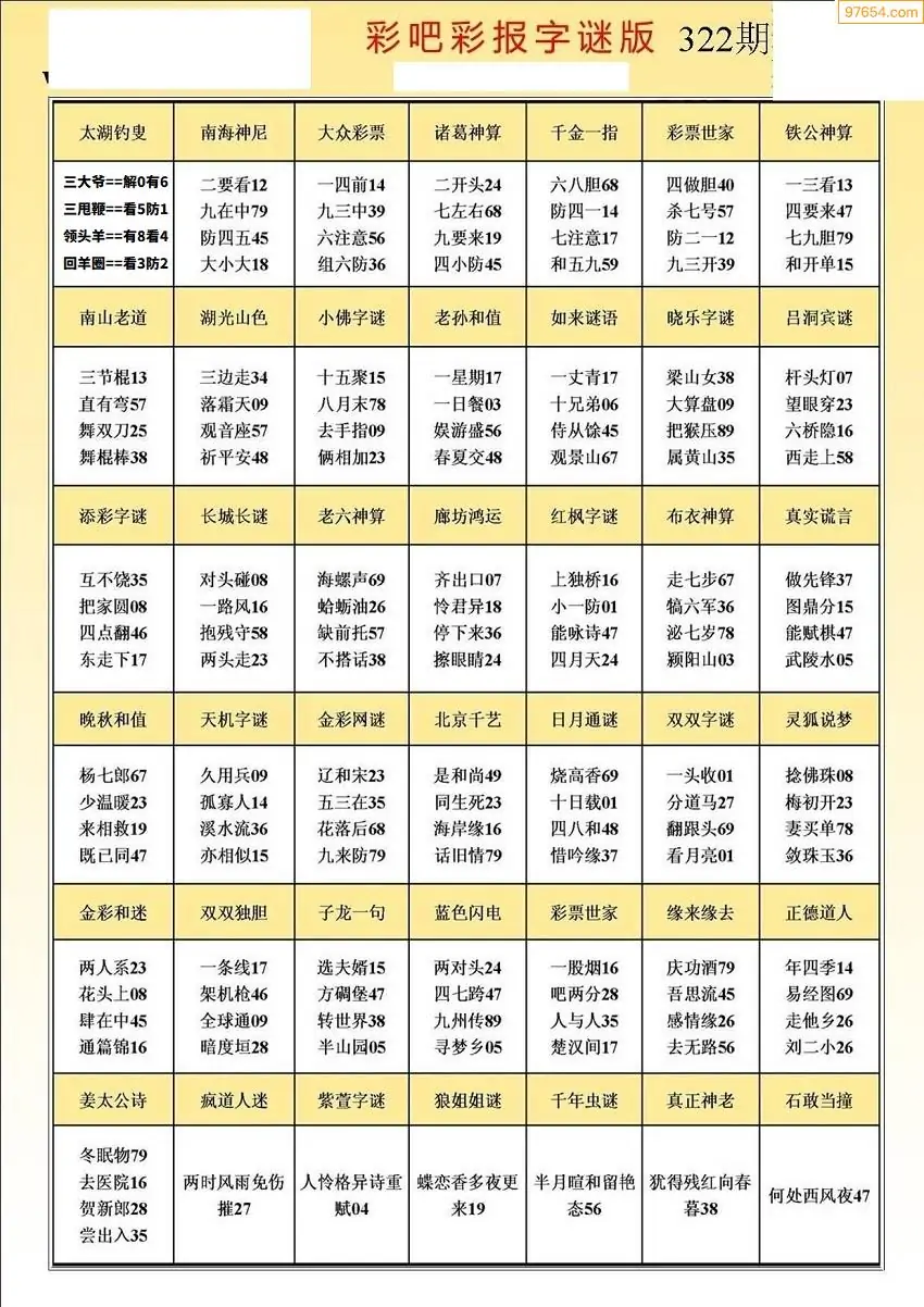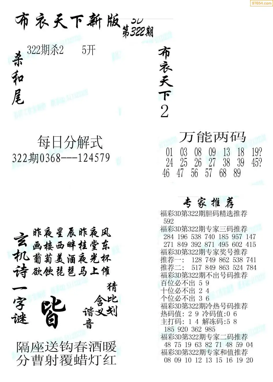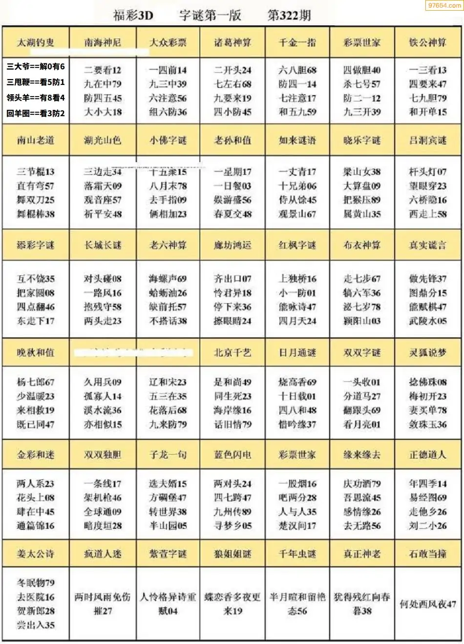 (5)25年322期福彩字谜图谜总汇